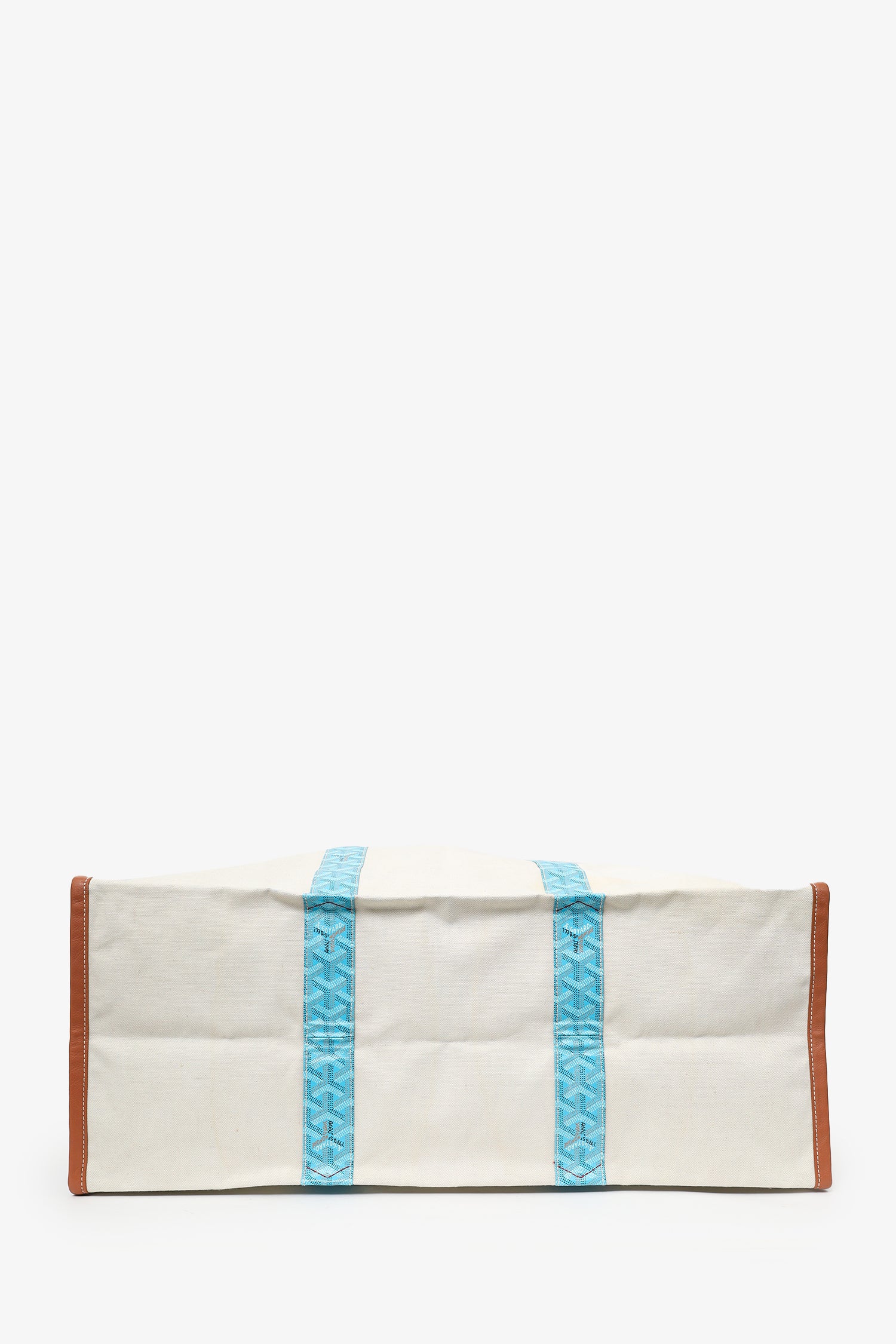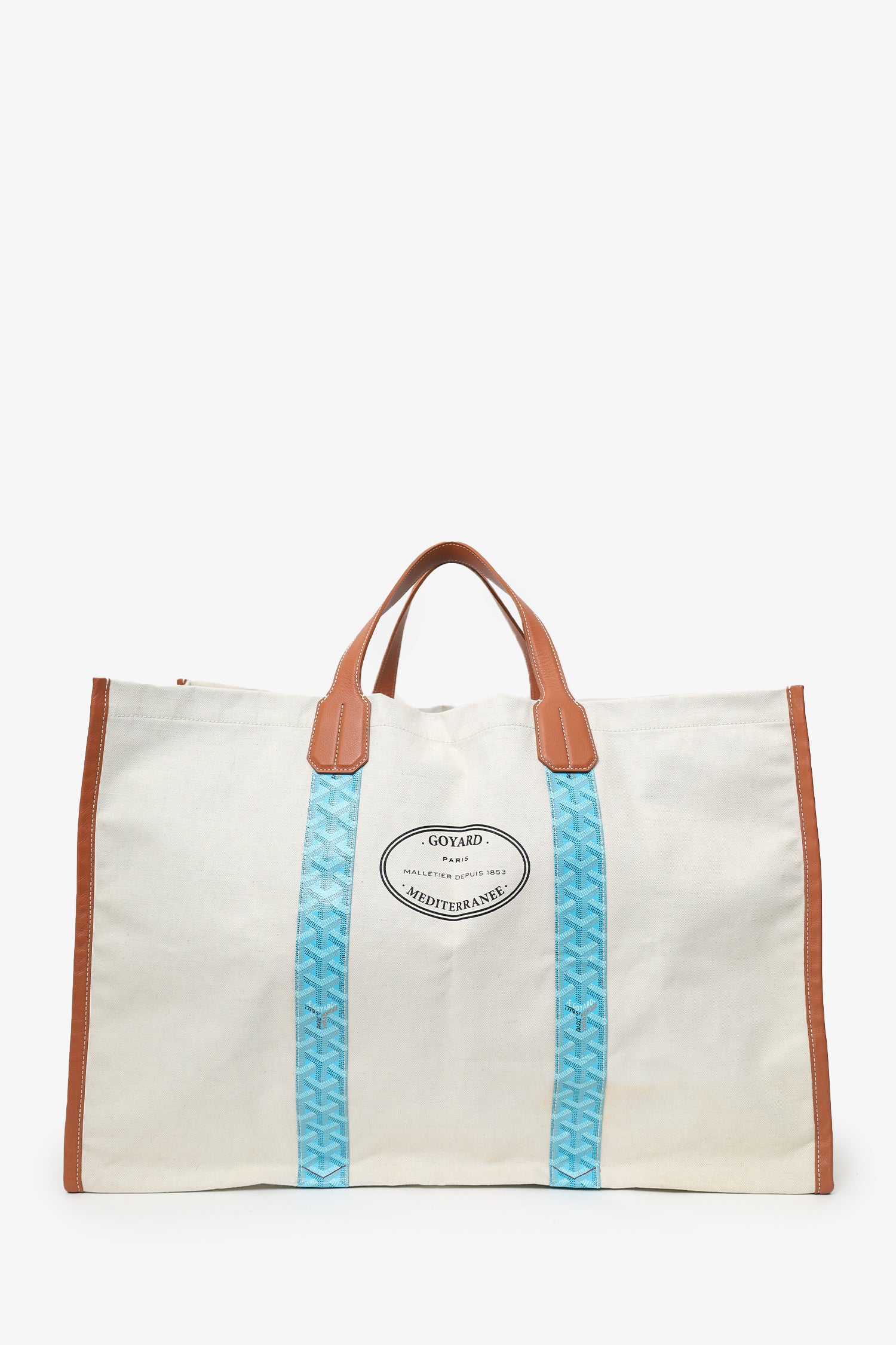 Refresh availabilityGoyard Blue/Brown Goyardine Mediterranee Saint Tropez Reversible Tote. Open top. Reversible. Open interior. Contrast and tonal stitching.