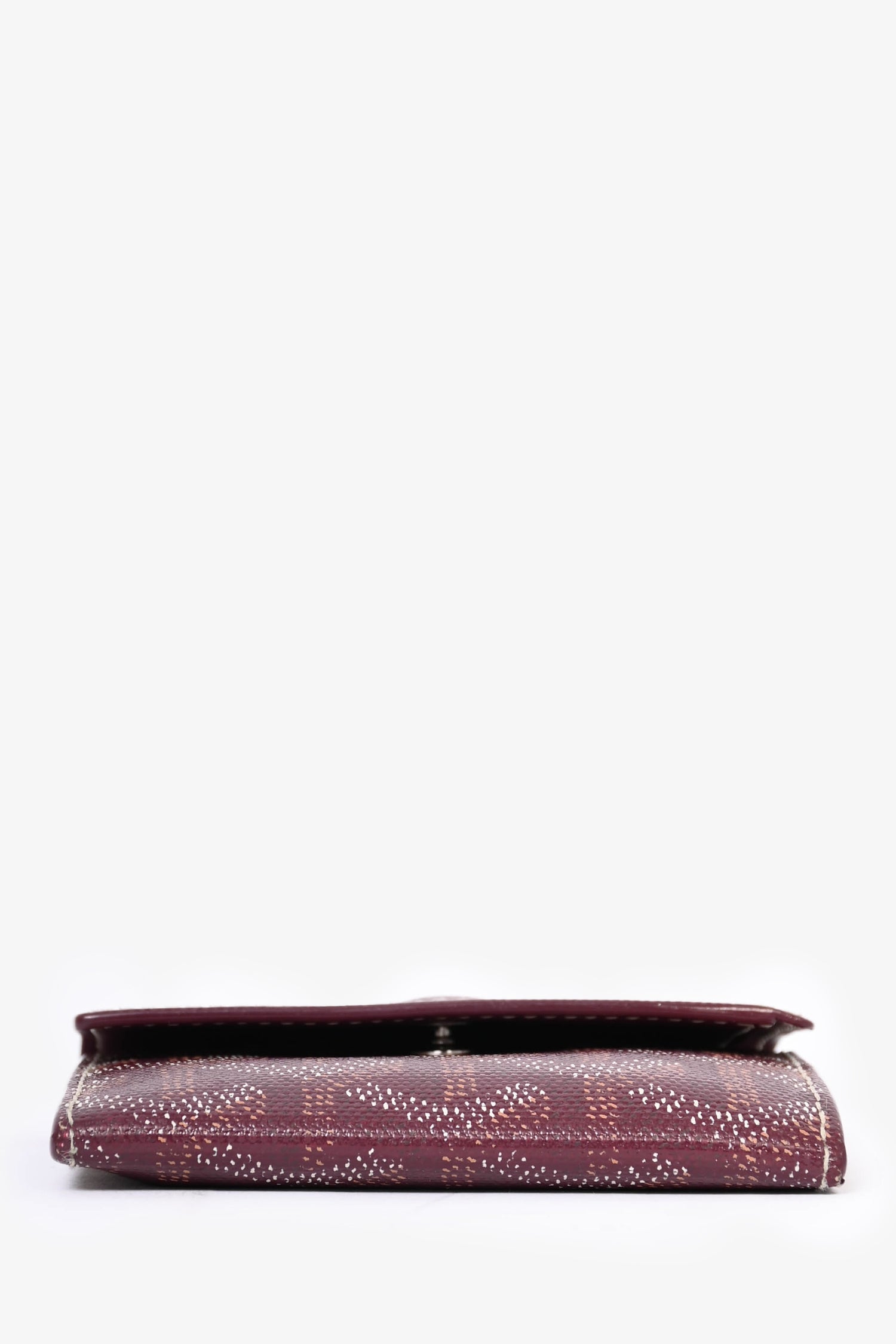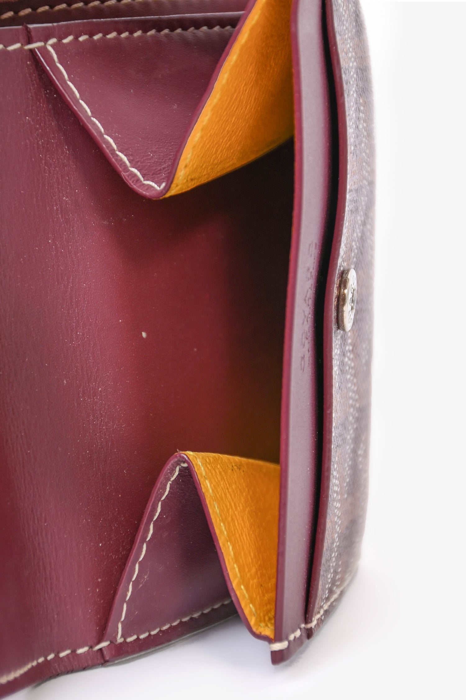 Refresh availabilityGoyard Burgundy Coated Canvas 'Marigny' Compact Wallet. Contrast stitching. Snap closure.