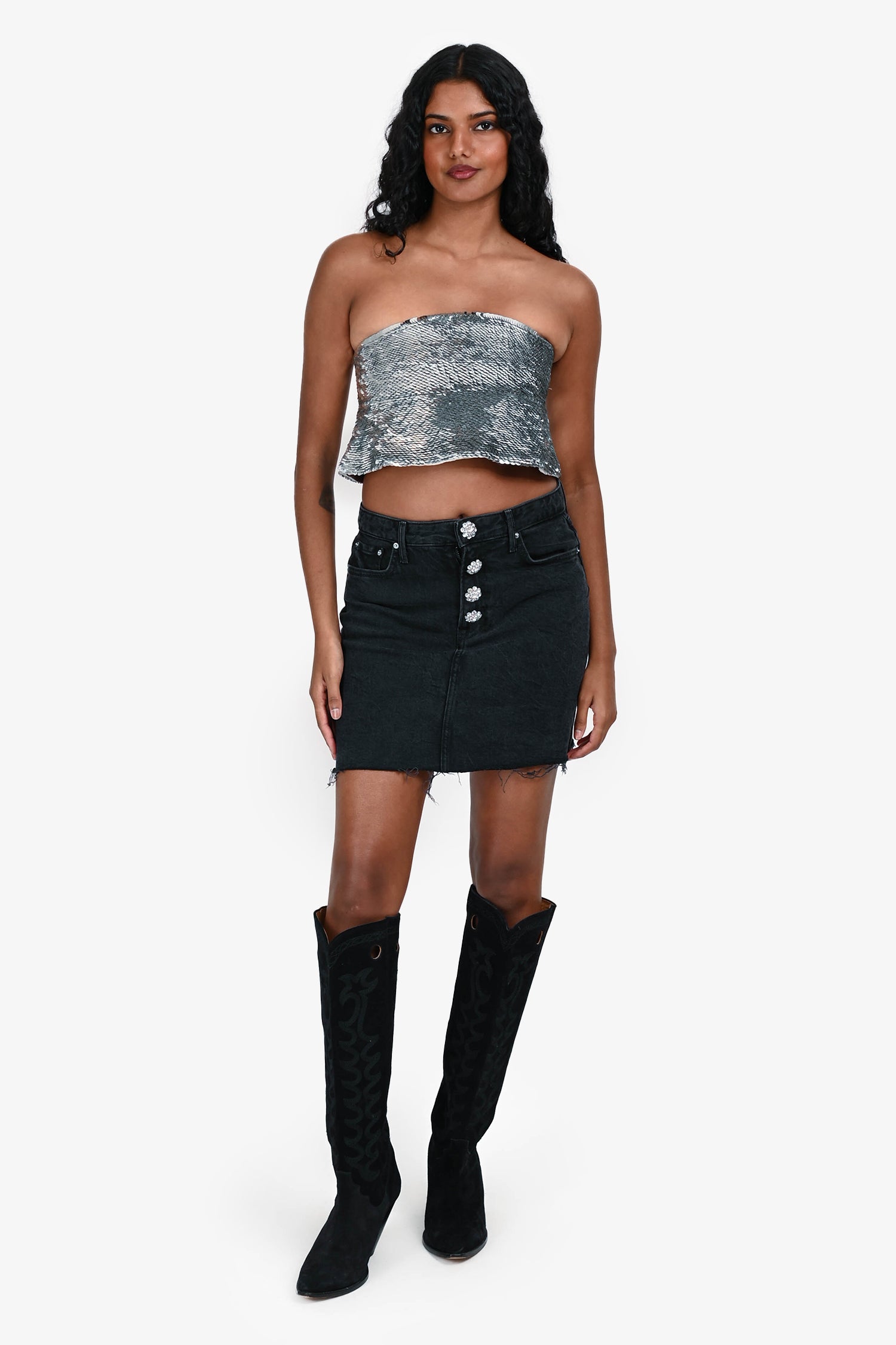 GRLFRND Black Denim Embellished Button 'Reese' Mini Skirt Size 26