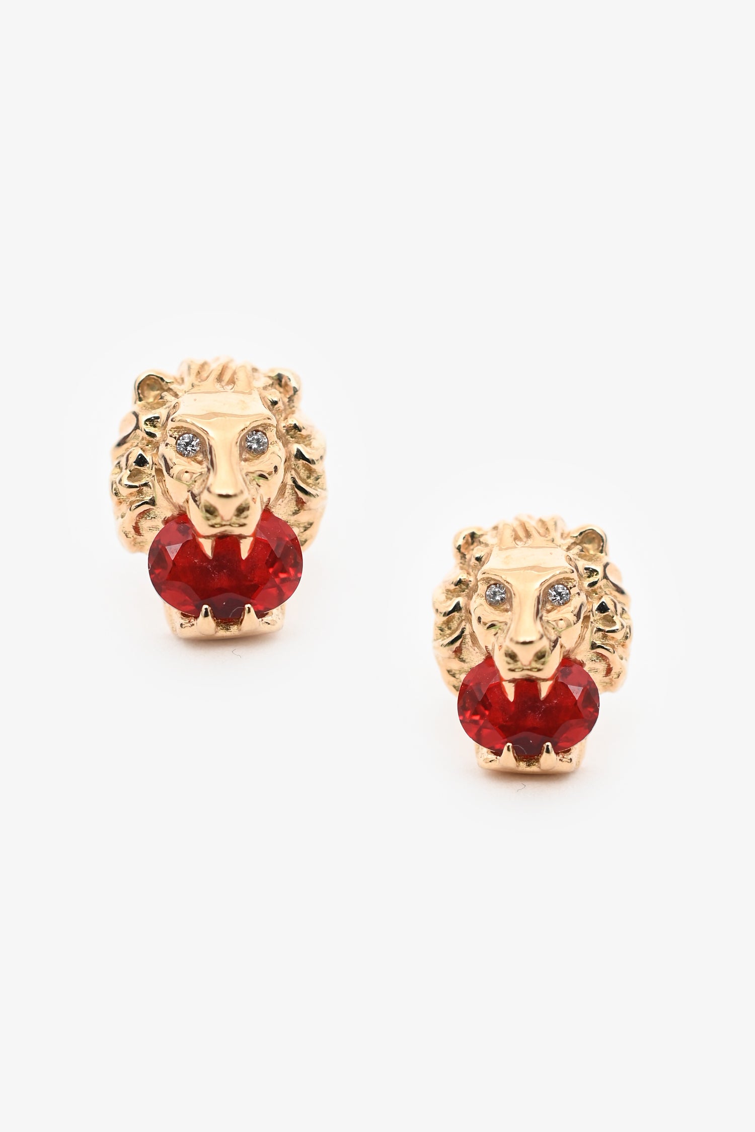 Refresh availabilityGucci 18K Yellow Gold/Fire Opal/Diamond Set Lion Head Earrings. Post stud closure. Gold-tone hardware.
