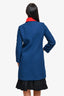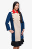 Gucci 2016 Blue/Cream Tricolour Wool Coat with Gold Tiger Head Buttons Size 42