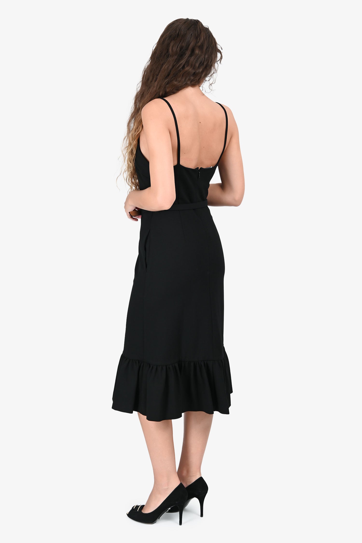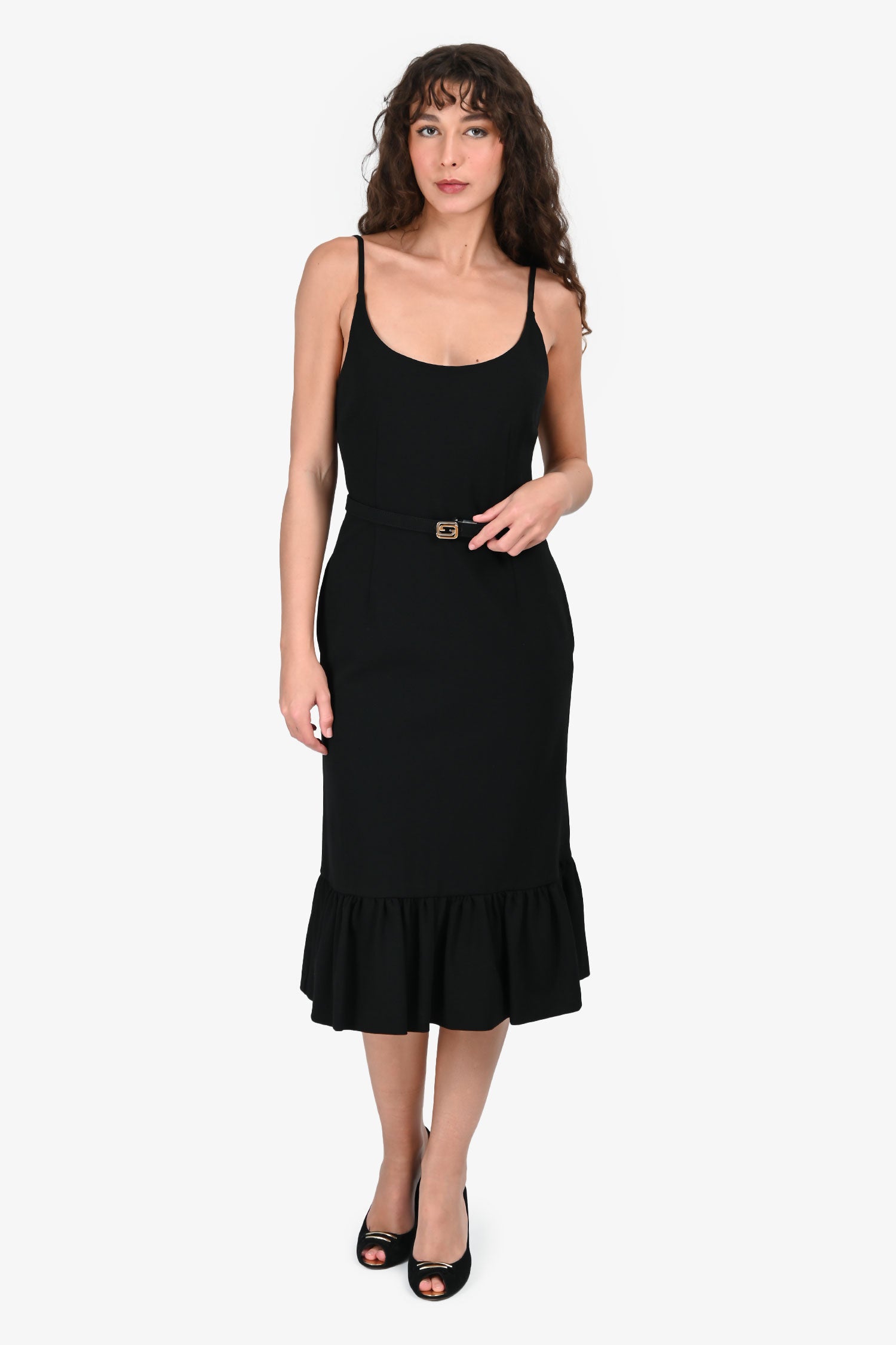 Refresh availabilityGucci Black Sablé Sleeveless Midi Dress. Slip-on. Scoop neckline. Rear zip closure. 2 side seam slip pockets. Detachable belt. Lined interior. Tonal stitching.