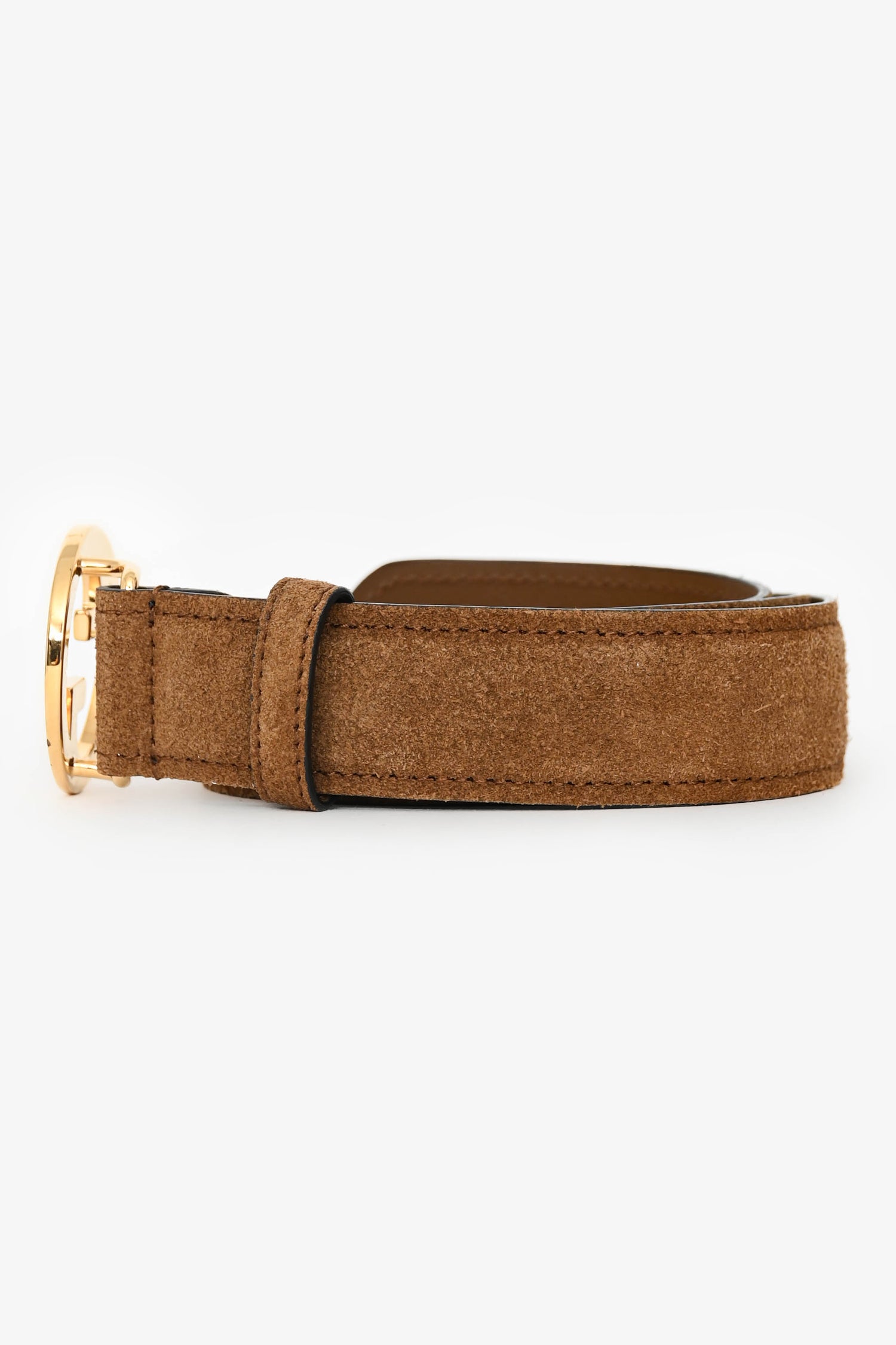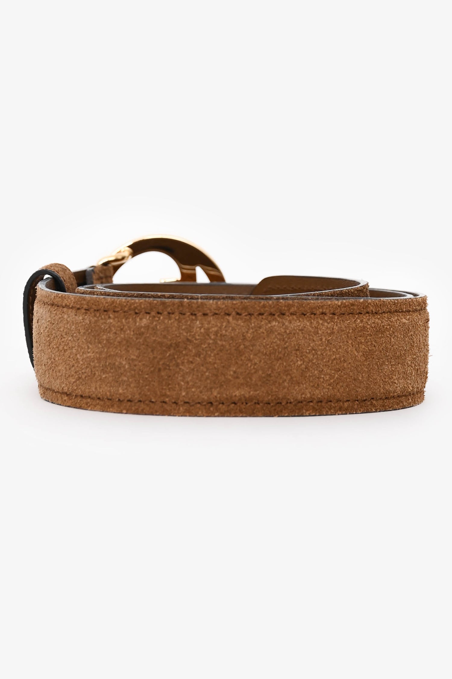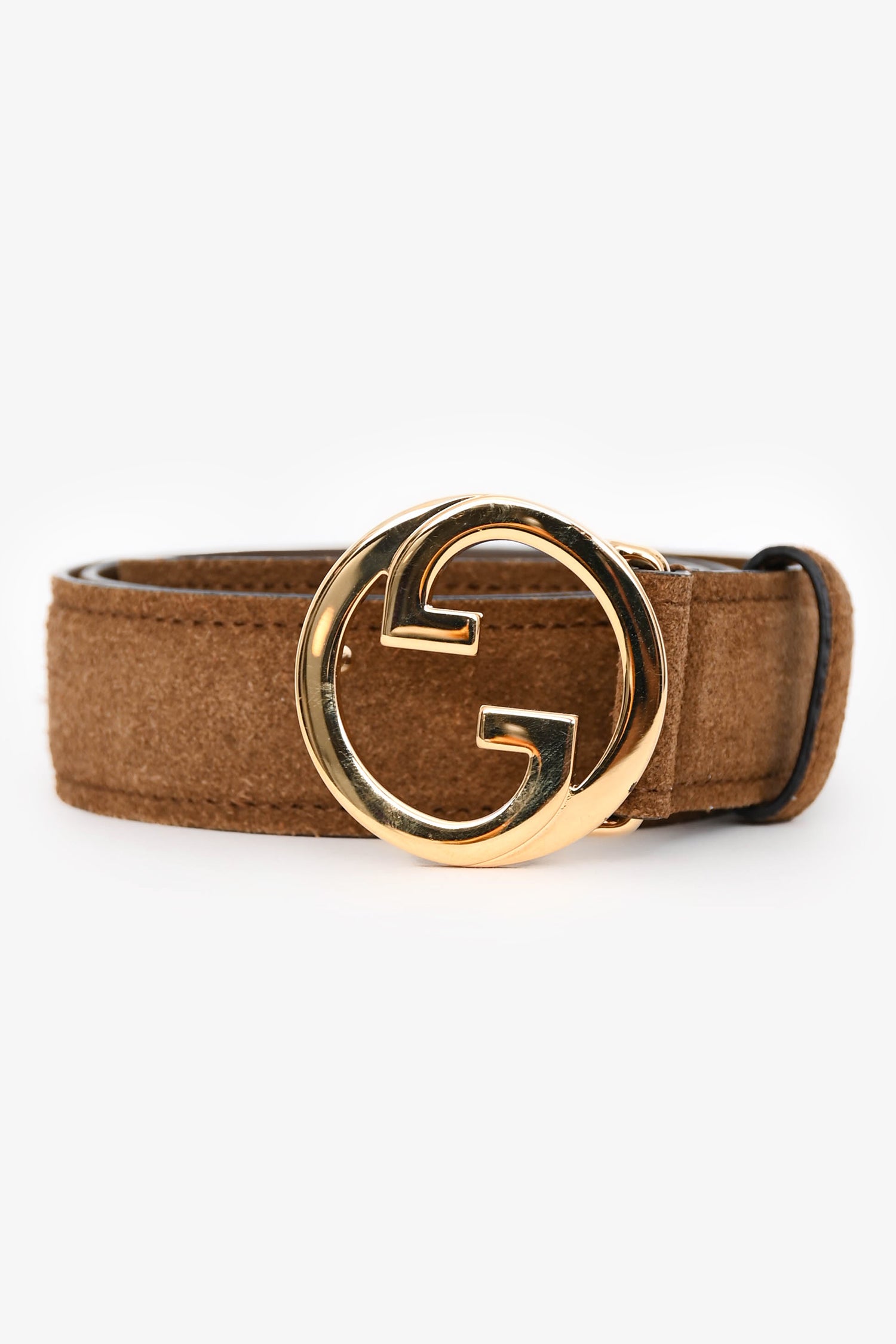 Refresh availabilityGucci 2023 Camel Suede Interlocking G Gold Buckle Belt. Adjustable pull-through push-pin closure. Gold-tone hardware. Tonal stitching.