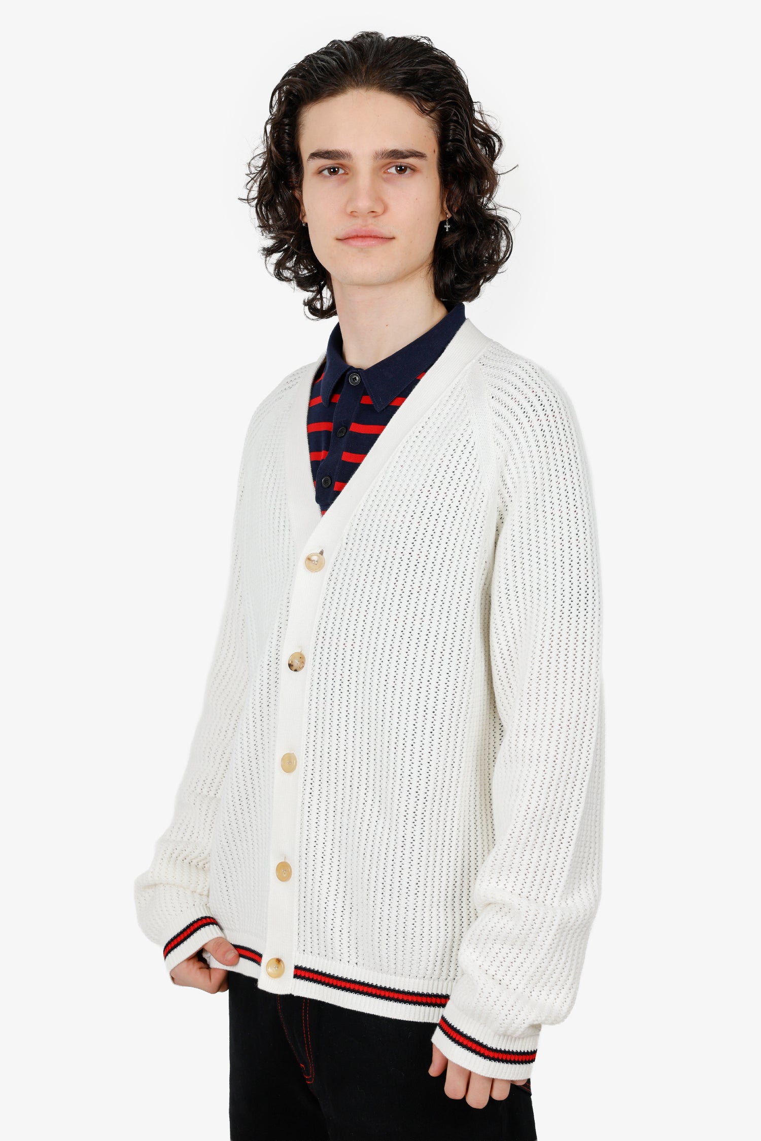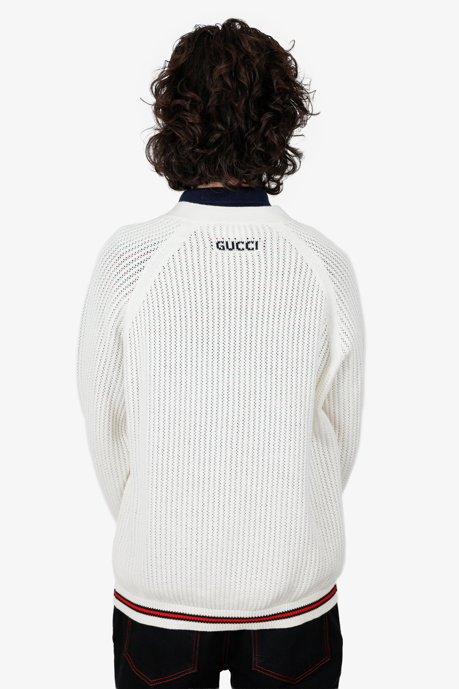 Gucci 2024 White Sylvie Web Trim Knit Cardigan Size XL Mens