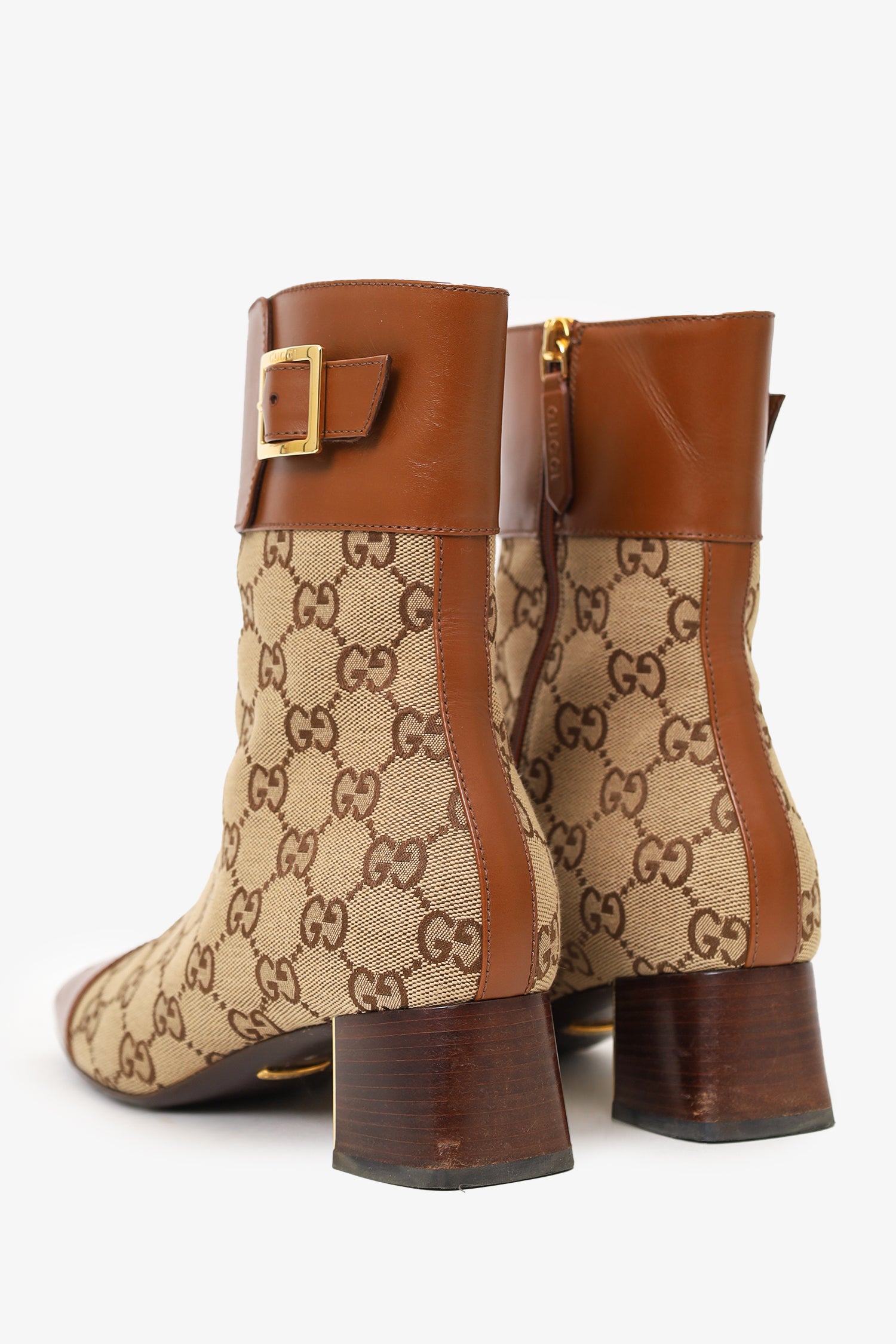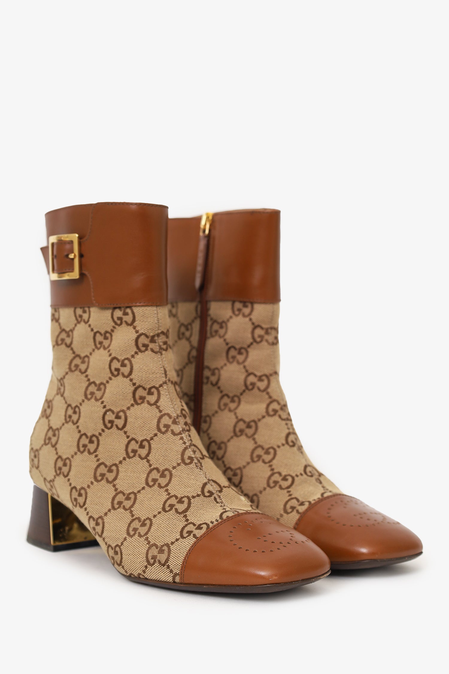 Gucci Beige/Brown Ellis GG-Logo Ankle Boots Size 37