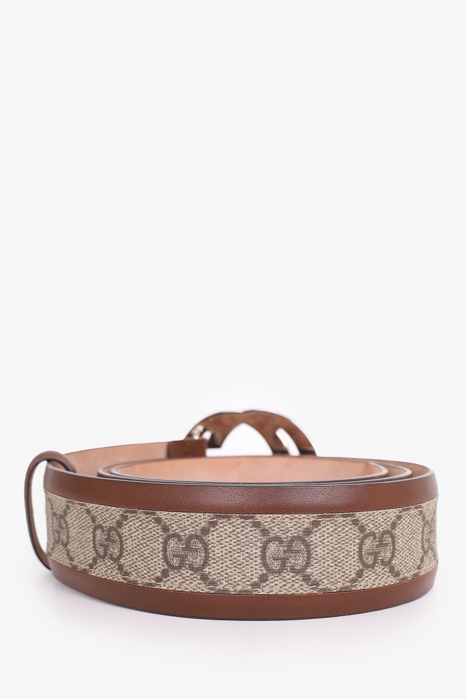Gucci Beige/Brown GG Canvas GG Buckle Belt Size 95.38