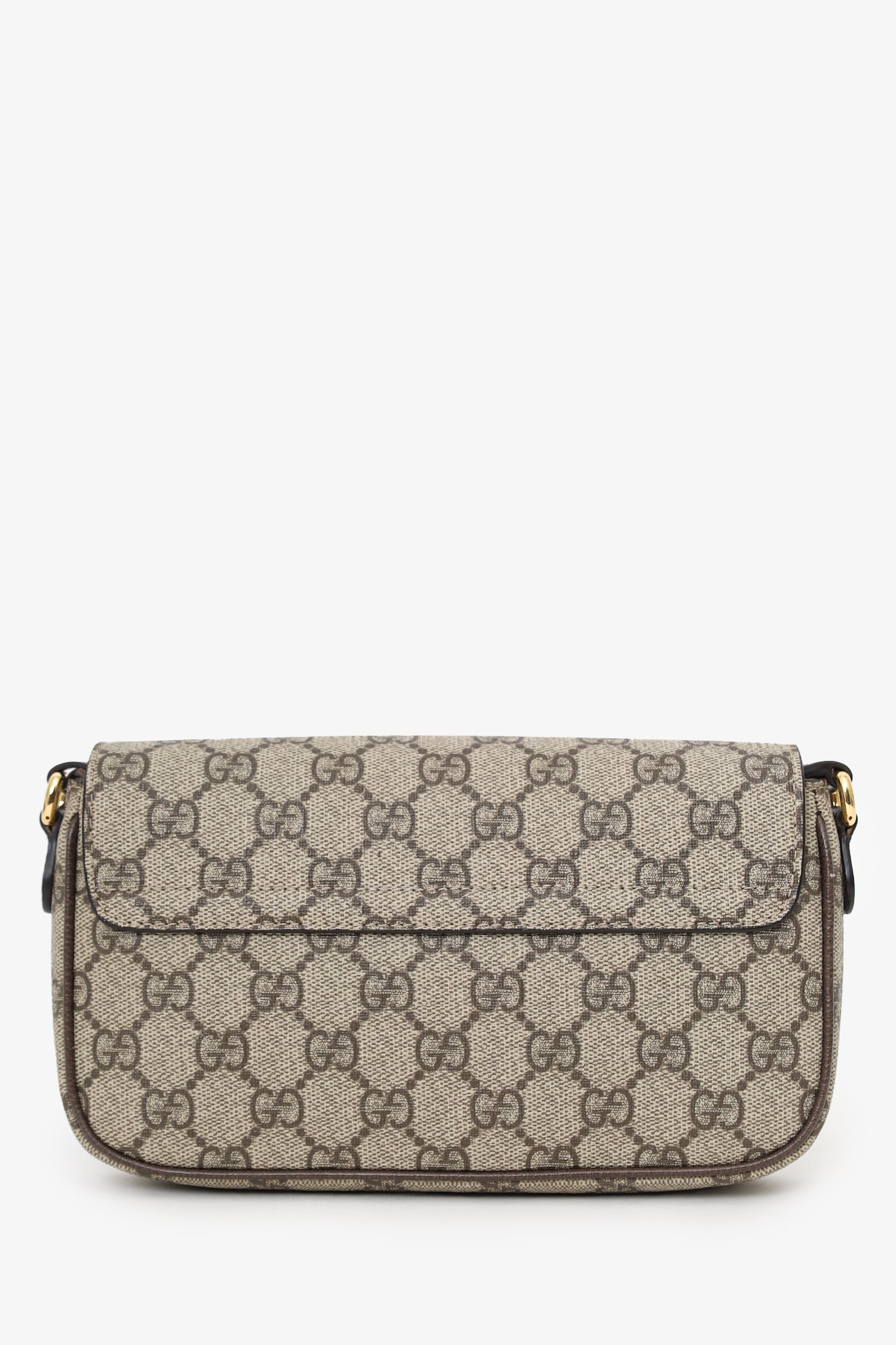 Refresh availabilityGucci Beige GG Supreme Monogram Ophidia Pochette Envelope Shoulder Bag. Front fold-over flap with magnetic snap-button closure. Canvas strap with adjustable buckle closure. Canvas lined interior. Single interior slip pocket. Gold-tone hardware. Tonal stitching.