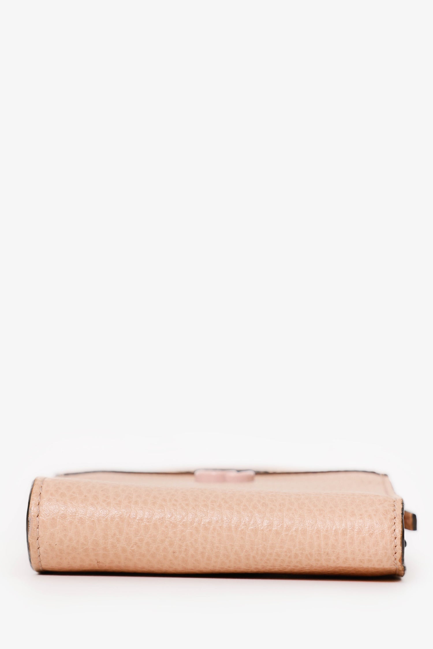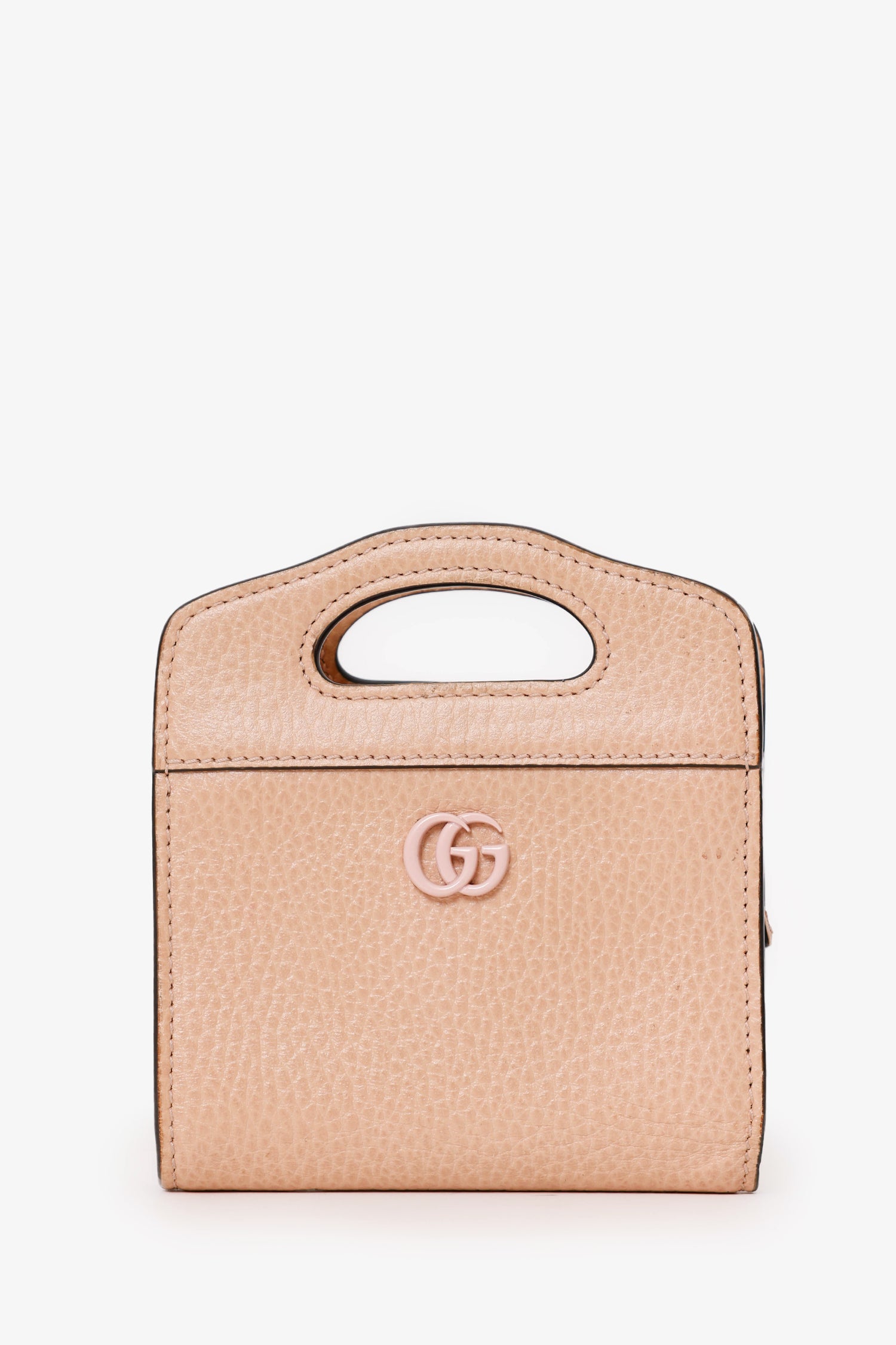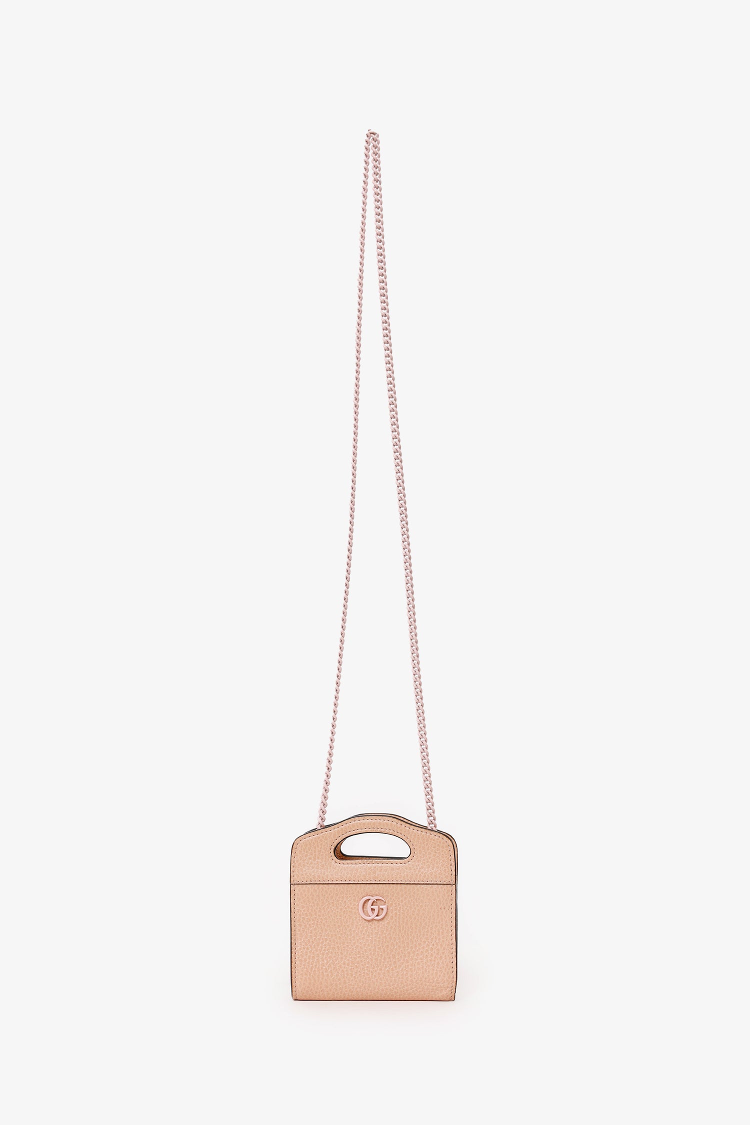 Refresh availabilityGucci Beige Leather GG Marmont Mini Card Holder With Chain. Interior snap-button-up closure. Twin top handles. Removable chain link crossbody strap. Leather-lined interior with7 pockets; 5 card slots, 1 zip-up, and 1 bill. Silver-tone hardware. Tonal stitching.