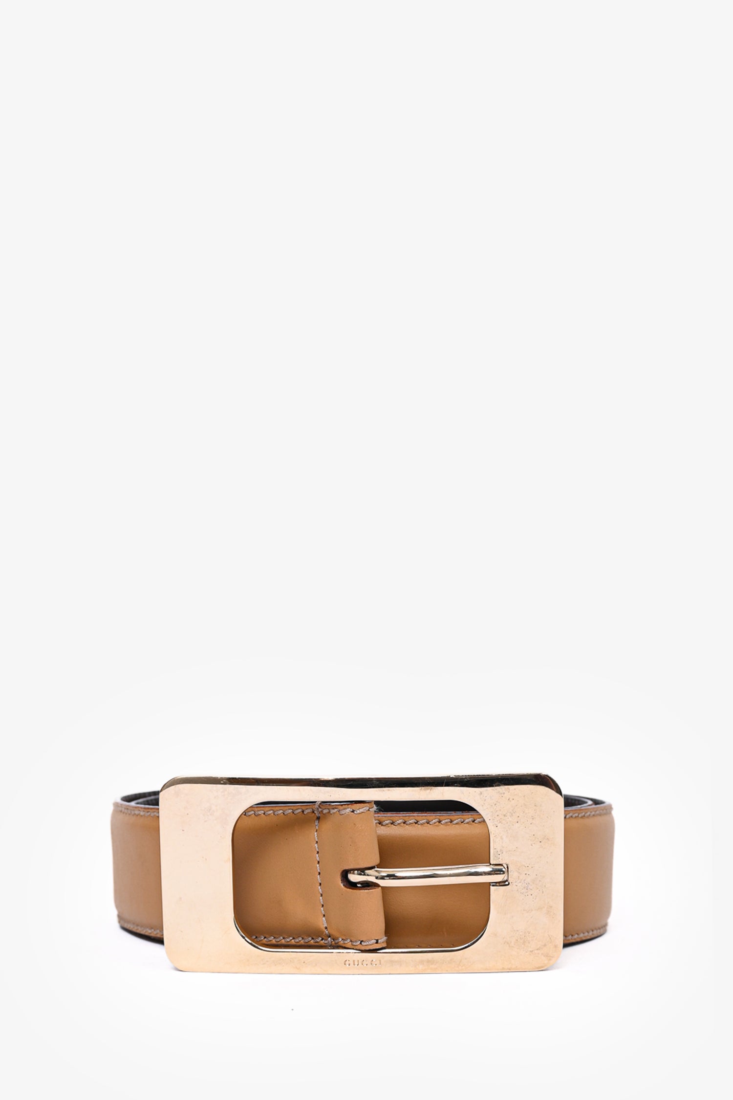Refresh availabilityGucci Beige Leather Wide Belt with Gold Buckle. Buckle closure.