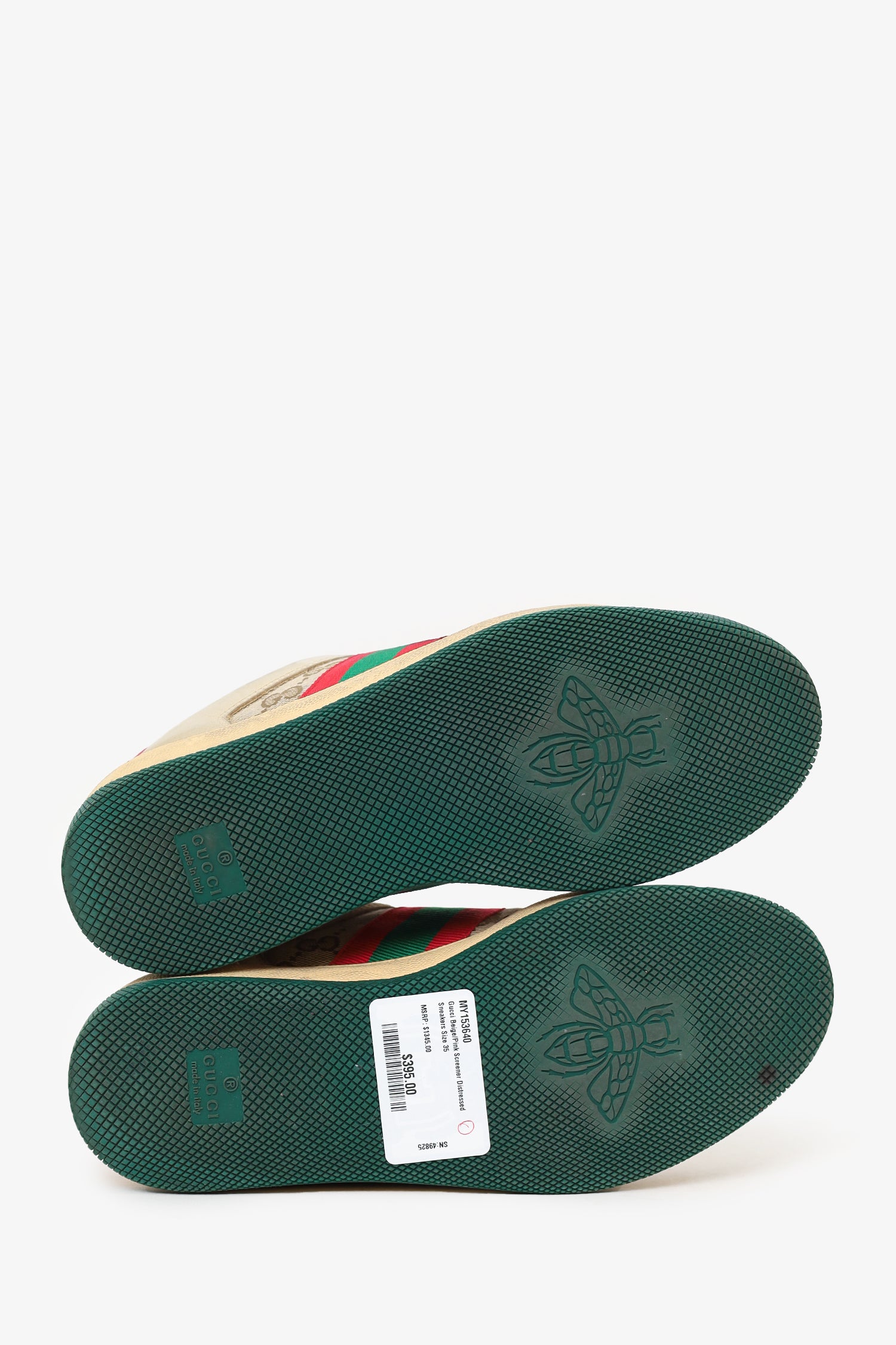 Gucci Beige/Pink Screener Distressed Sneakers Size 35
