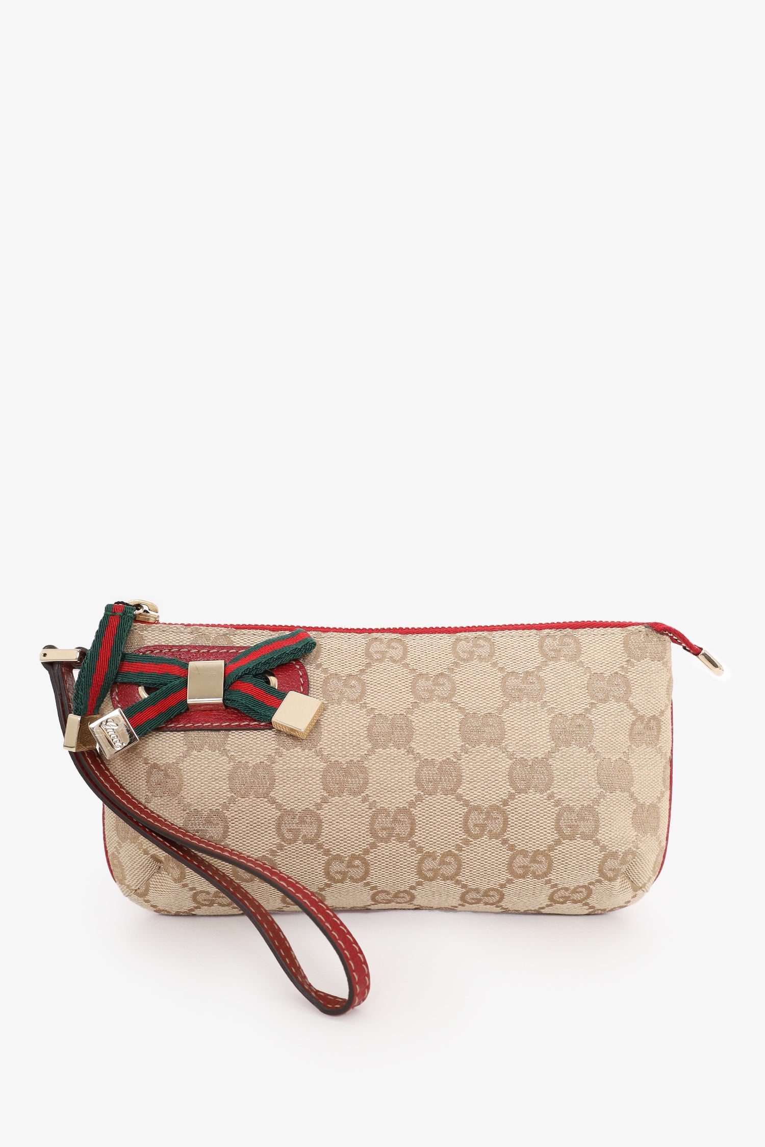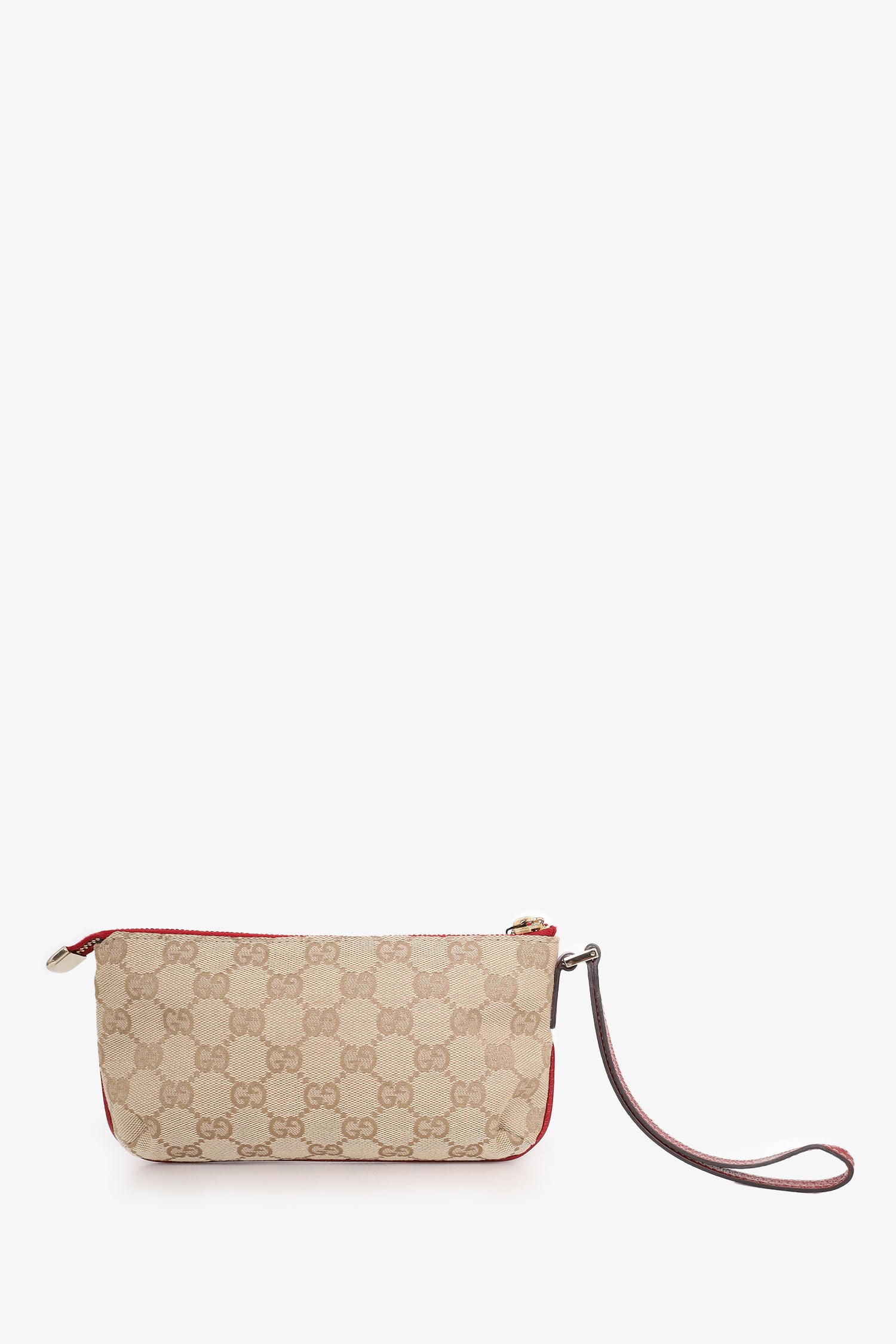 Refresh availabilityGucci Beige/Red GG Canvas Princy Wristlet Clutch. Top zip closure. Open interior with single wall slip pocket. Tonal stitching. Gold-tone hardware.