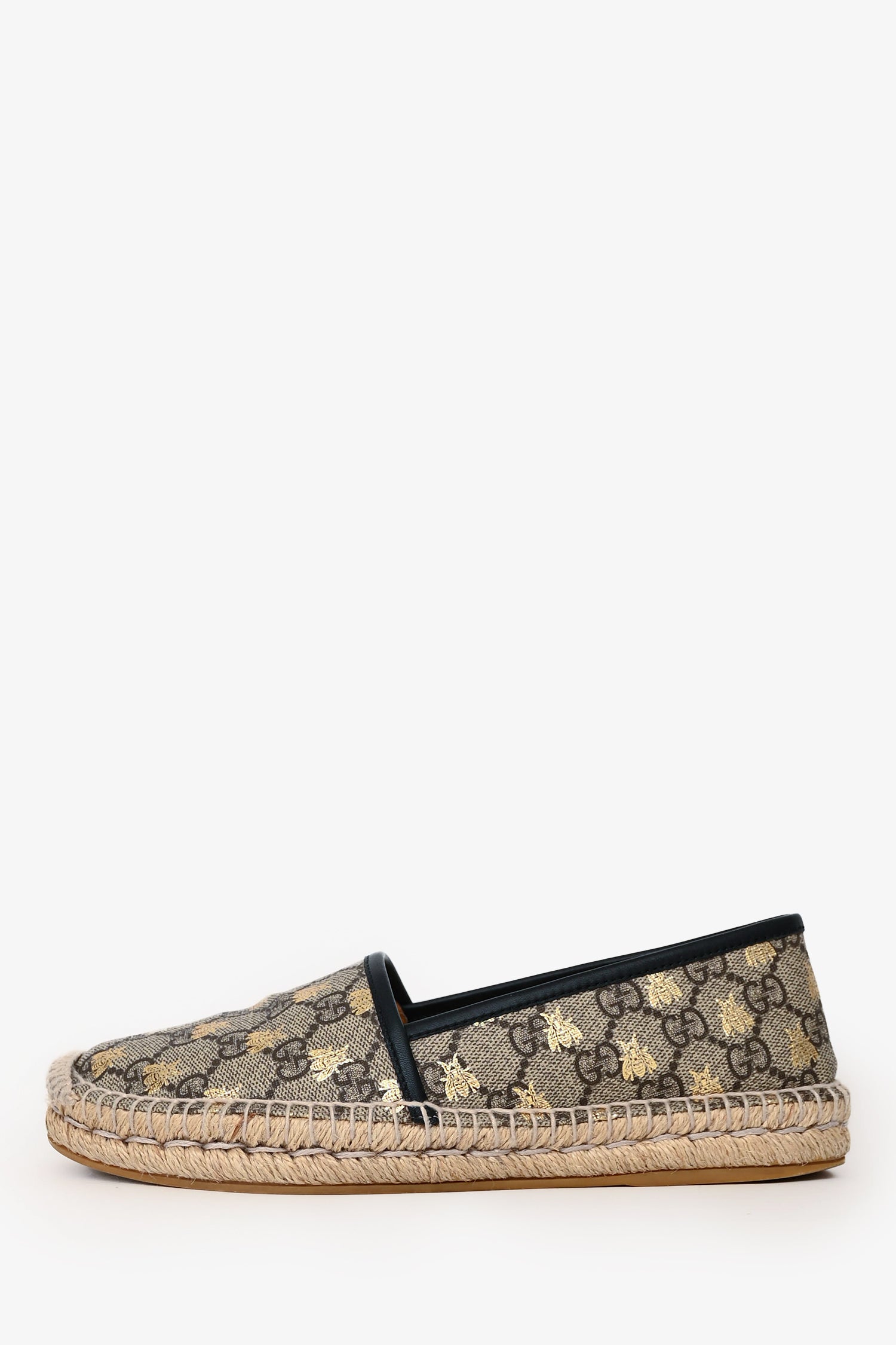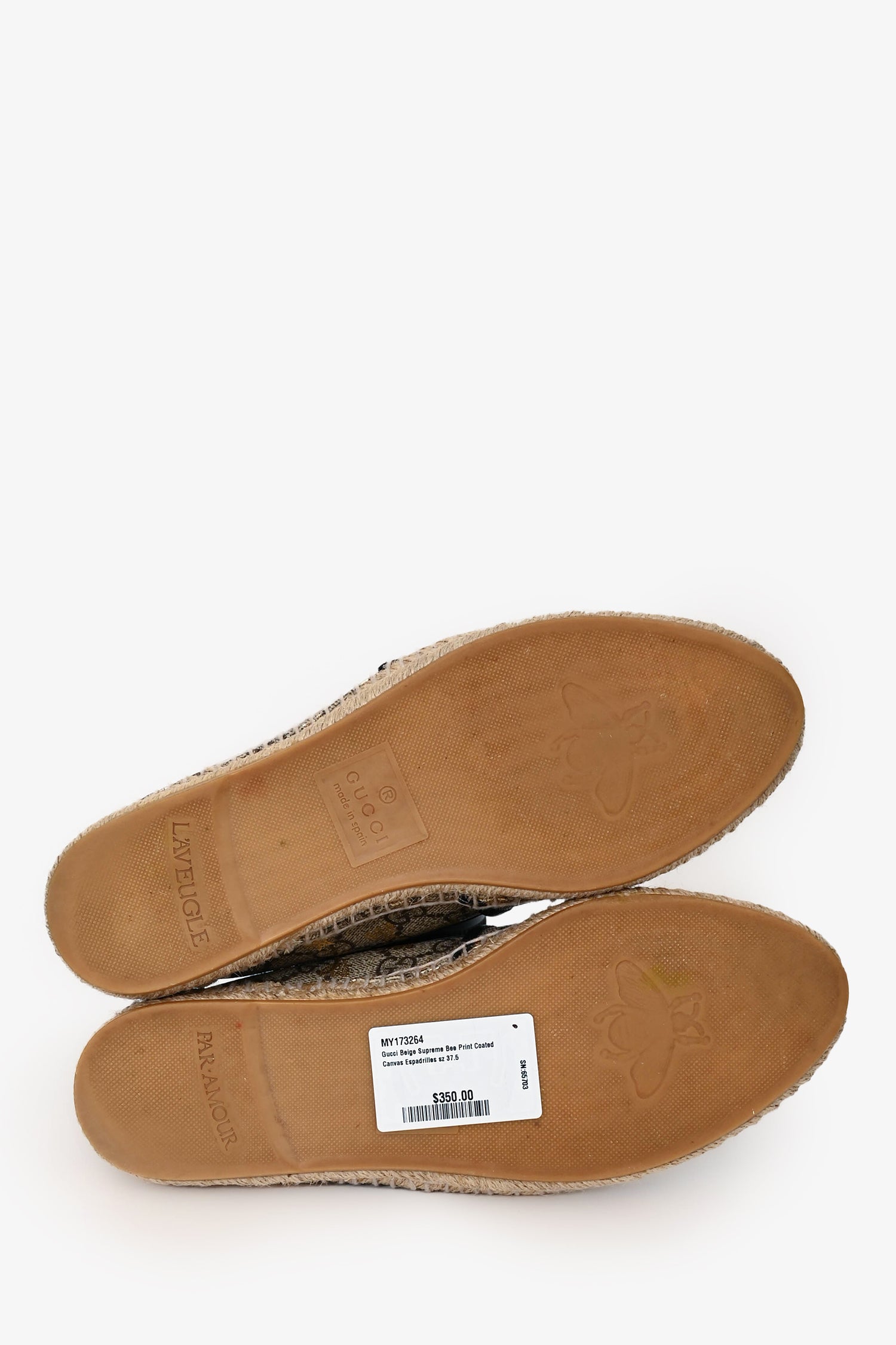 Refresh availabilityGucci Beige Supreme Bee Print Coated Canvas Espadrilles. Slip-on. Round toe.