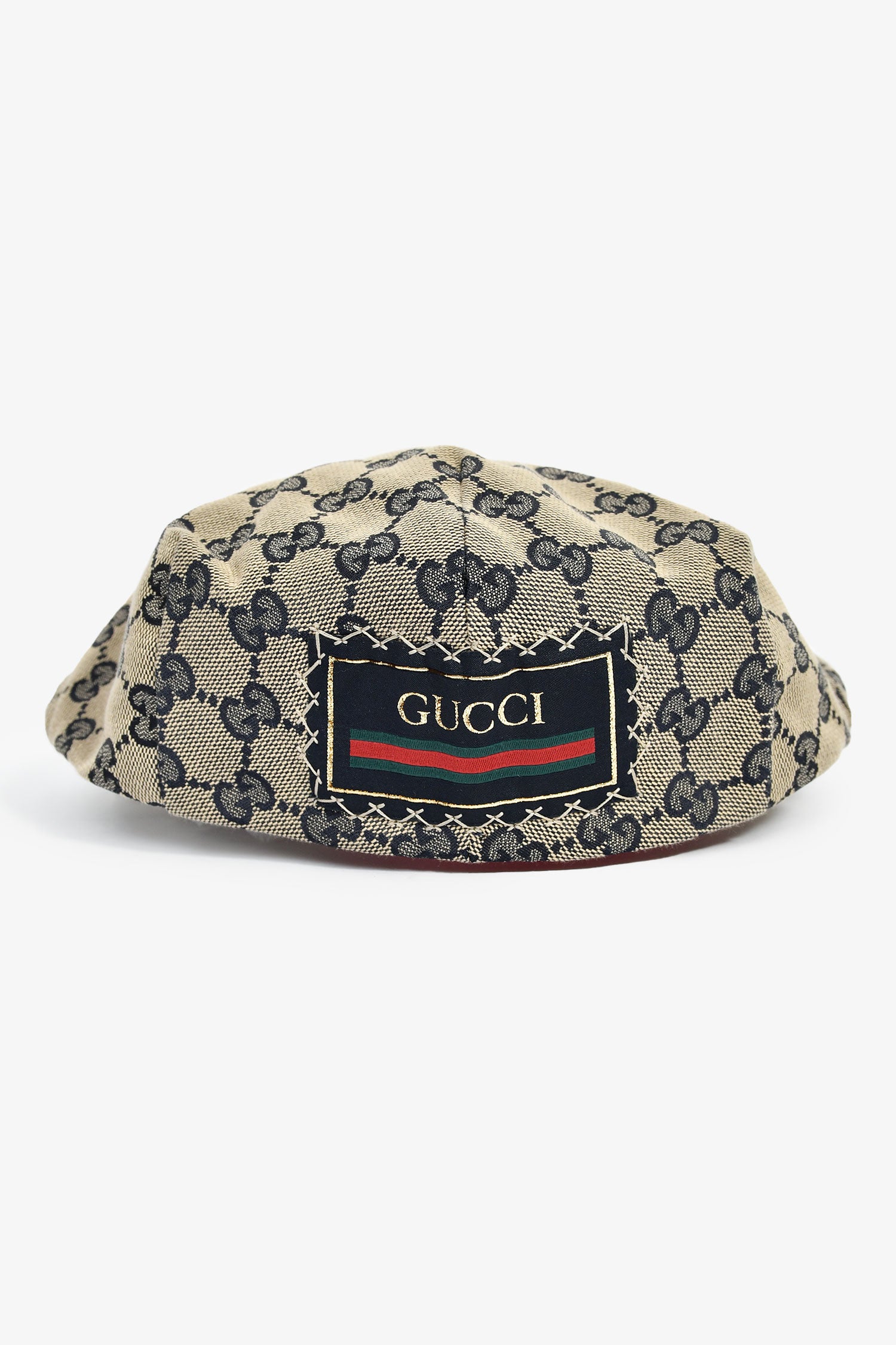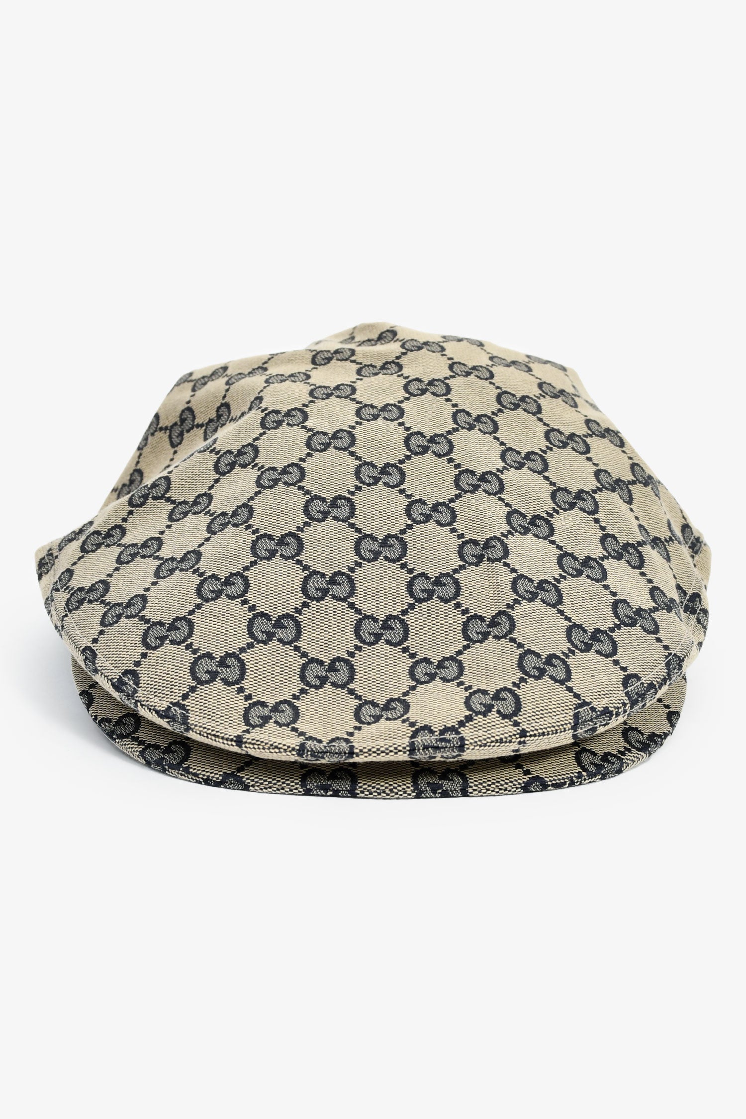Refresh availabilityGucci Beige/Navy GG Supreme Canvas 'Newsboy Cap'. Lined interior. Tonal stitching.