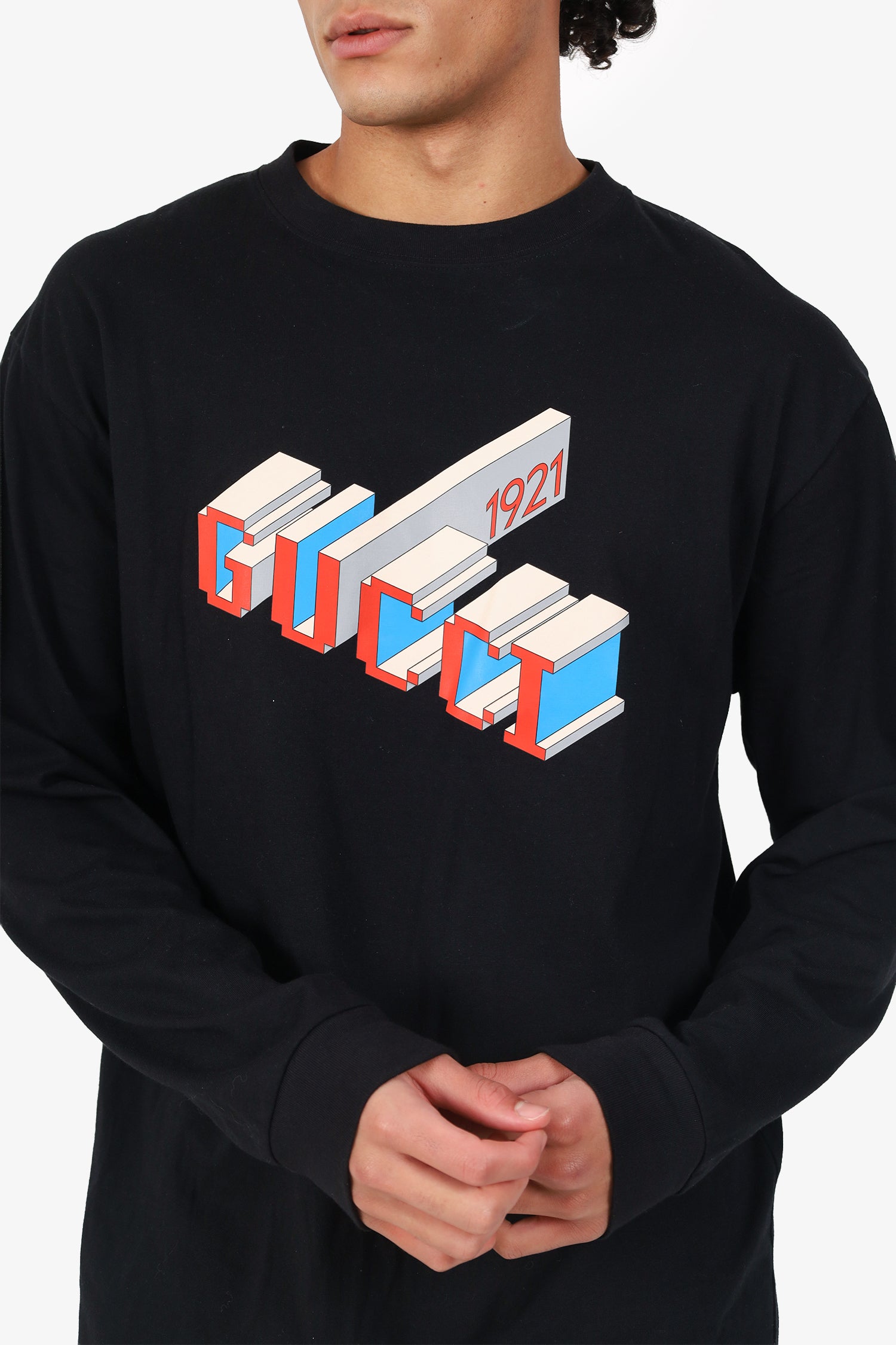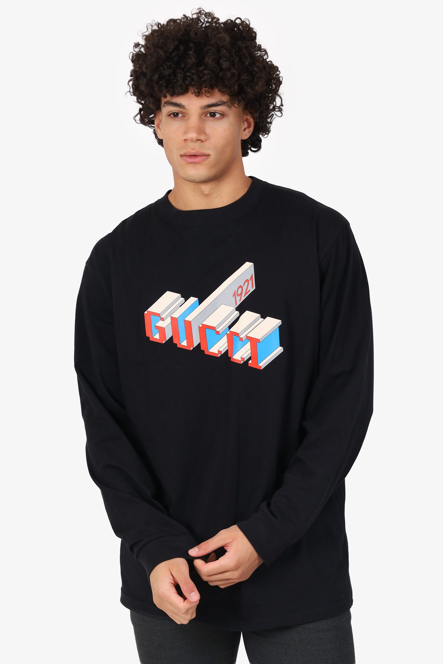 Refresh availabilityGucci Black 3D Logo Long Sleeve Shirt. Pull-on. Round neckline. Tonal stitching.