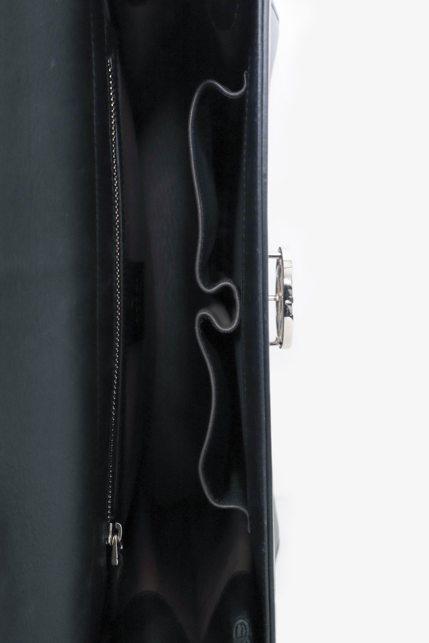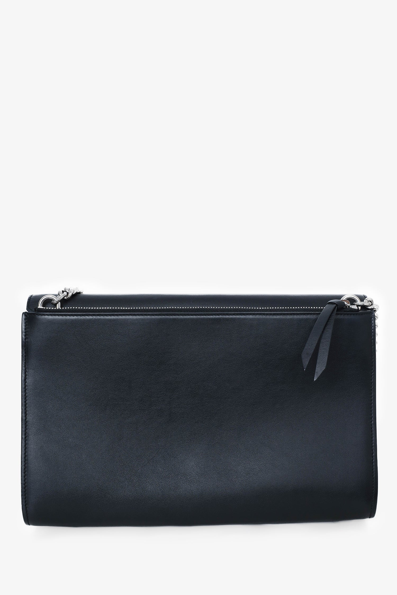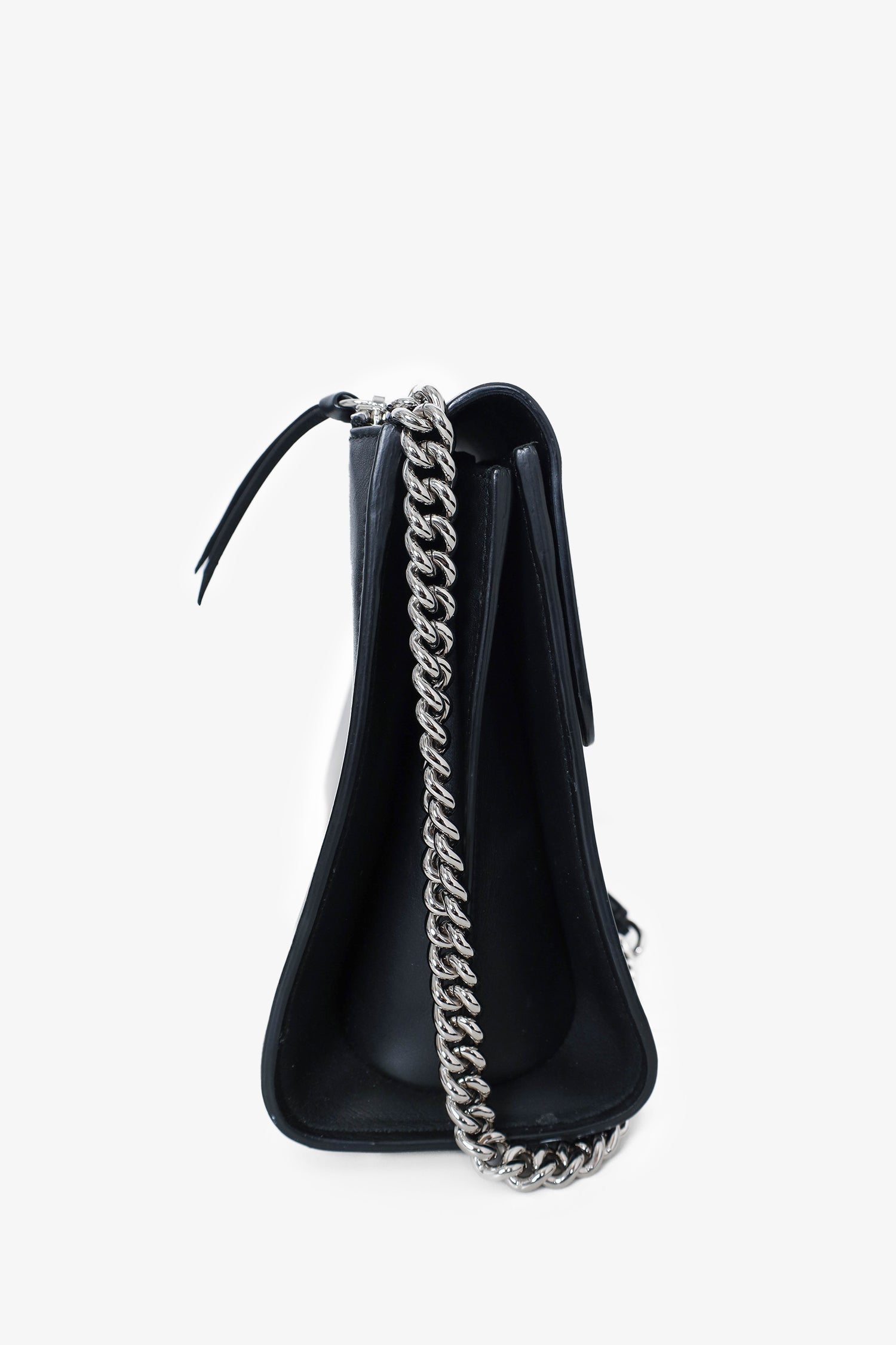 Refresh availabilityGucci Black Calfskin Medium Dollar Interlocking G Shoulder Bag. Front magnetic flap closure. Interior slip pockets. 1 interior zip pocket. 1 Rear top zip closure. Silver-toned hardware. Tonal stitching.