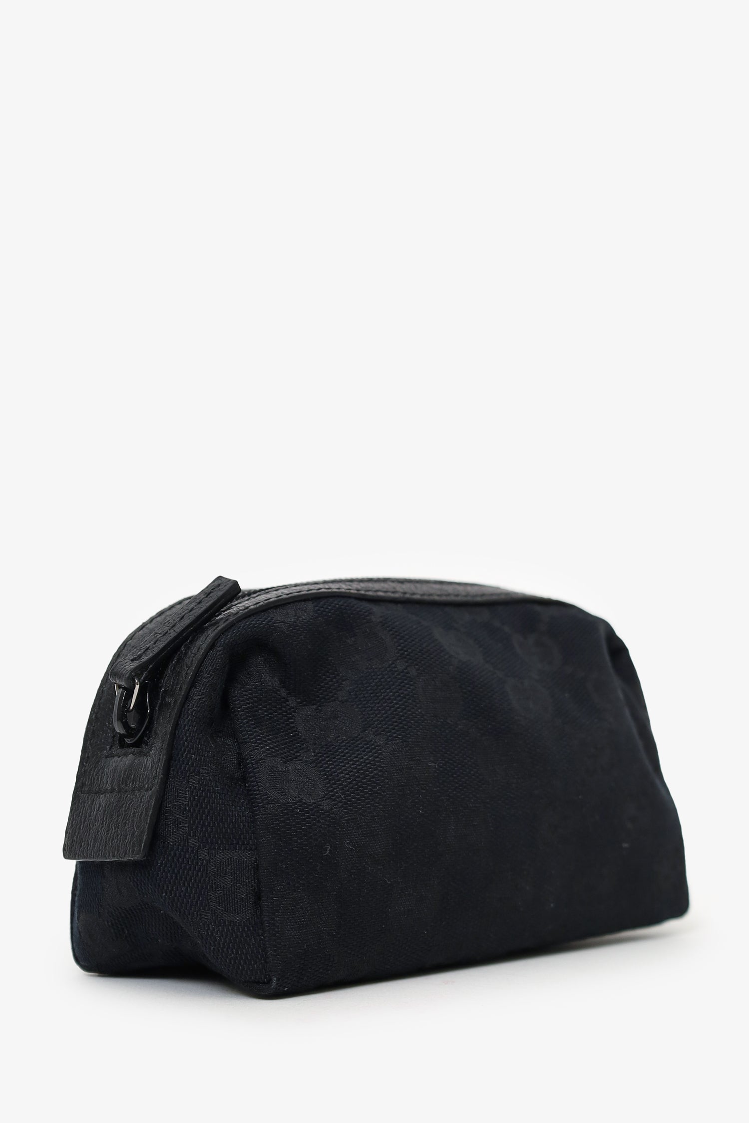 Refresh availabilityGucci Black Canvas/Leather GG Supreme Mini Pouch. Top zip closure. Open lined interior. Tonal stitching.