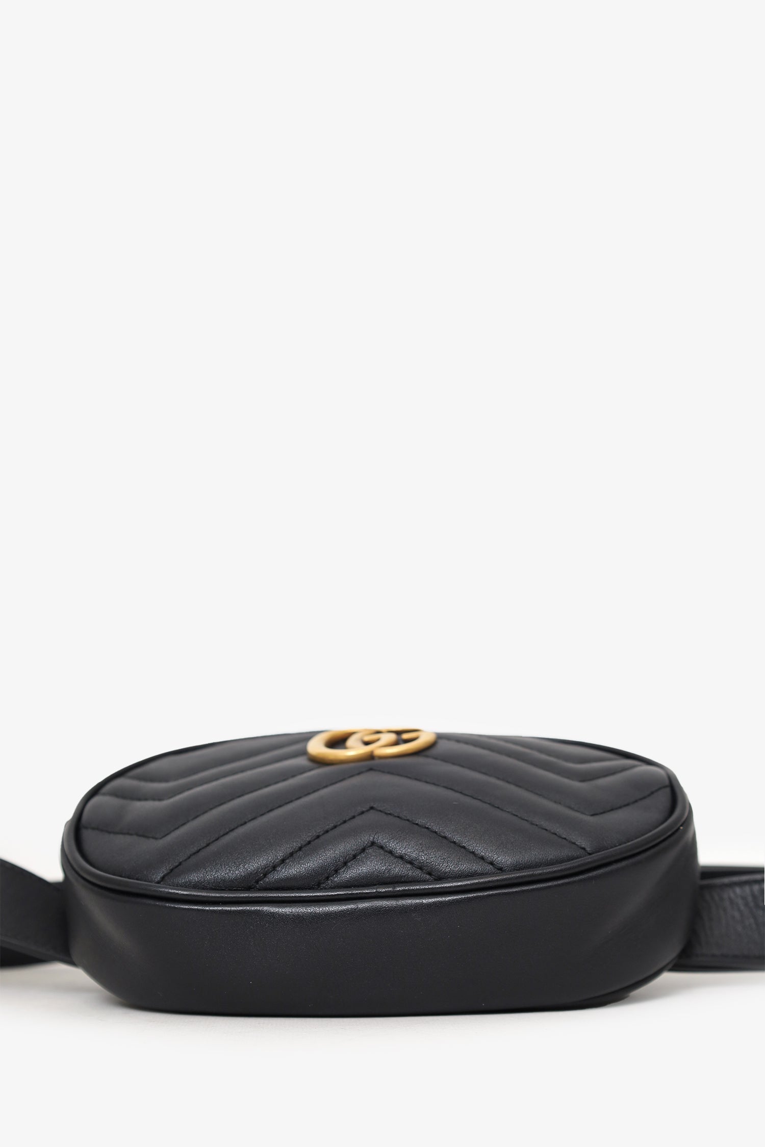 Gucci Black Chevron Leather Marmont Belt Bag