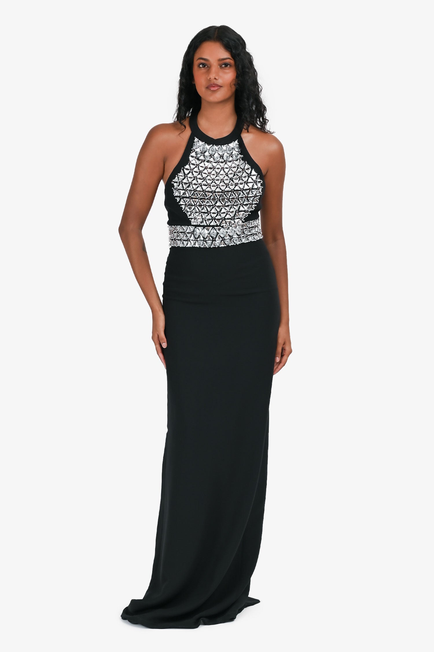 Gucci Black Crystal Embellished Halter Gown Size 38