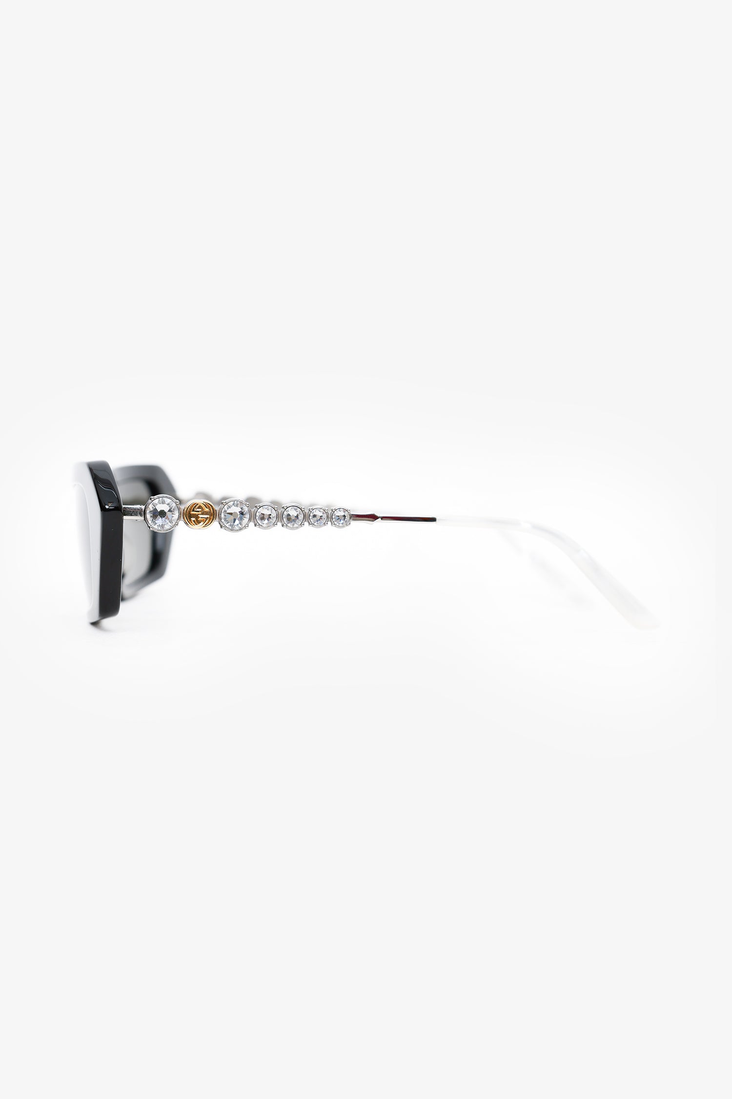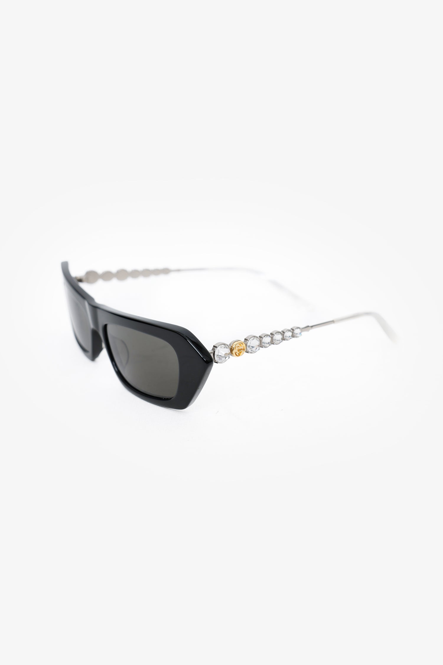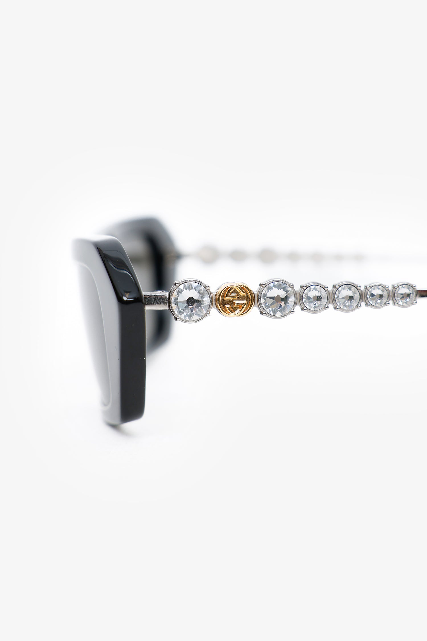 Refresh availabilityGucci Black Crystal Rectangle Sunglasses. Built-in nose pads. Gold and silver-tone hardware.