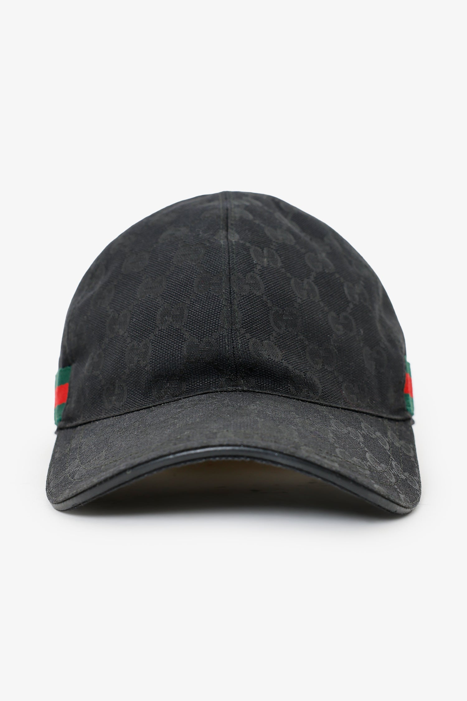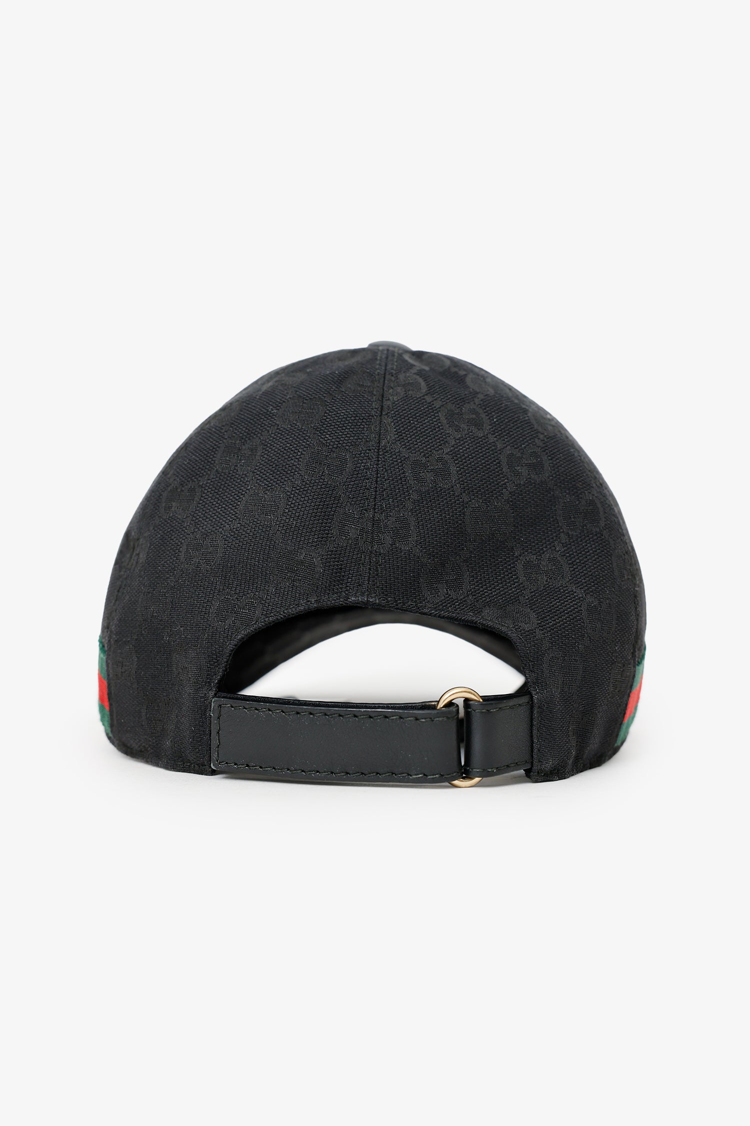 Refresh availabilityGucci Black GG Canvas Web Baseball Cap. Adjustable rear pull-through velcro closure. Lined interior. Silver-tone hardware. Tonal stitching.