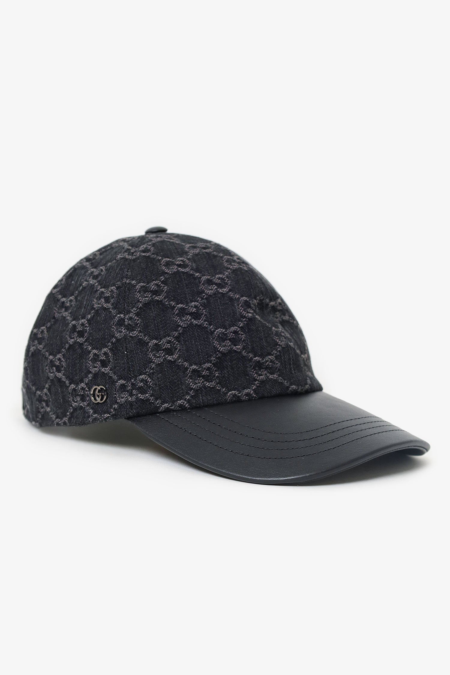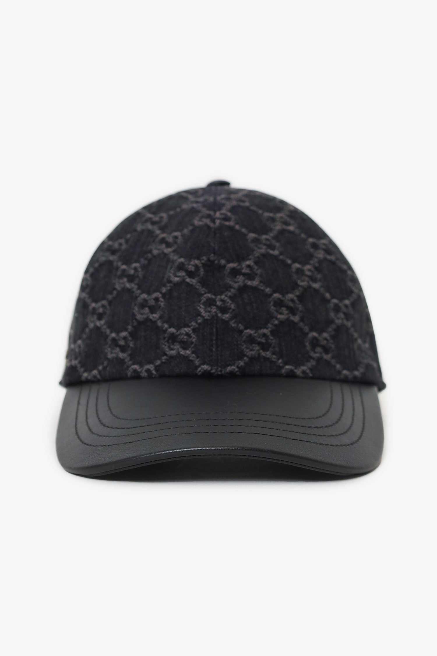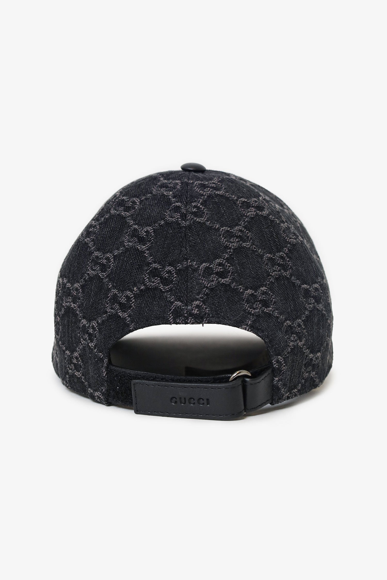Refresh availabilityGucci Black GG Denim Baseball Hat. Velcro pull through adjustable closure. Gunmetal hardware. Tonal stitching.