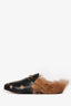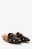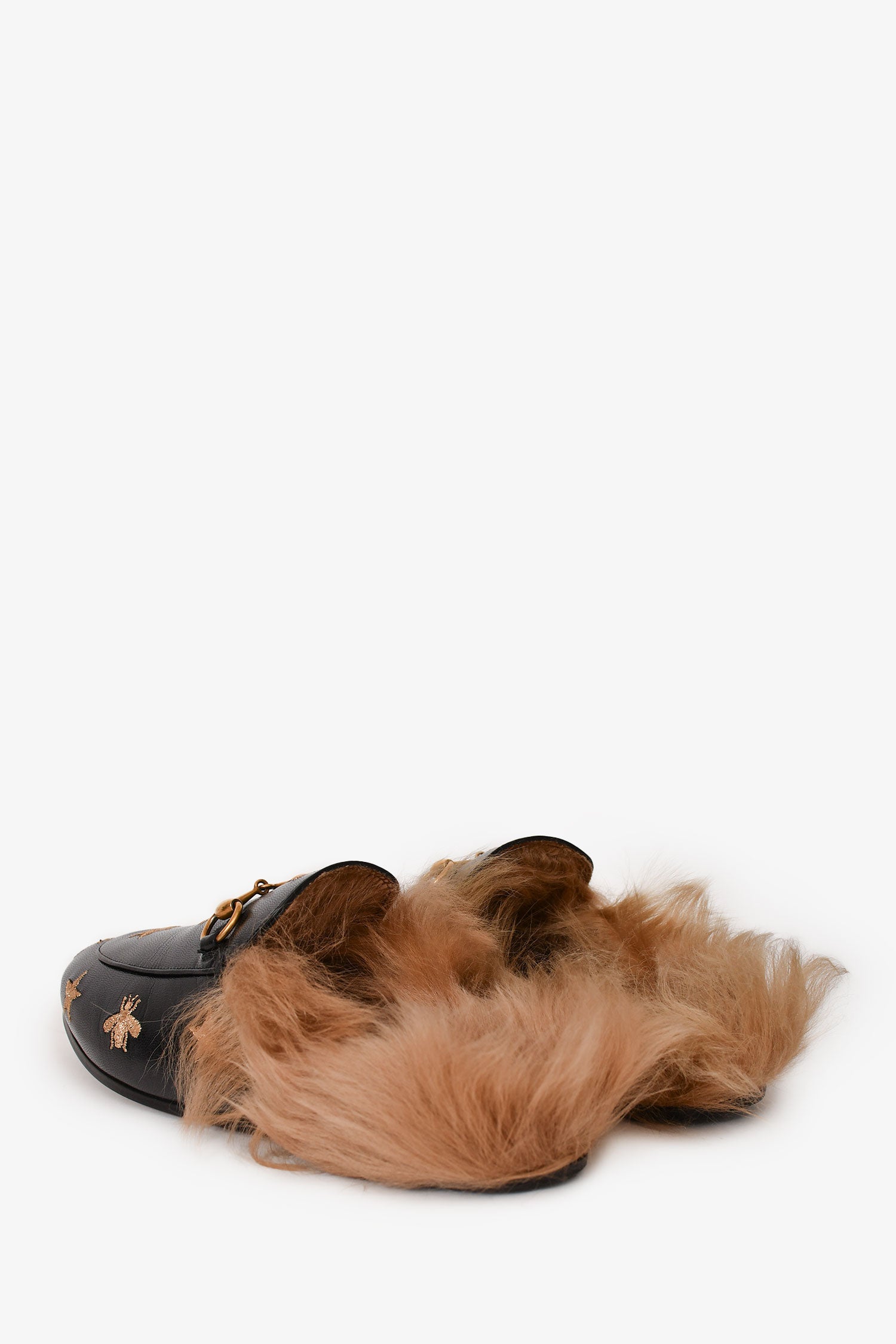 Gucci Black/ Gold Bee Embroidered 'Princeton' Fur Mules Size 37