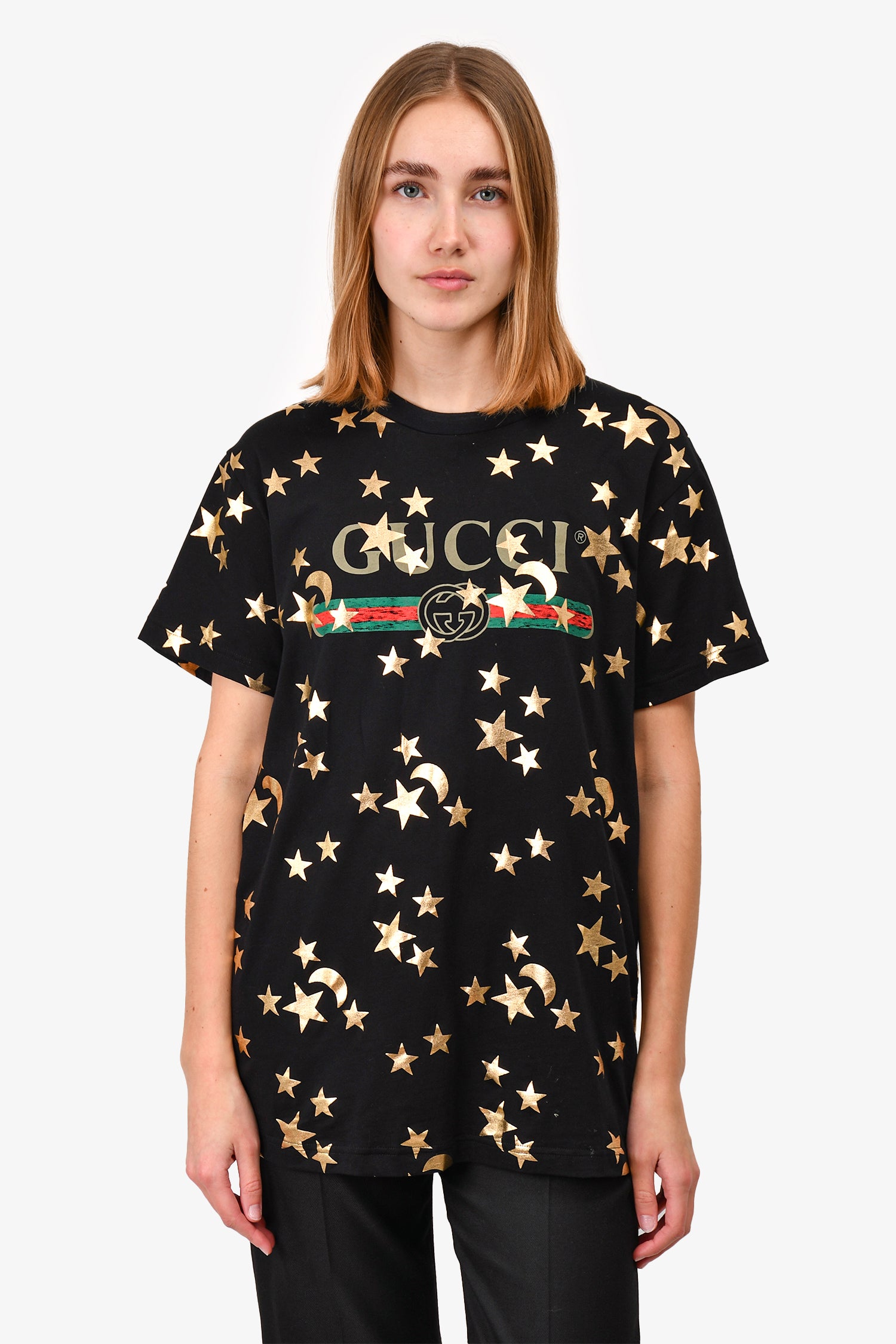 Gucci Black/Gold Star Logo T-Shirt Size XS Mens