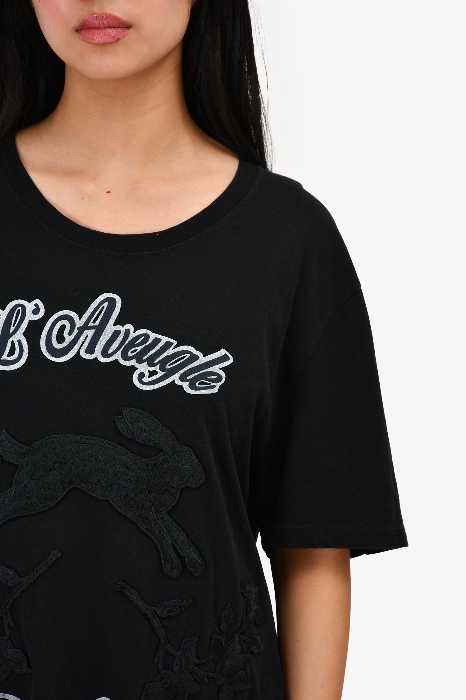 Refresh availabilityGucci Black 'L'Aveugle Par Amour' Rabbit Embroidered T-Shirt. Round neck. Pull-on.
