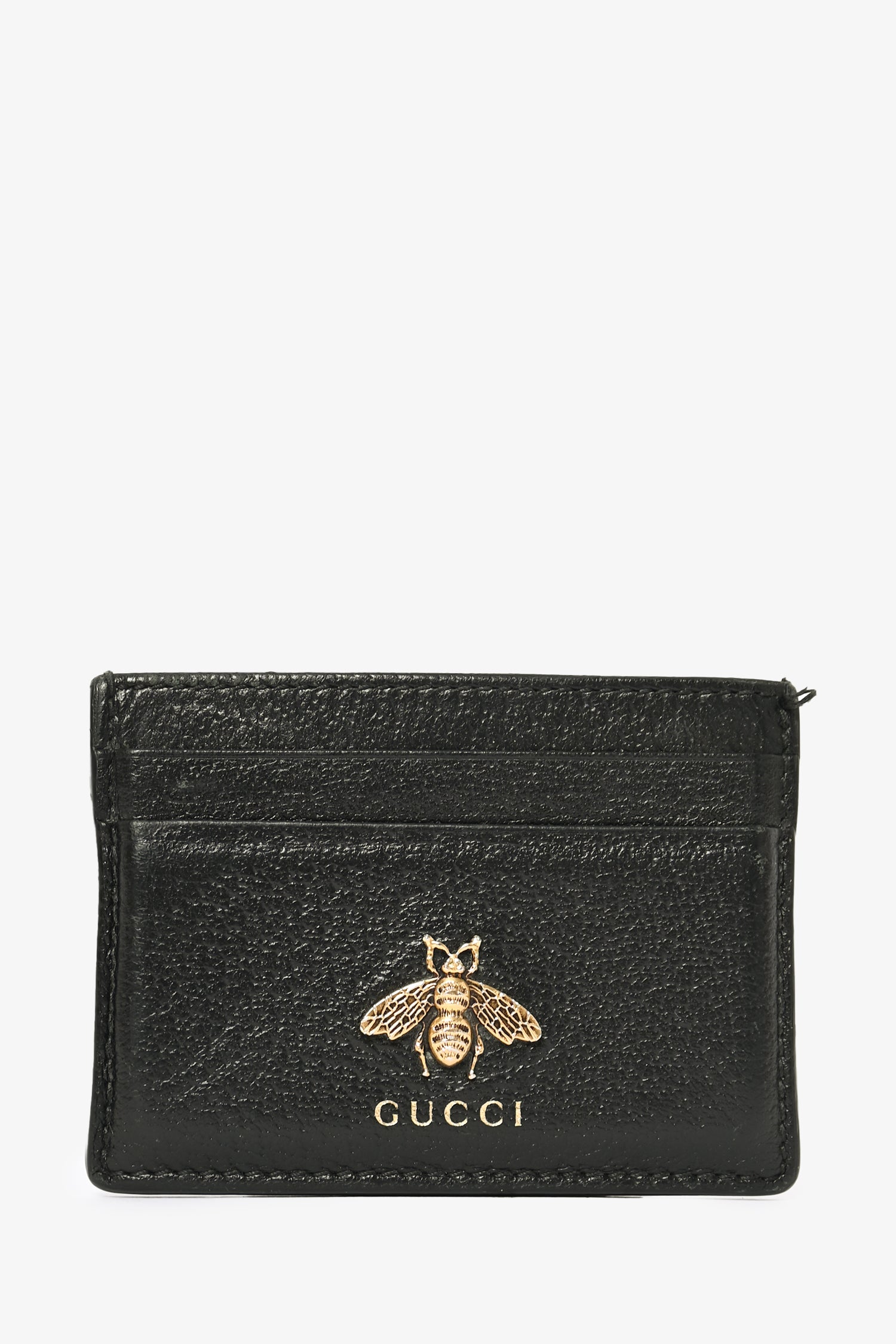 Refresh availabilityGucci Black Leather Bee Card Holder. Tonal stitching. 5 card holder slots.