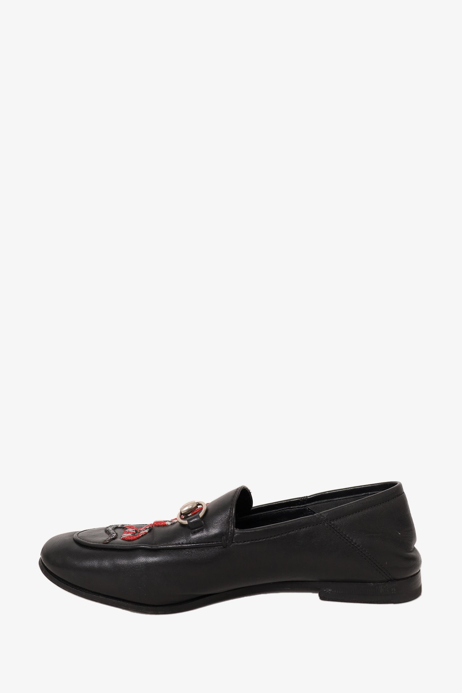 Gucci Black Leather Brixton Snake Loafers Size 35.5