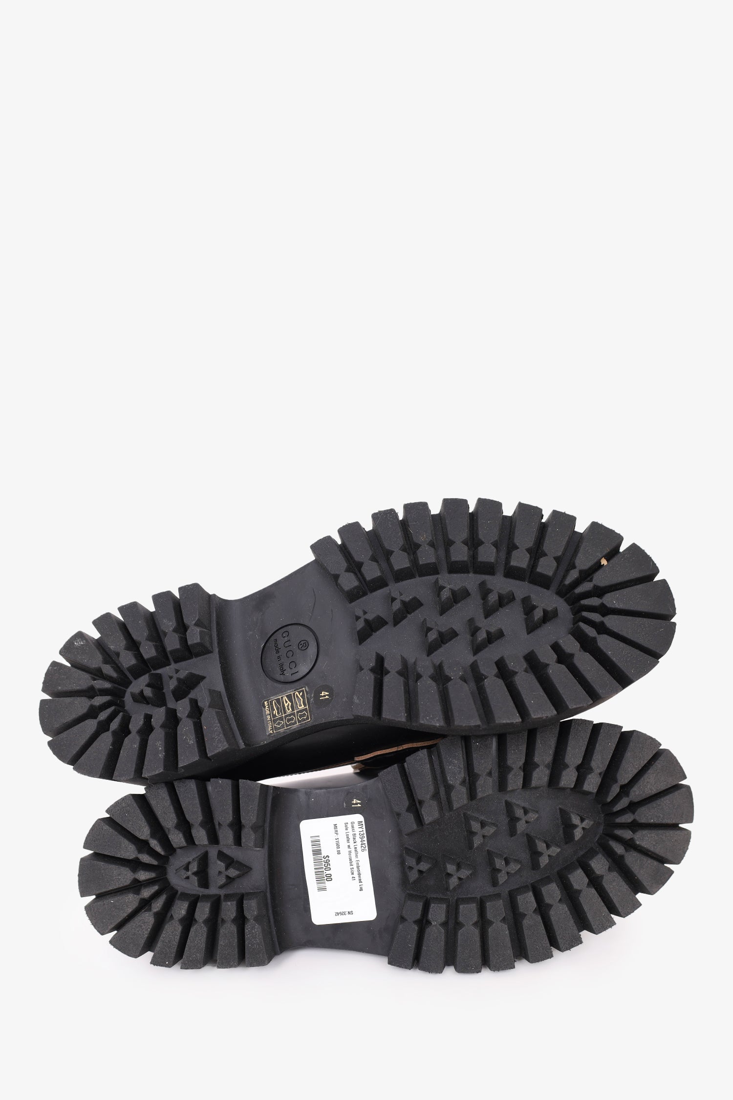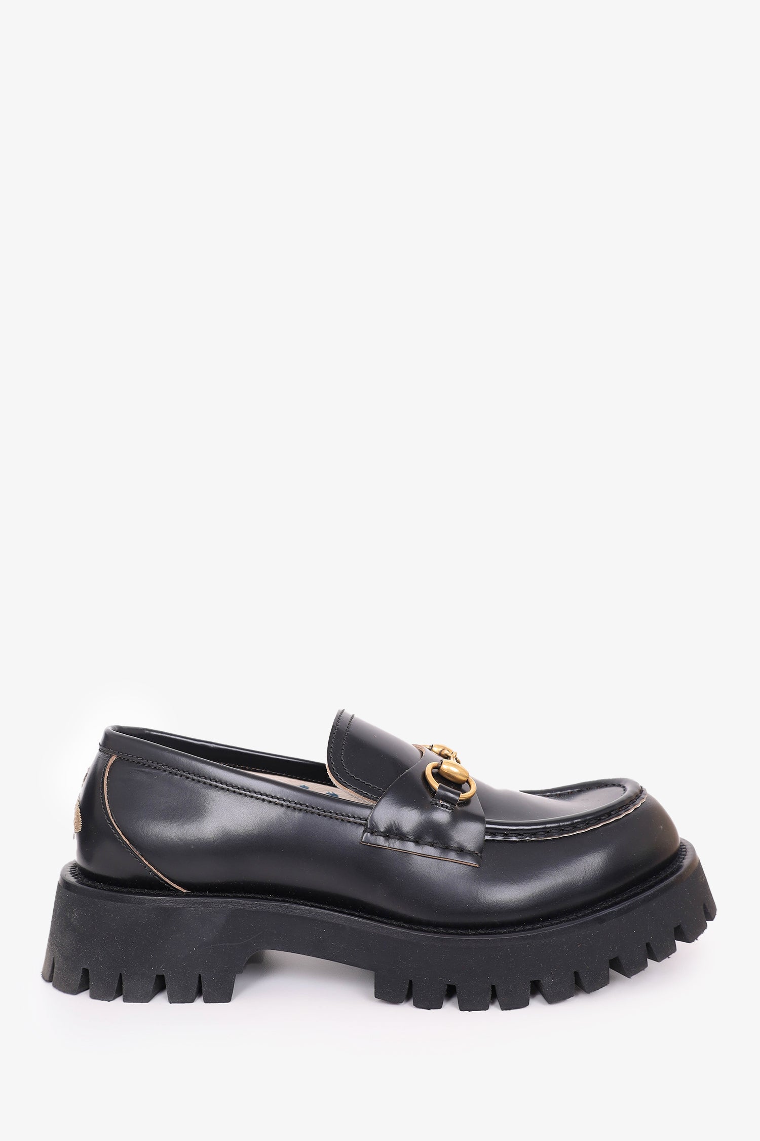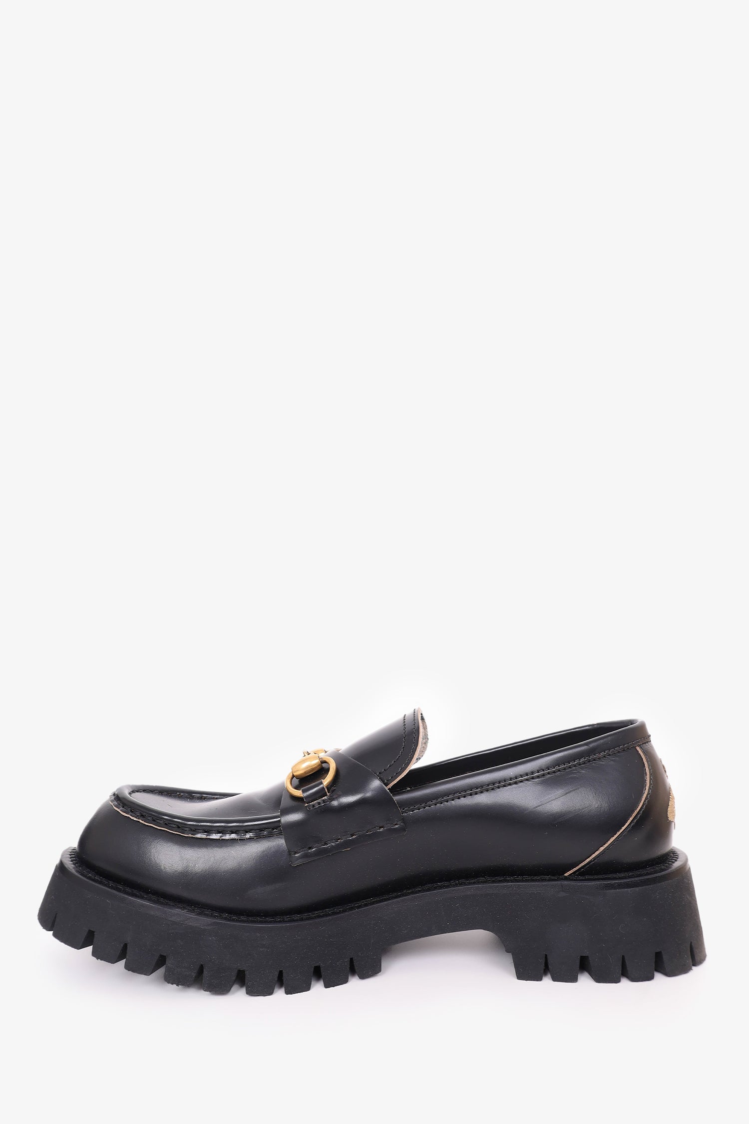 Gucci Black Leather Embroidered Lug Sole Loafer with Horsebit Size 41