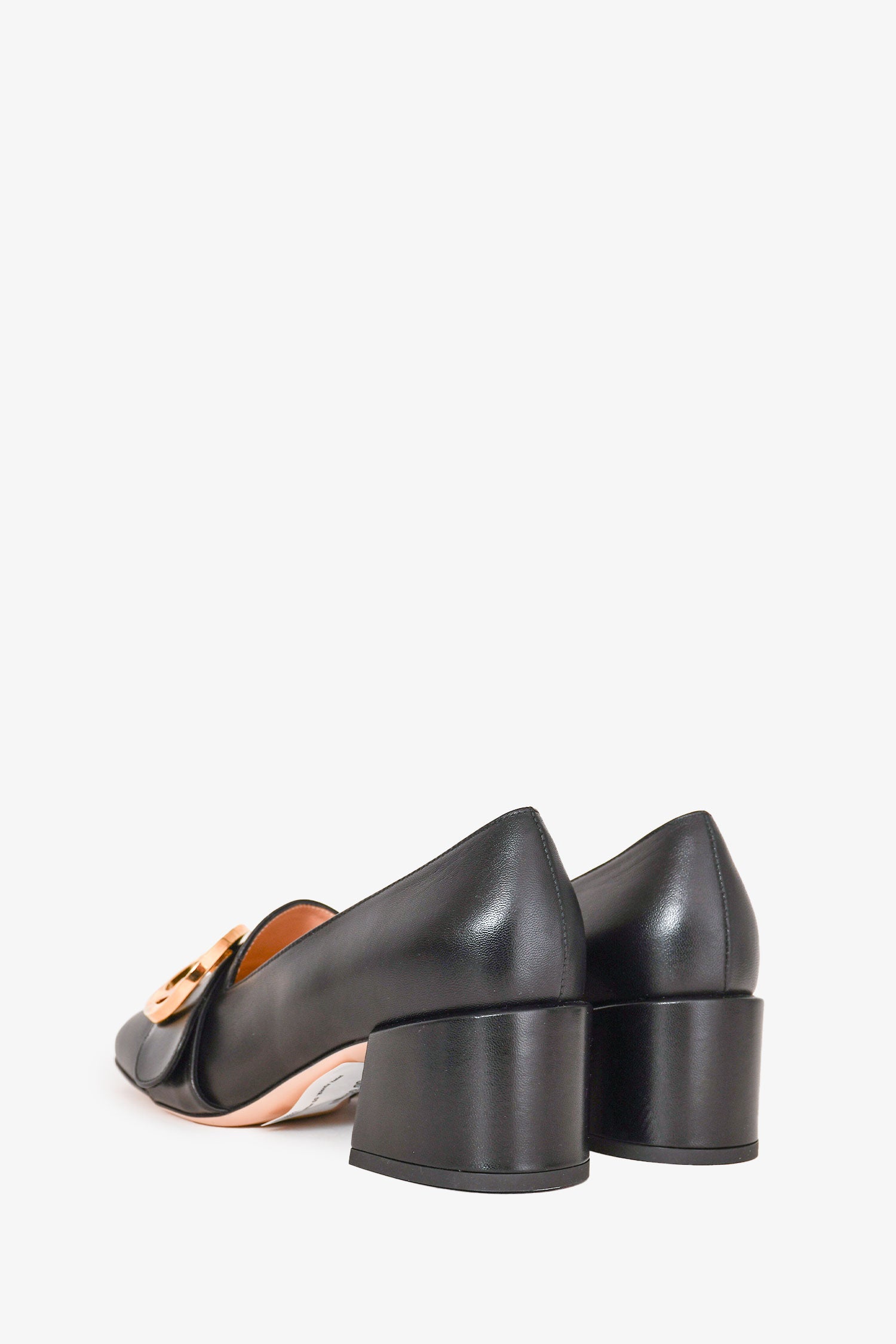 Refresh availabilityGucci Black Leather GG 'Blondie' Heeled Loafers. Square toe. Gold-tone hardware. Leather insole. Covered block heel. Tonal stitching.