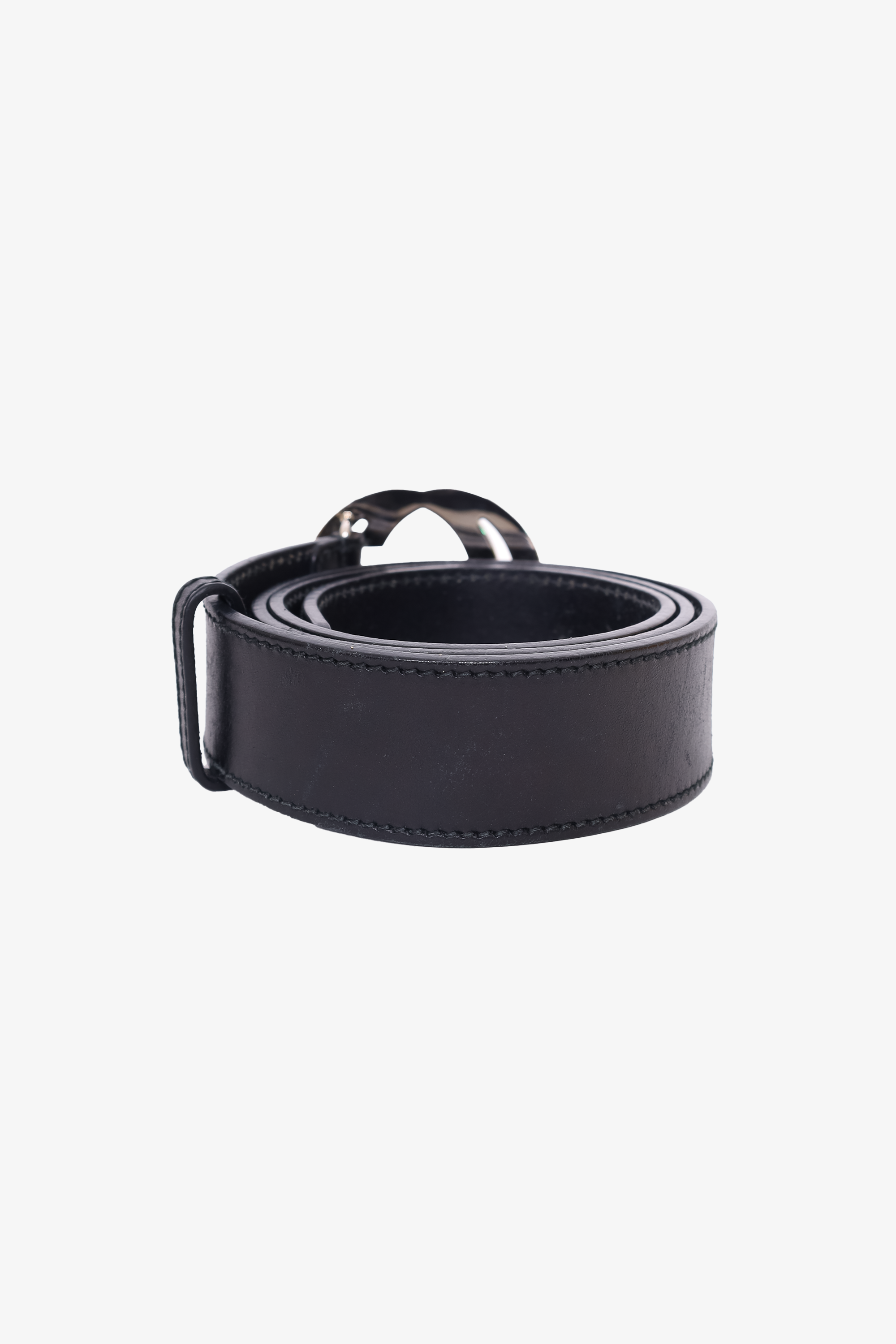 Refresh availabilityGucci Black Leather GG Buckle Belt. Silver tone hardware. Tonal stitching.