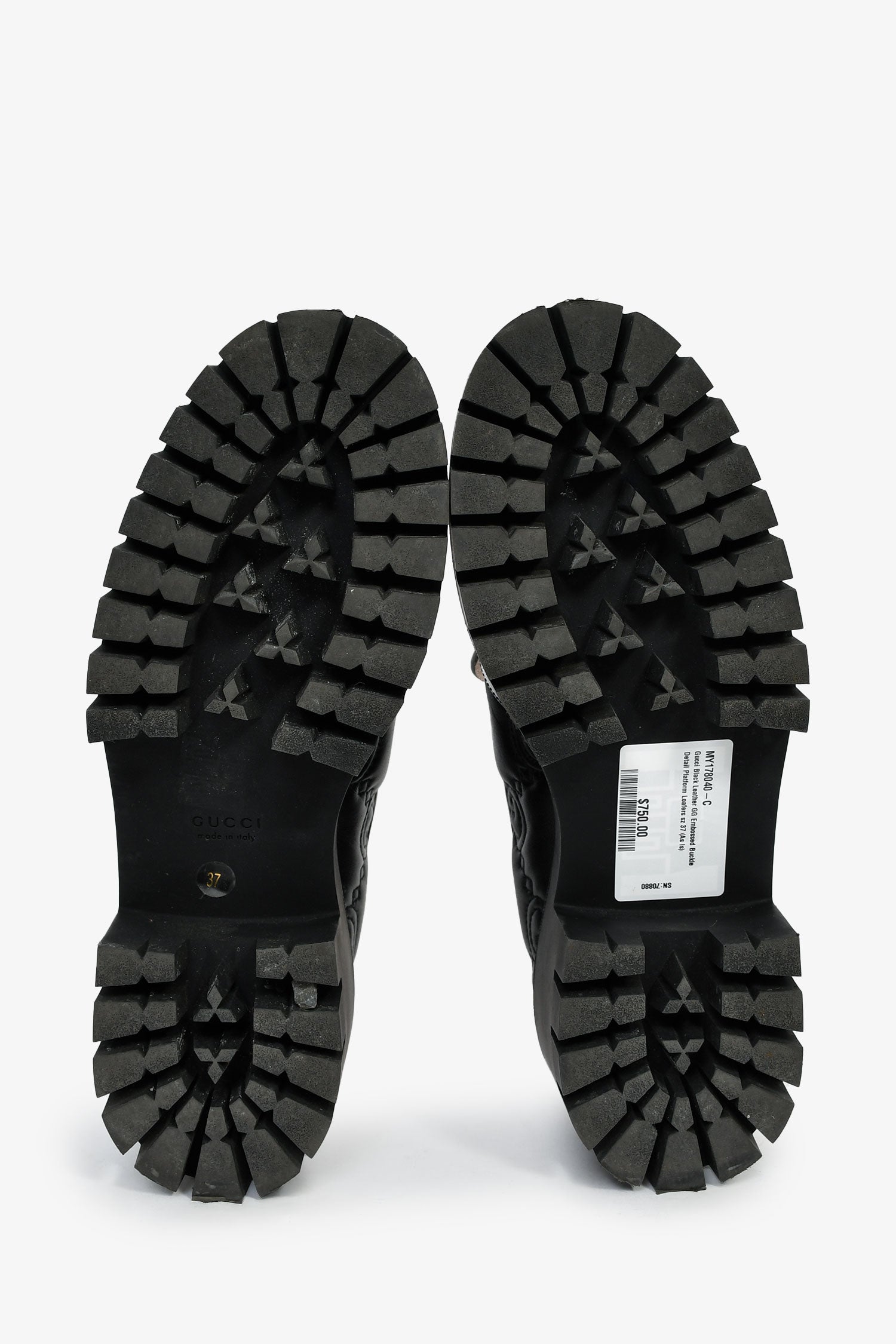 Gucci Black Leather GG Embossed Buckle Detail Platform Loafers Size 37