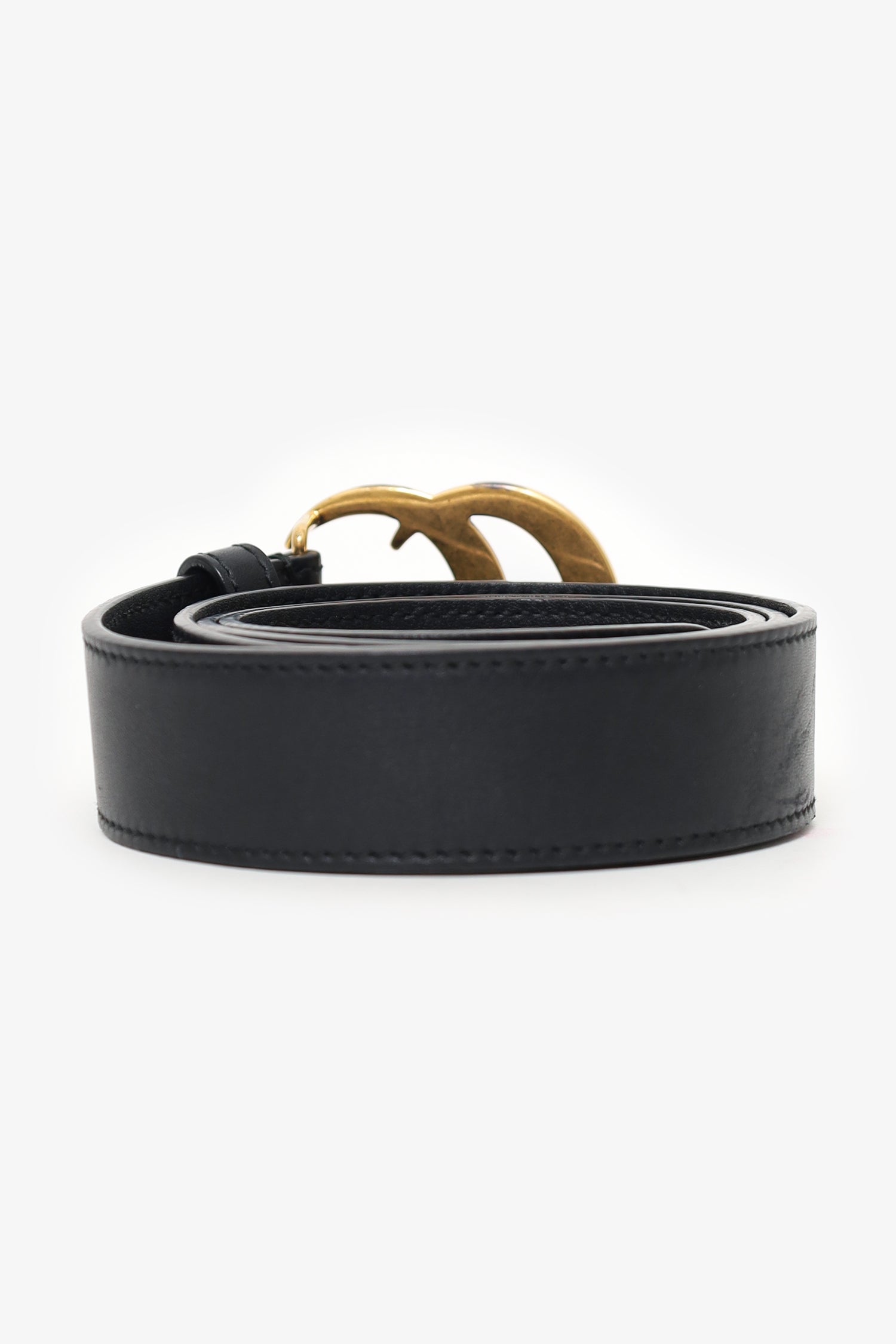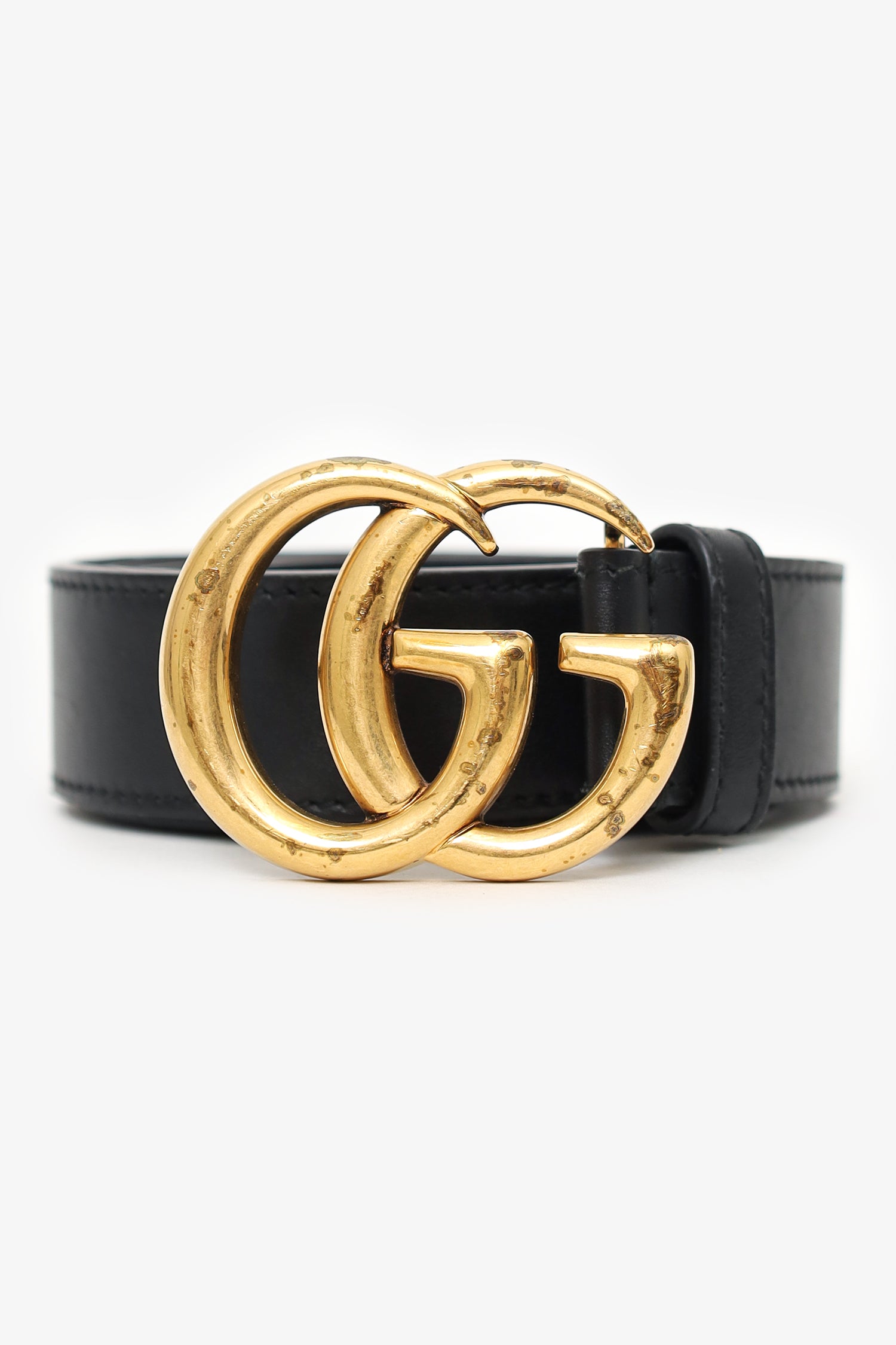 Refresh availabilityGucci Black Leather GG Marmont Belt. Adjustable push-pin buckle closure. Tonal stitching. Gold-tone hardware.