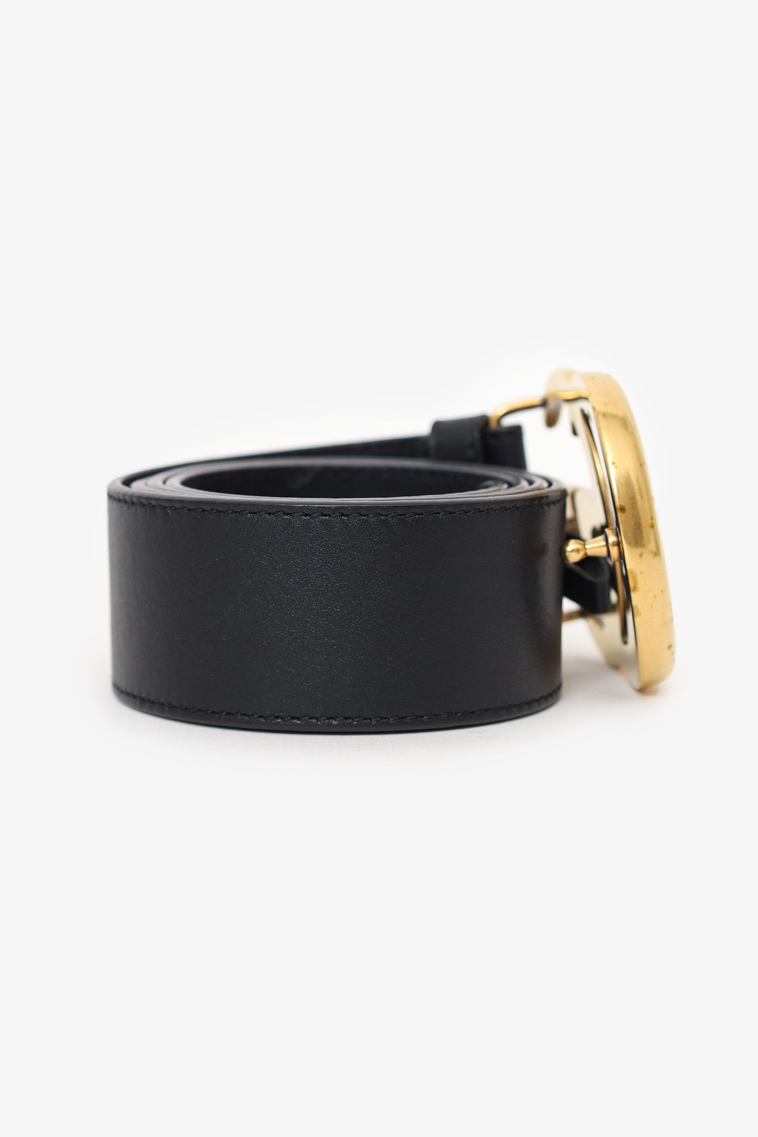 Refresh availabilityGucci Black Leather GG Marmont Belt. Adjustable push-pin buckle closure. Tonal stitching. Gold-tone hardware.