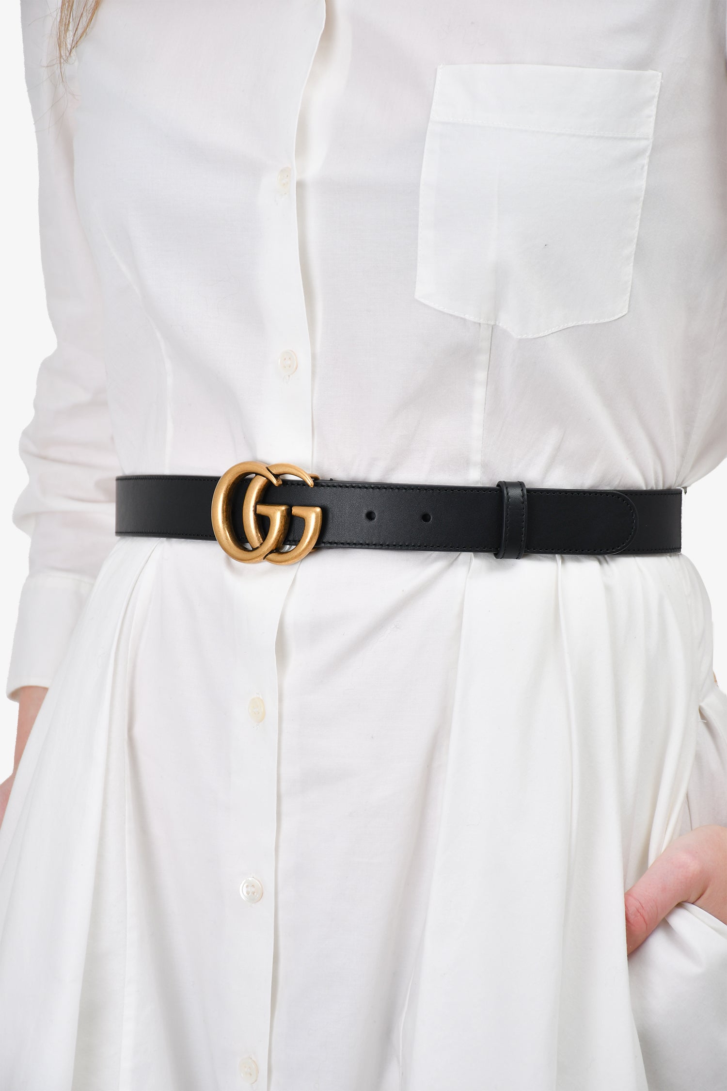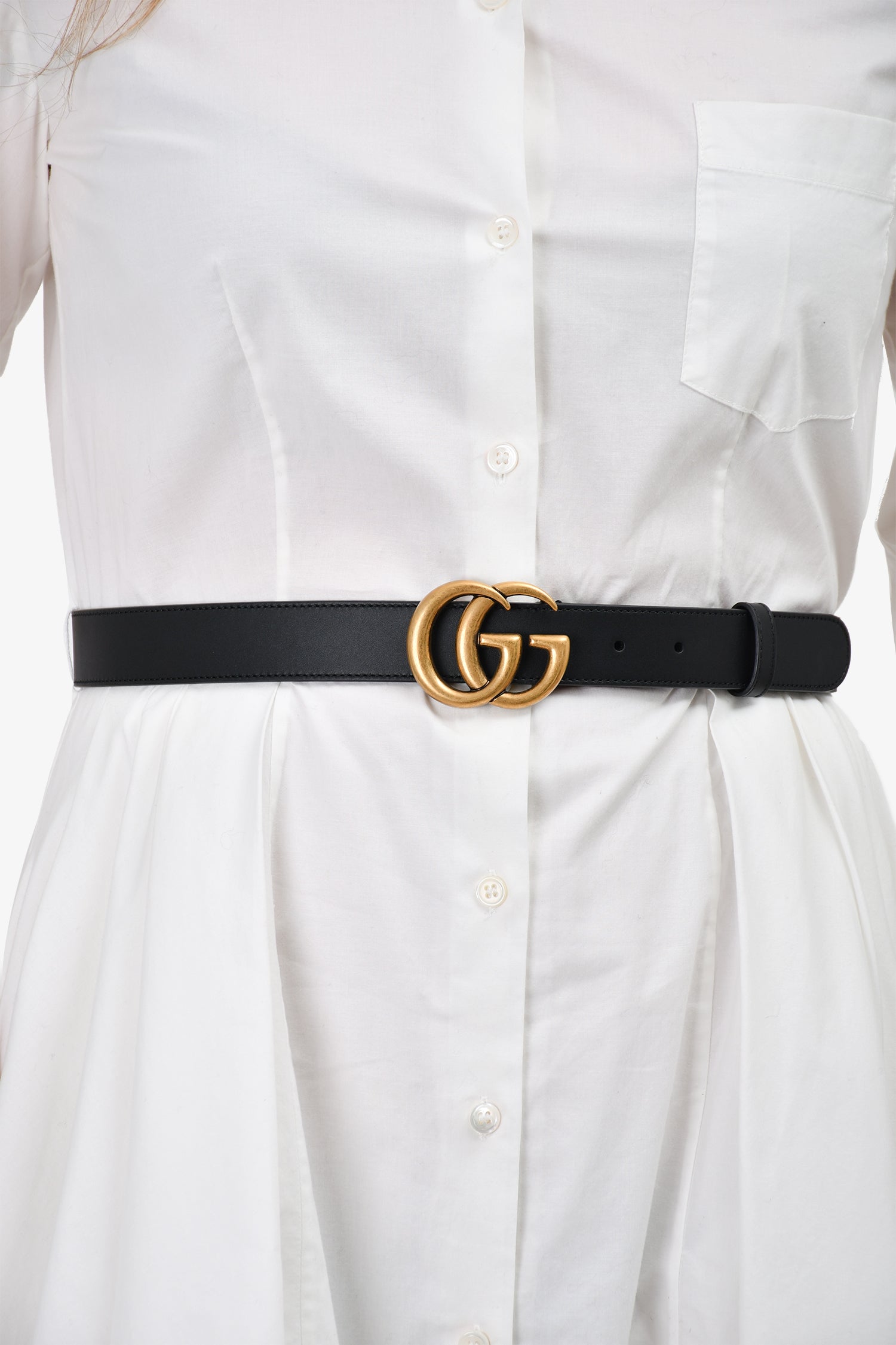 Refresh availabilityGucci Black Leather GG Marmont Belt. Push tab closure. Tonal stitching.