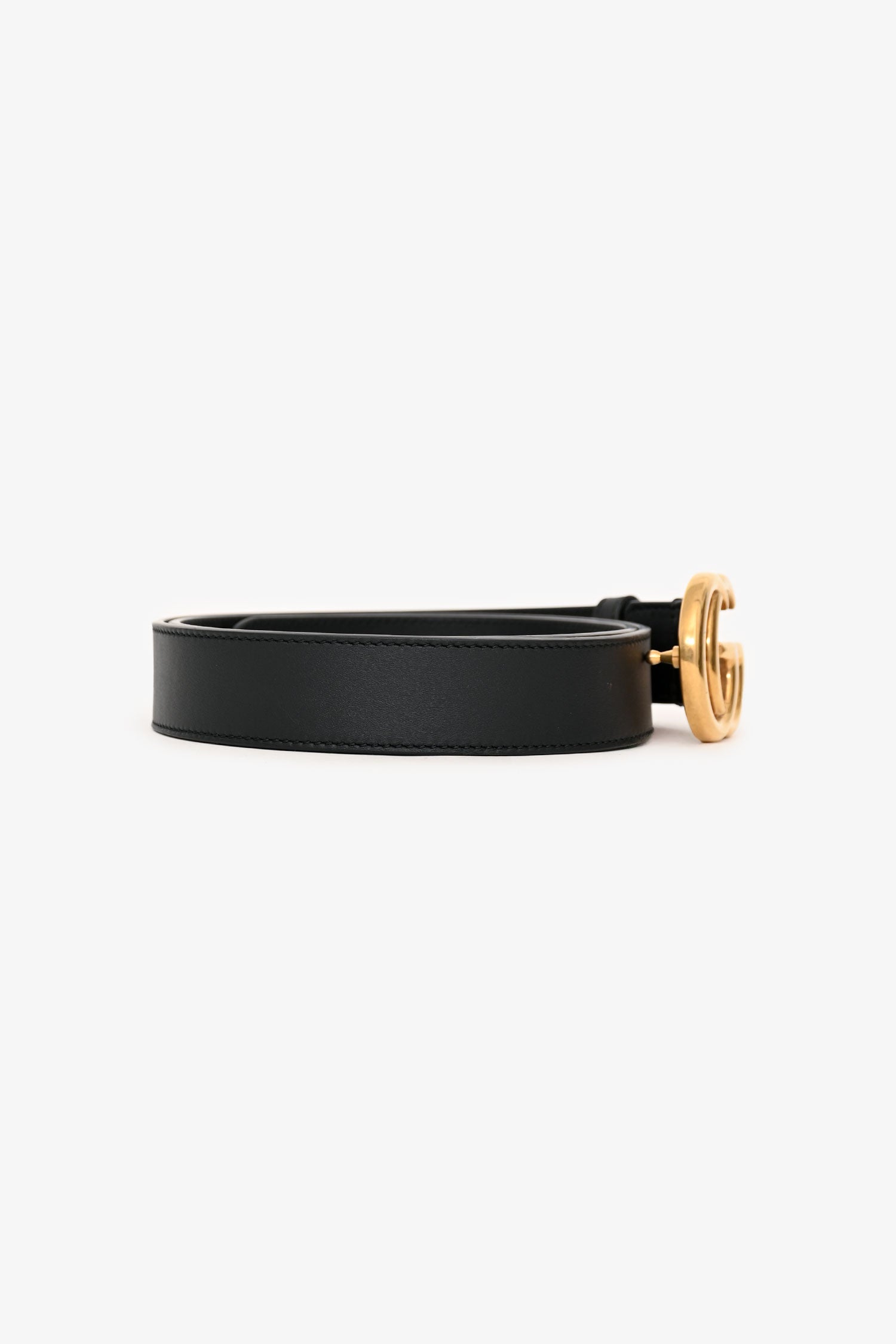 Refresh availabilityGucci Black Leather GG Marmont Belt. Gold-tone hardware. Tonal stitching.