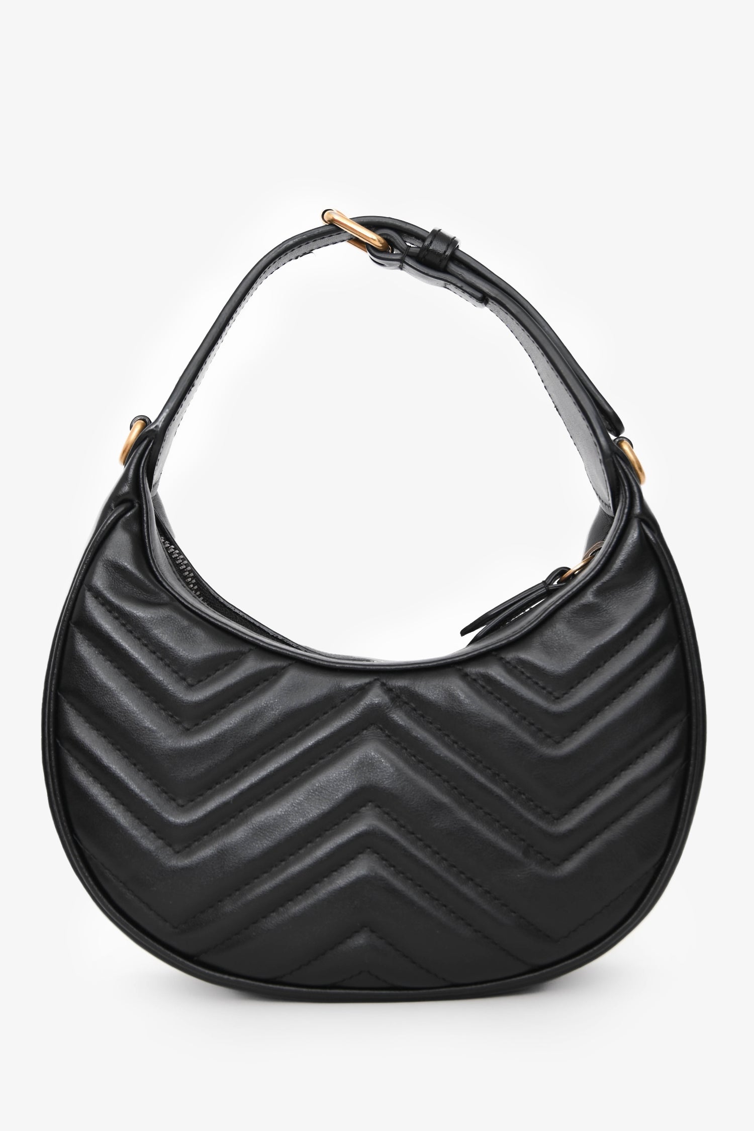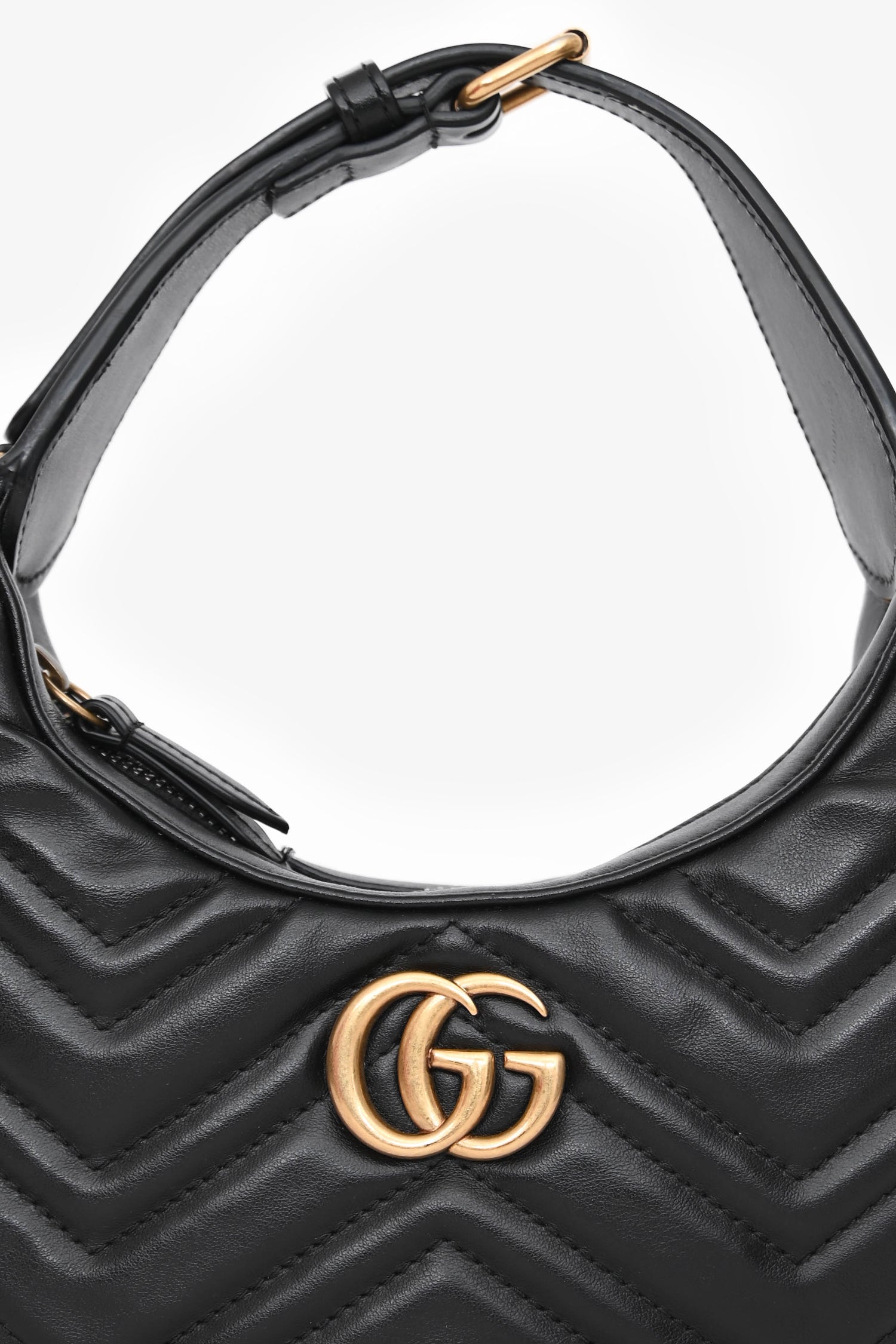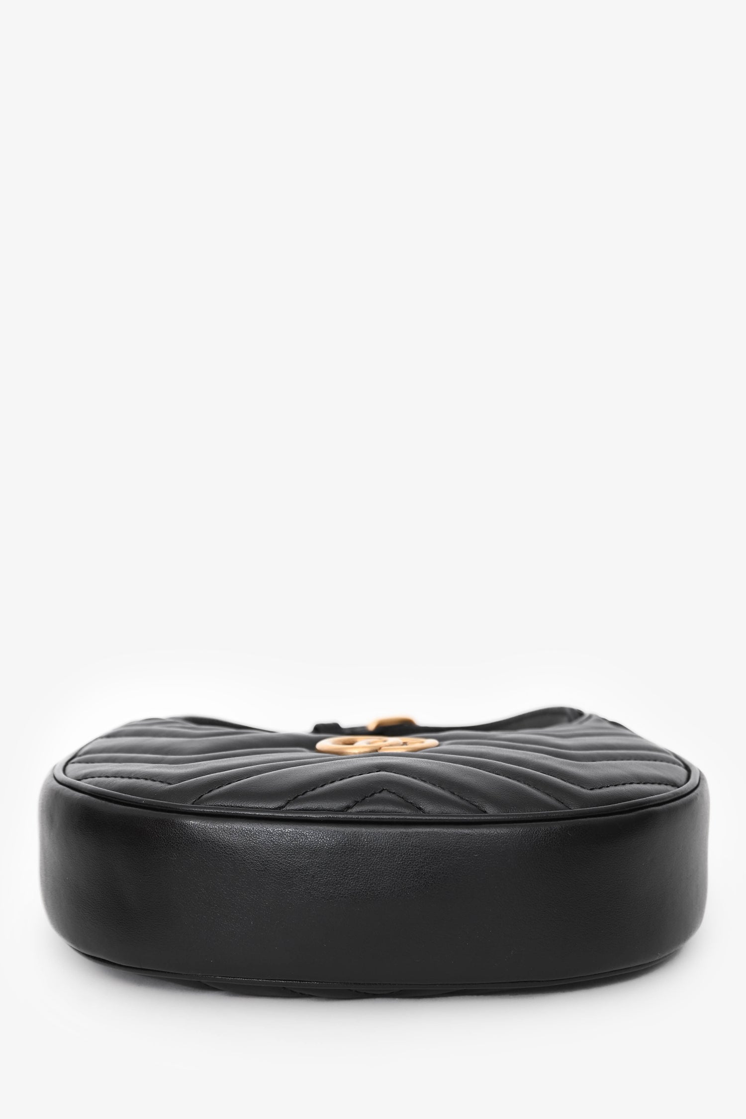 Gucci Black Leather GG Marmont Half Moon Top Handle Bag