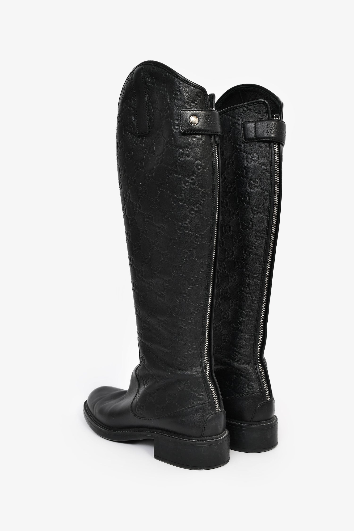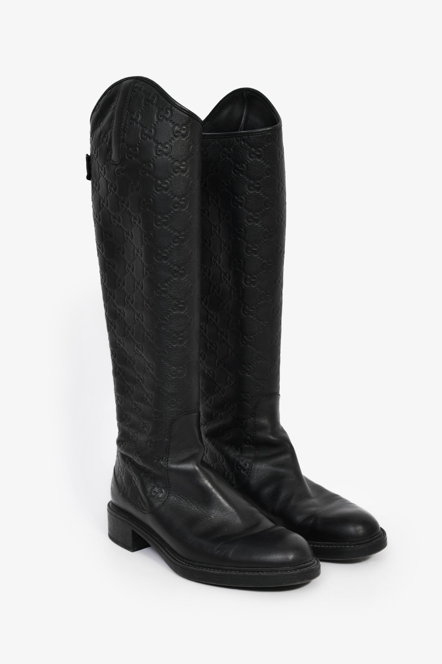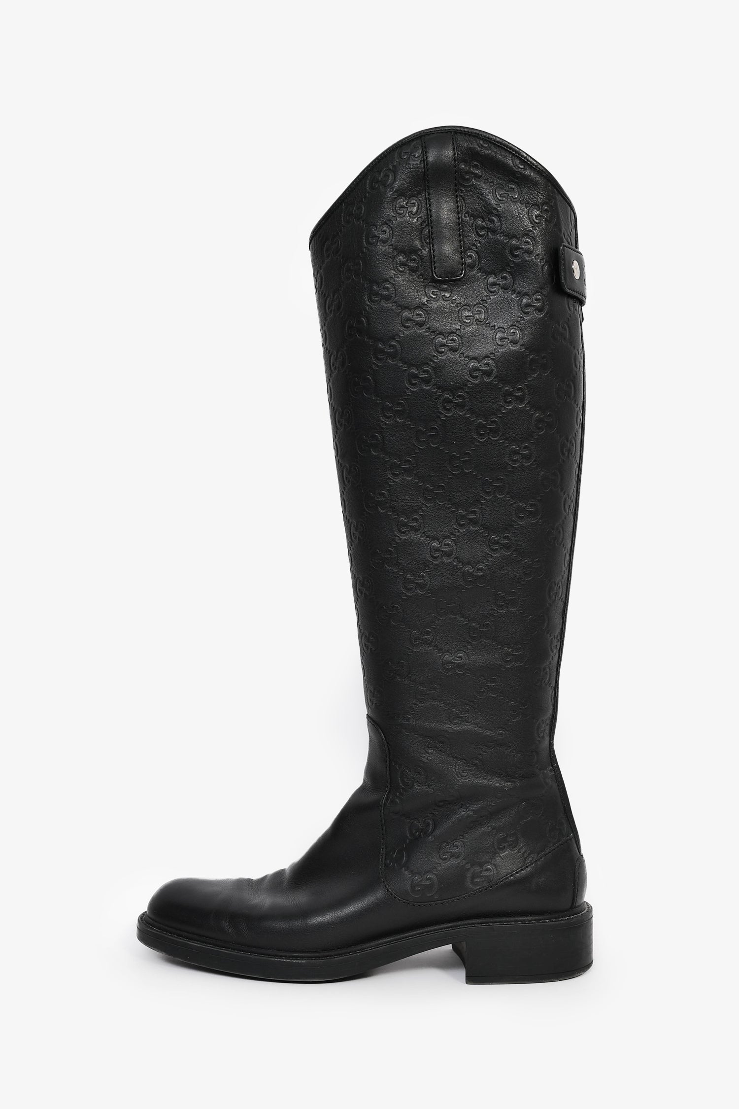 Gucci Black Leather GG Monogram Riding Boots Size 38
