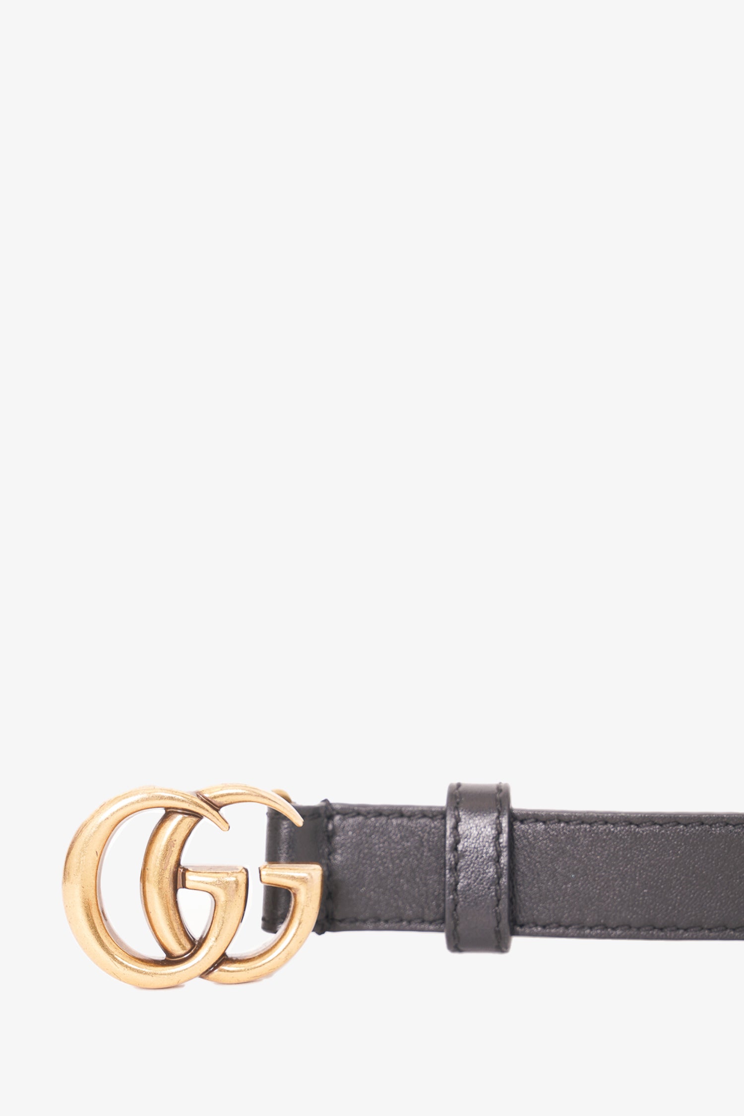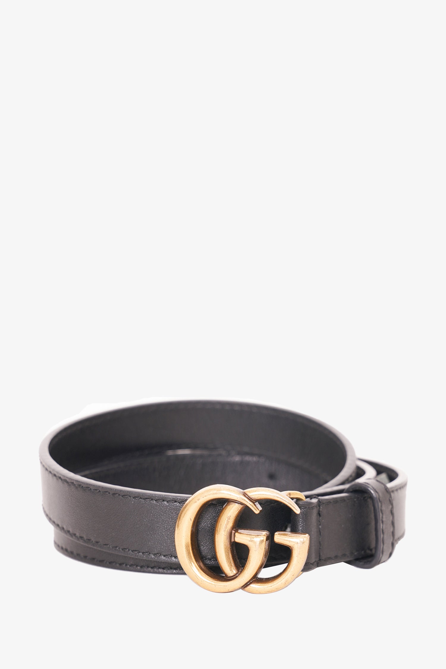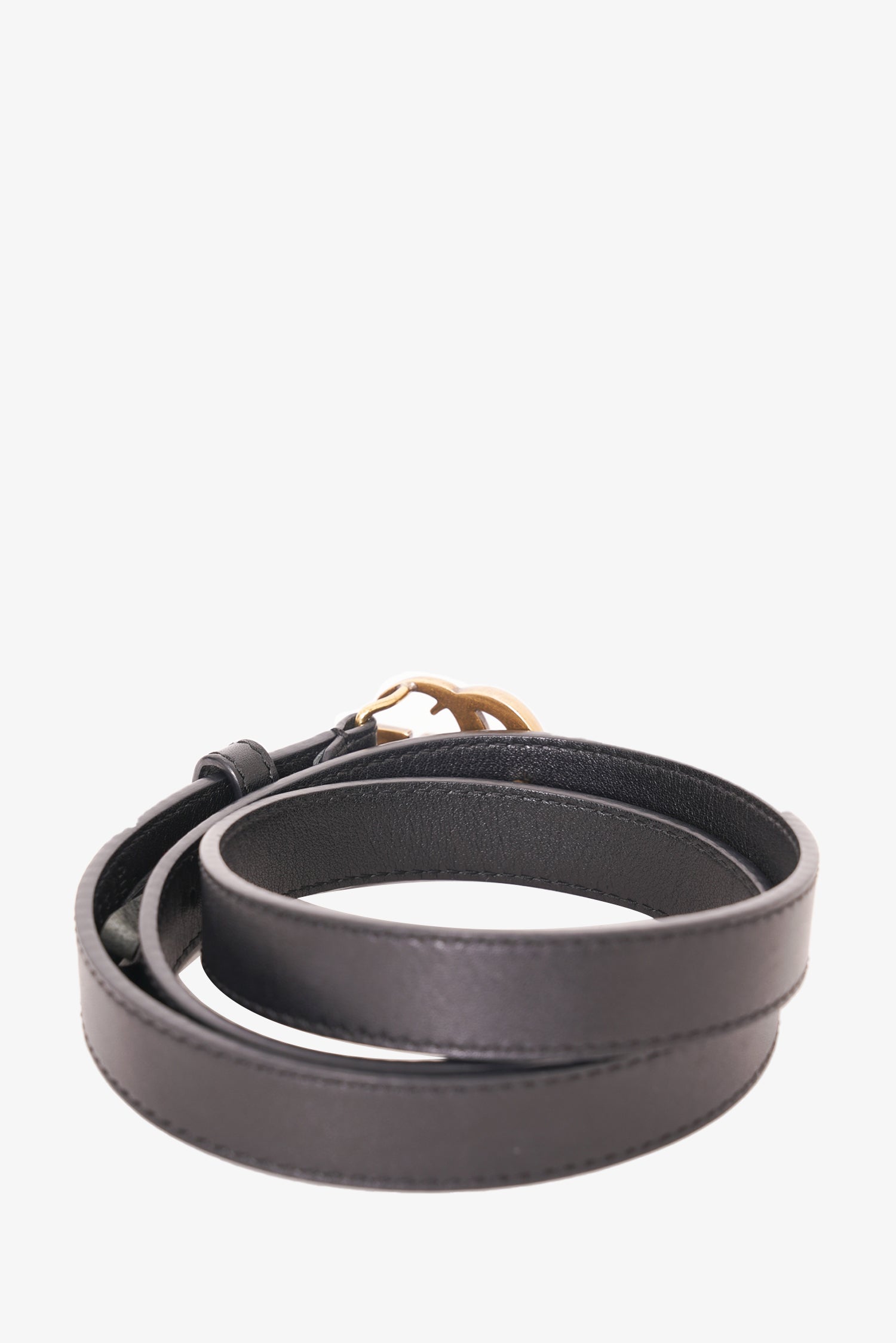Refresh availabilityGucci Black Leather Gold GG Marmont Belt Size 80. Buckle closure. Tonal stitching.