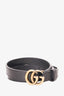 Gucci Black Leather Gold GG Marmont Belt Size 80