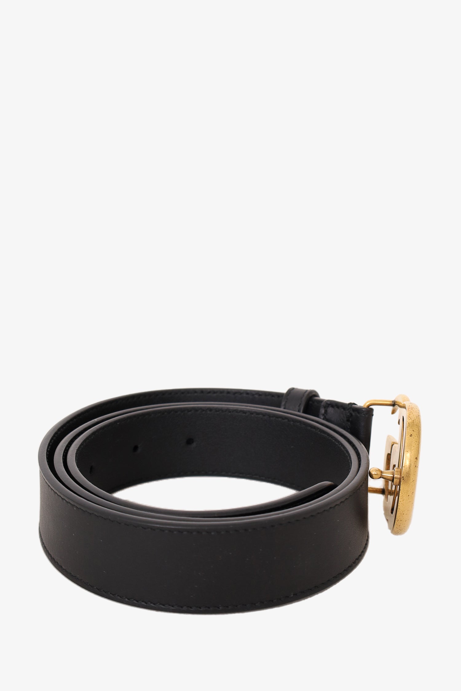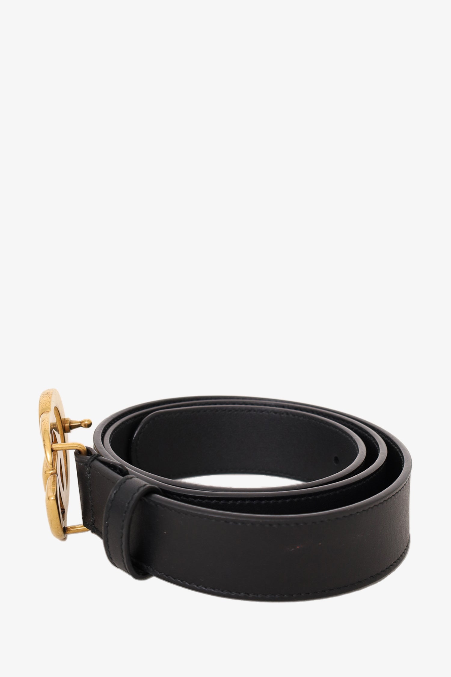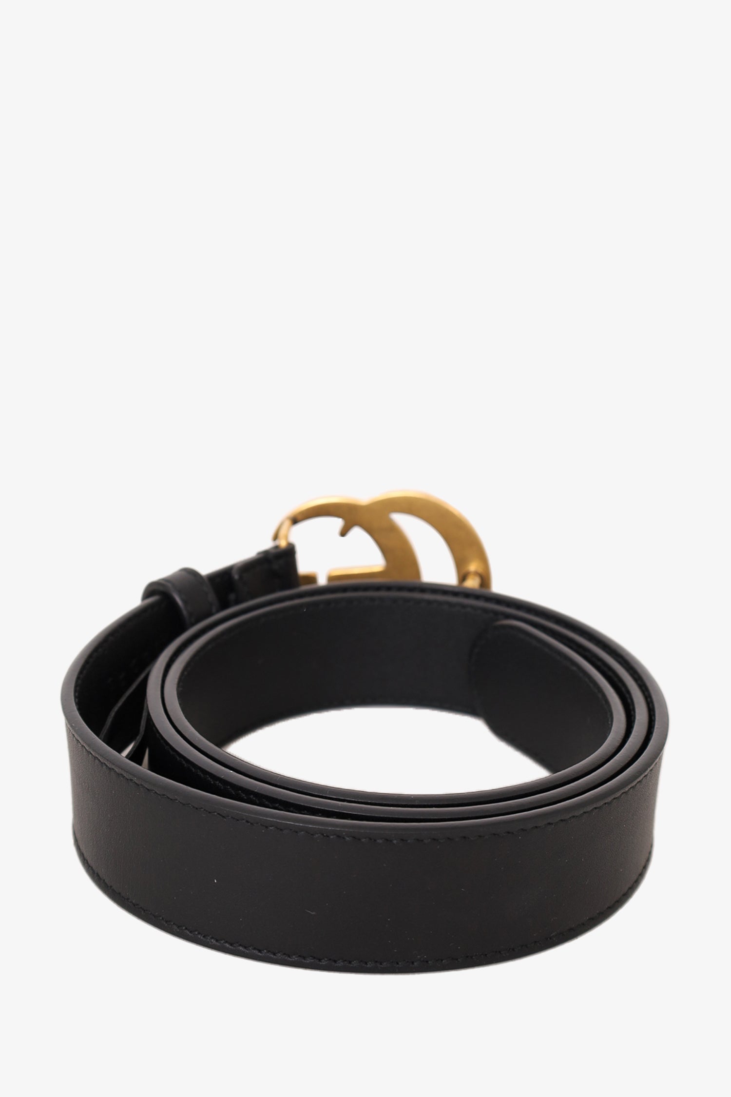 Refresh availabilityGucci Black Leather Gold GG Marmont Belt. Buckle closure. Tonal stitching.