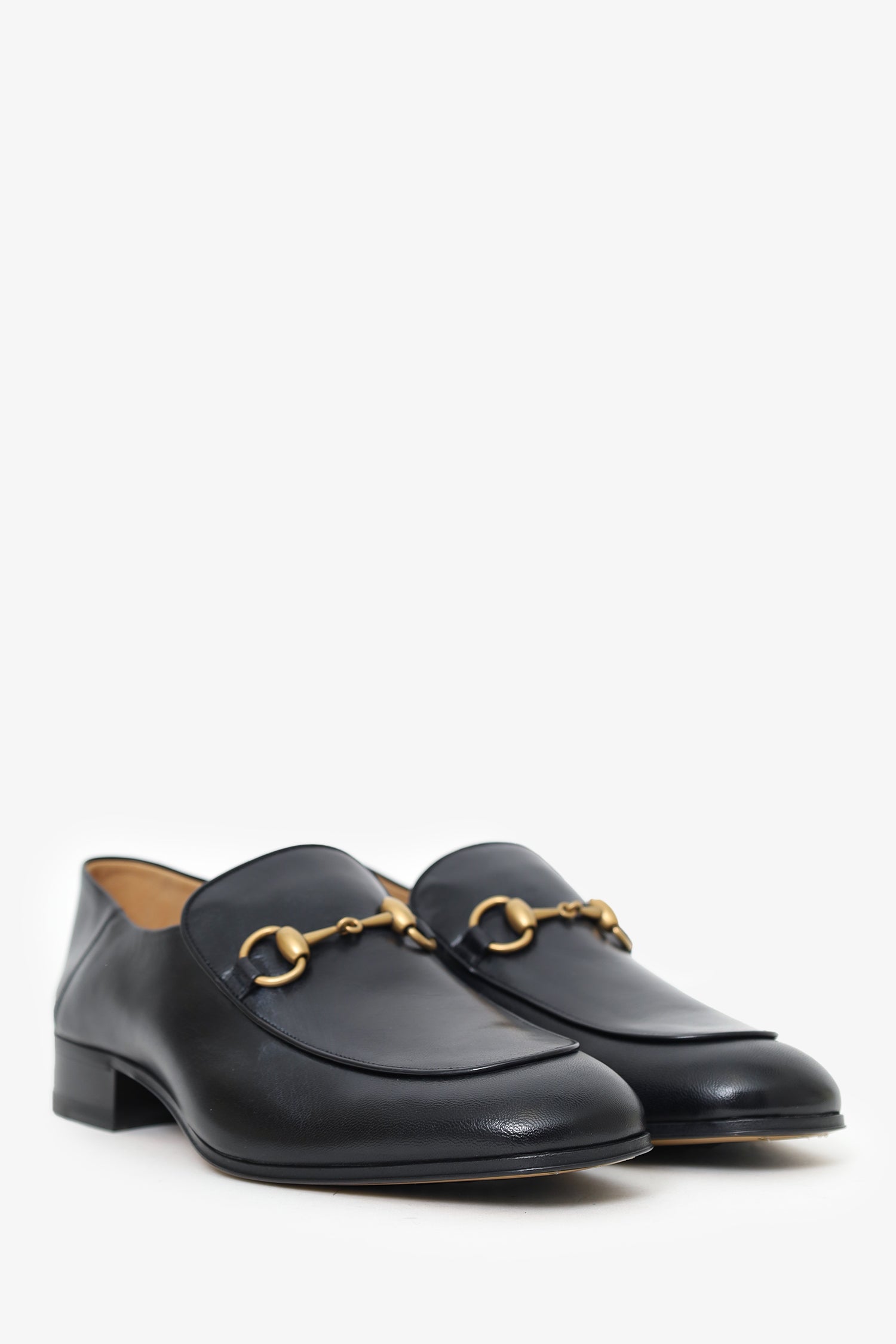 Refresh availabilityGucci Black Leather Horsebit Jordaan Loafer. Slip-on. Gold-tone hardware. Tonal stitching.
