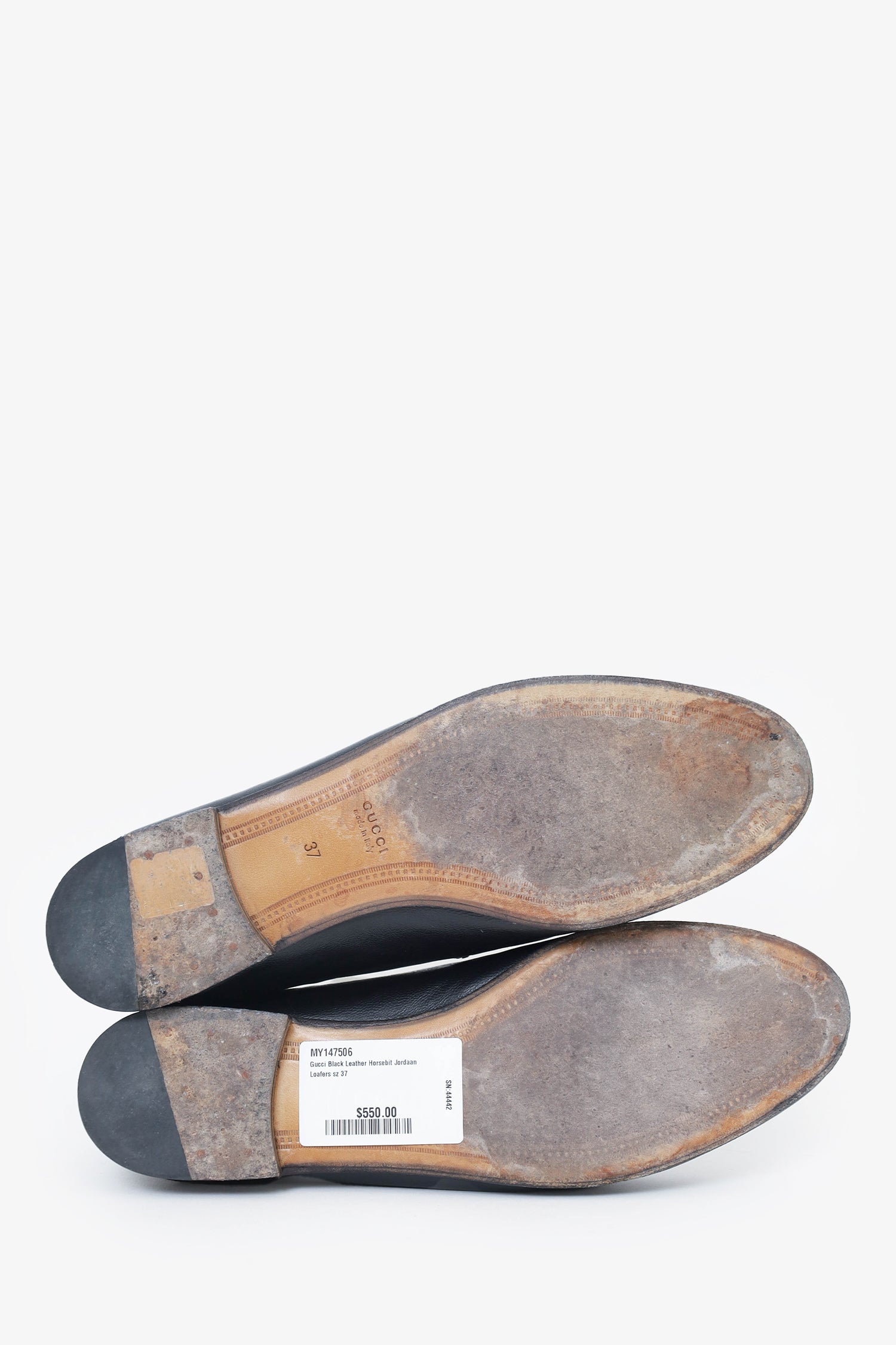 Condition: This item is in good pre-loved condition with significant signs of wear to bottom soles. Minor small scratches on the left shoe's toe cap. Natural creasing throughout leather material.