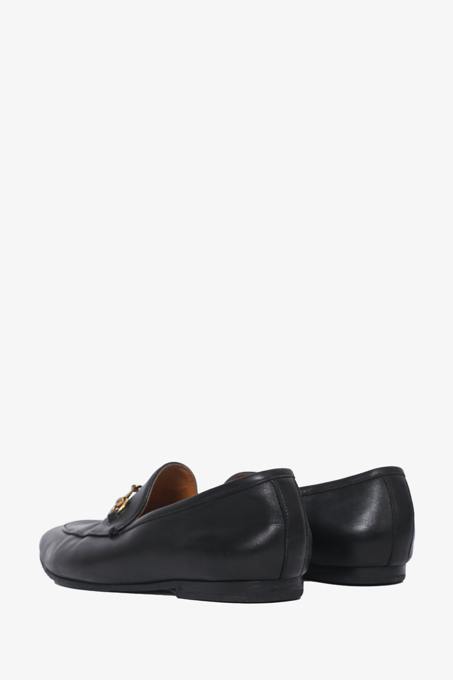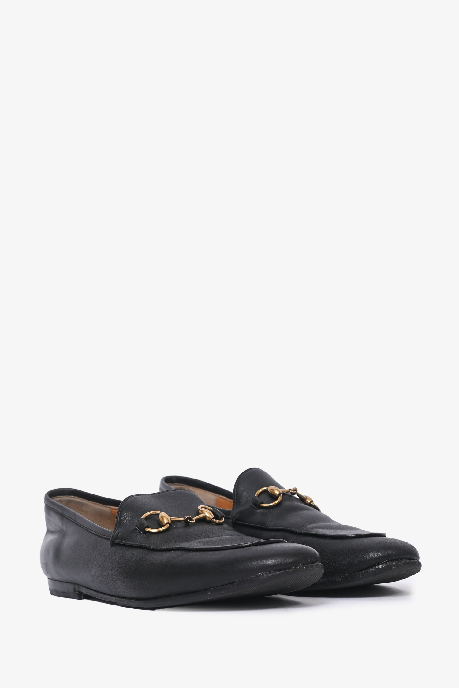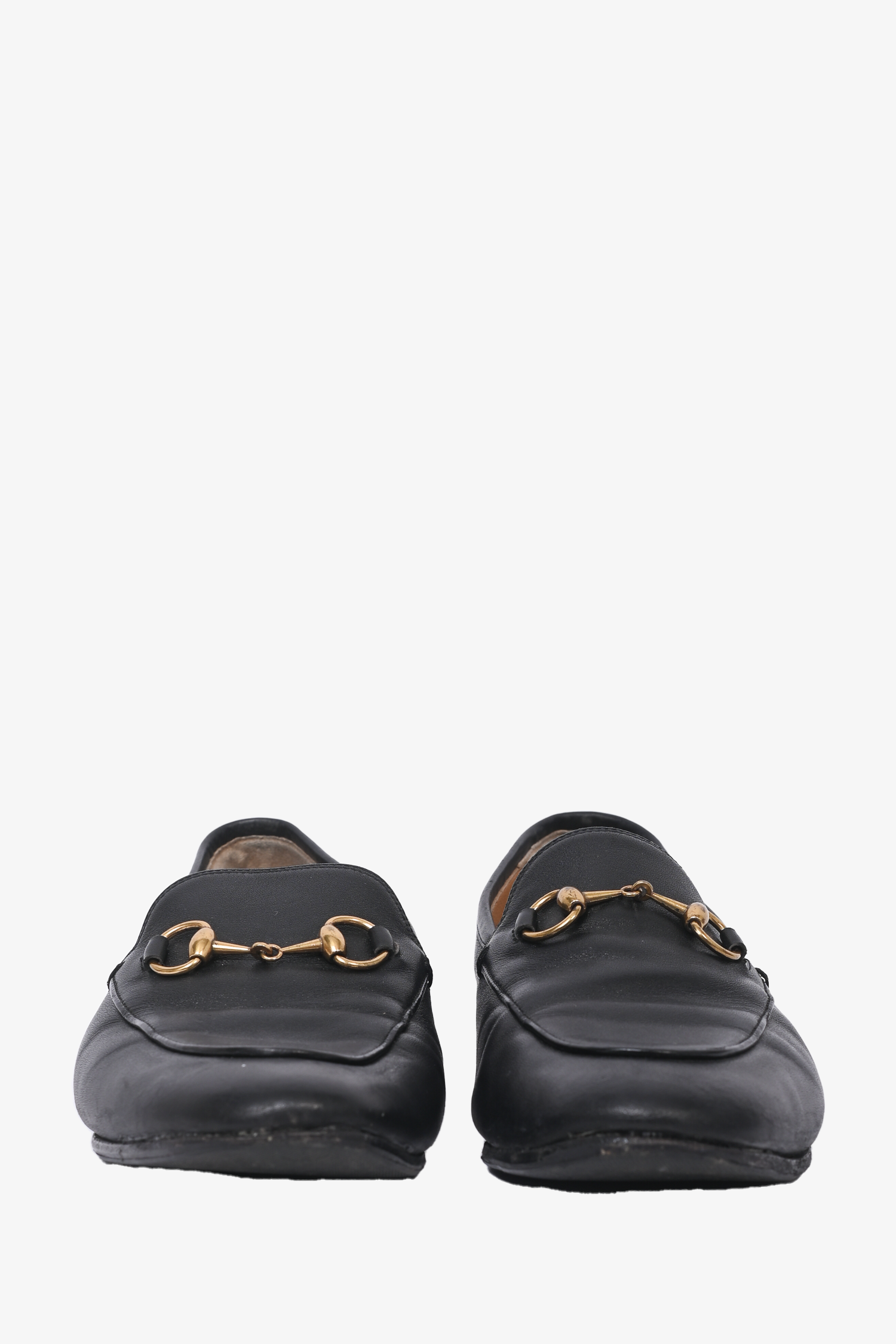 Gucci Black Leather Horsebit Jordaan Loafers Size 36