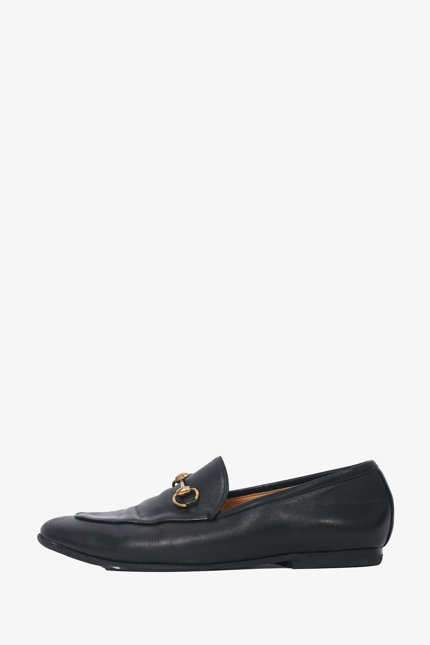 Refresh availabilityGucci Black Leather Horsebit Jordaan Loafers. Slip-on. Round toe. Tonal stitching. Topy soles.