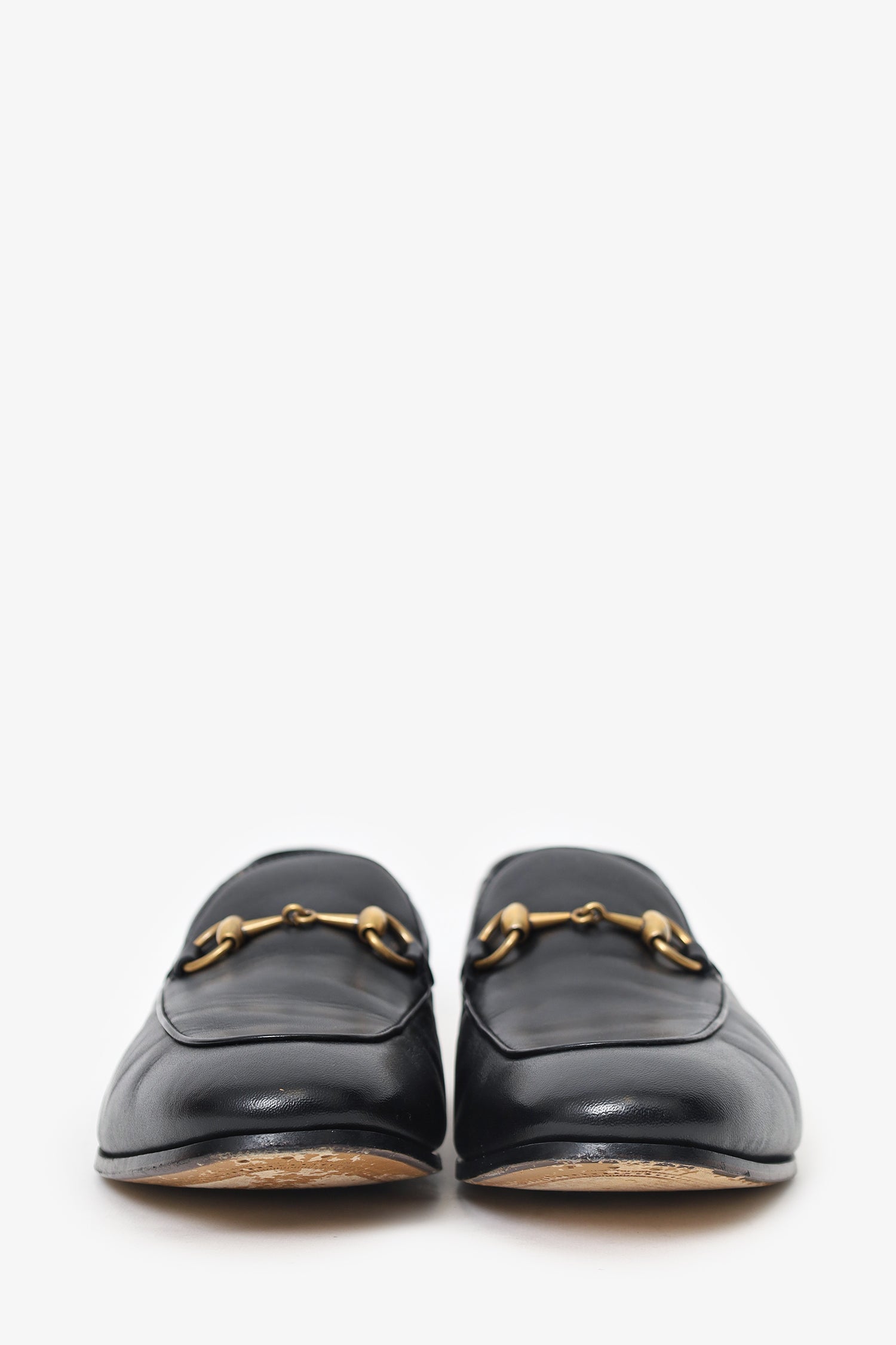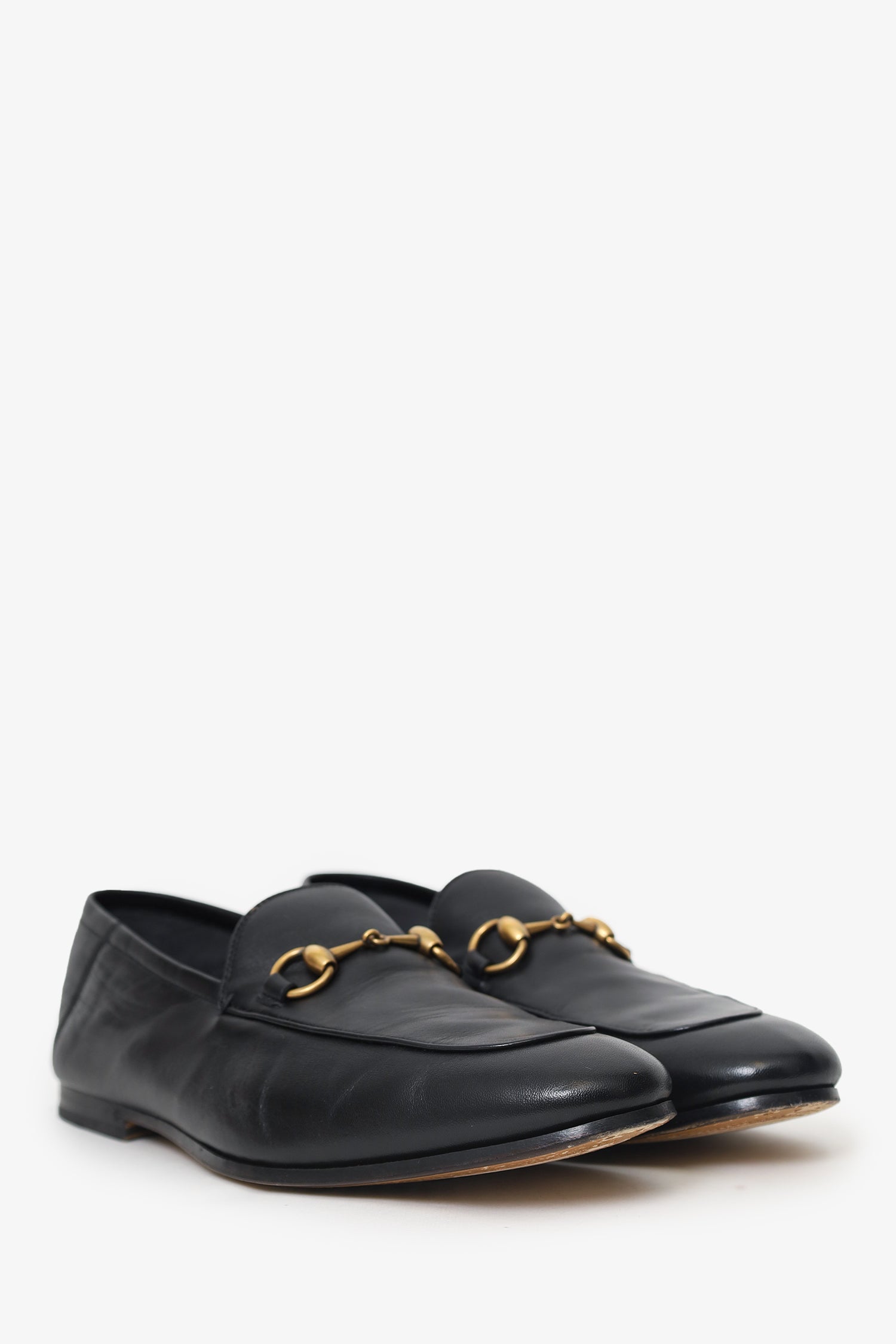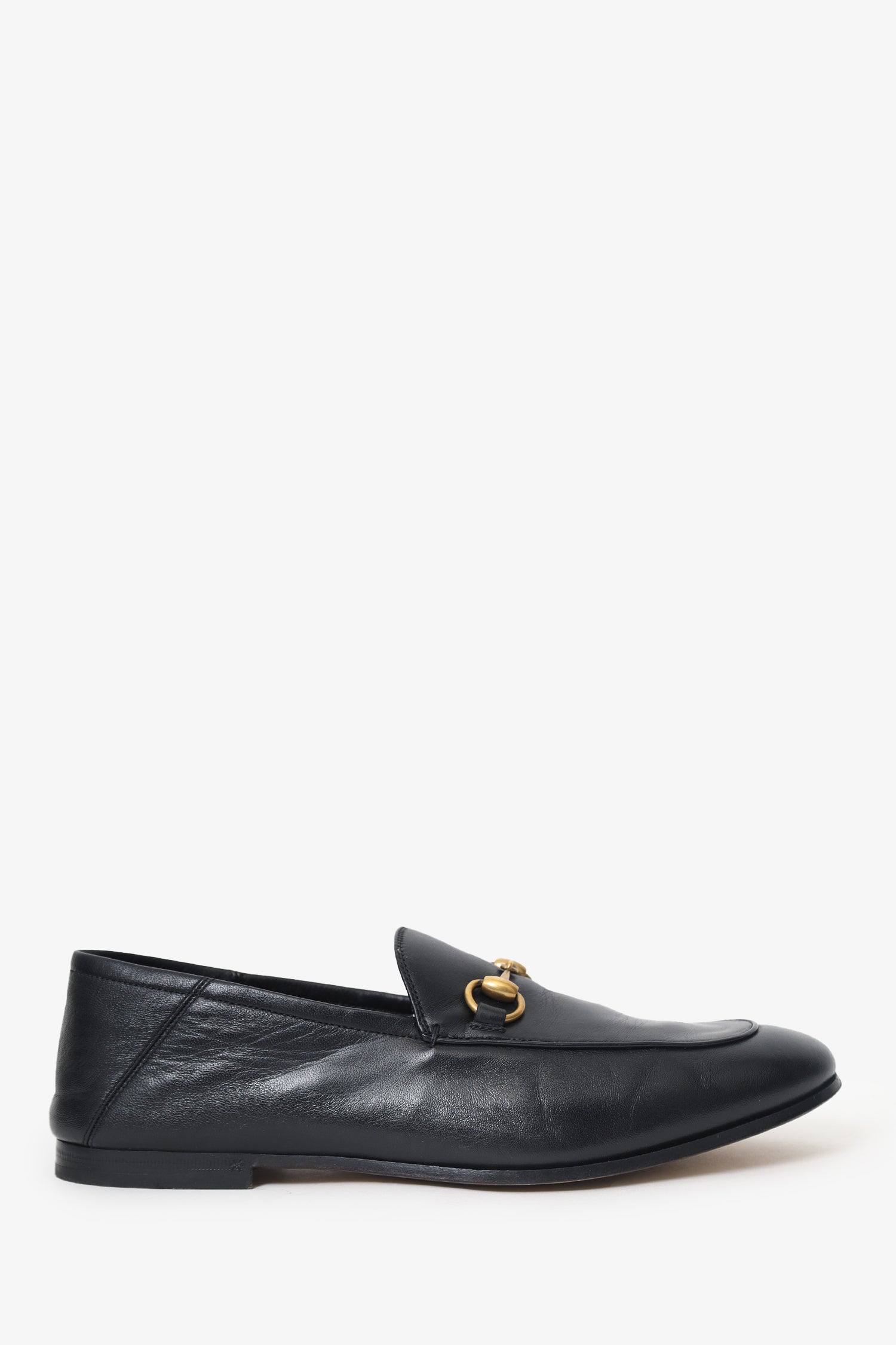 Refresh availabilityGucci Black Leather Horsebit Loafers. Slip-on. Round toe. Lined interior. Gold-tone hardware. Tonal stitching.