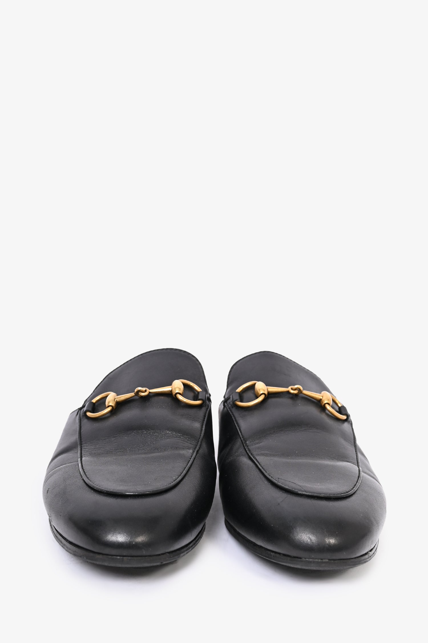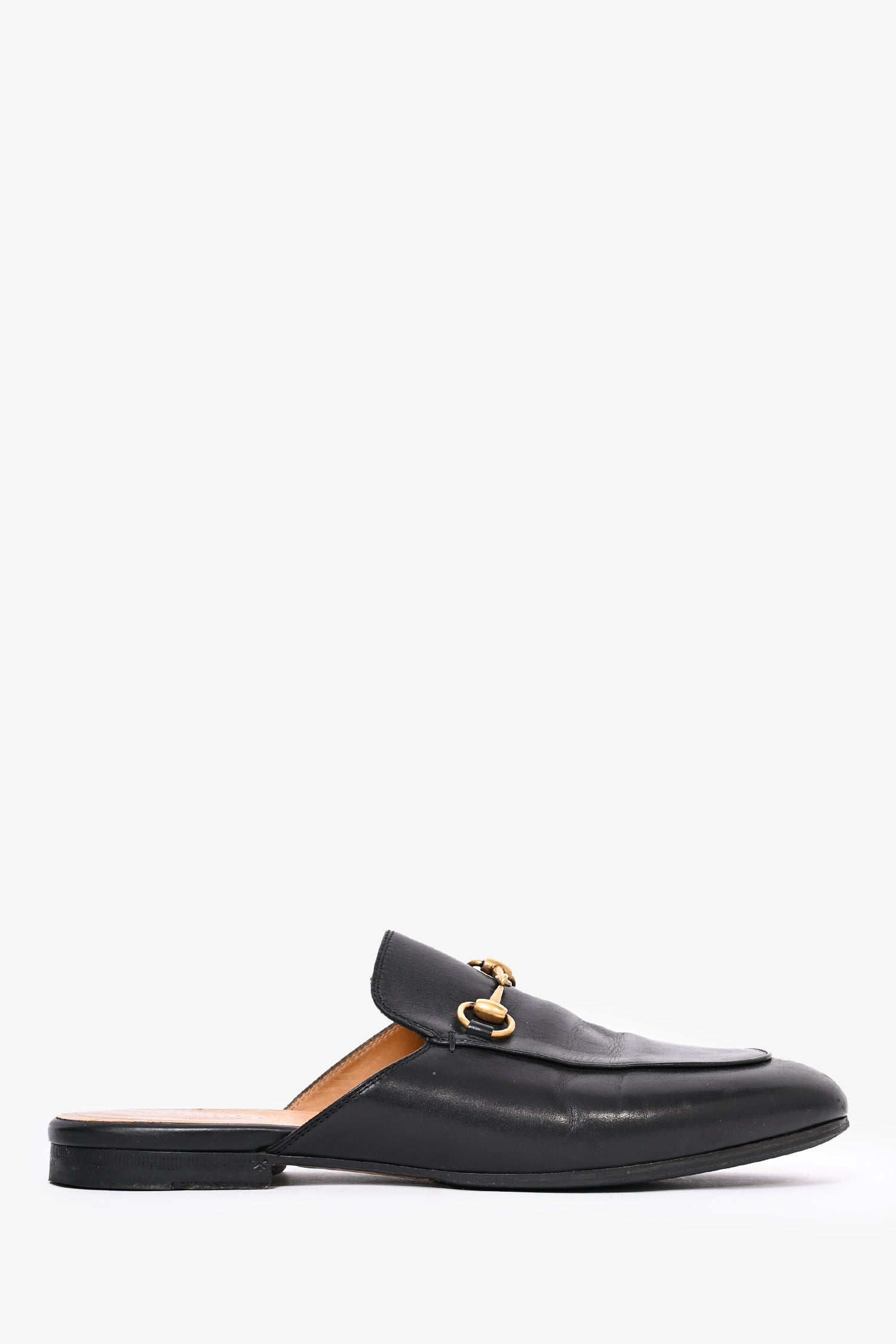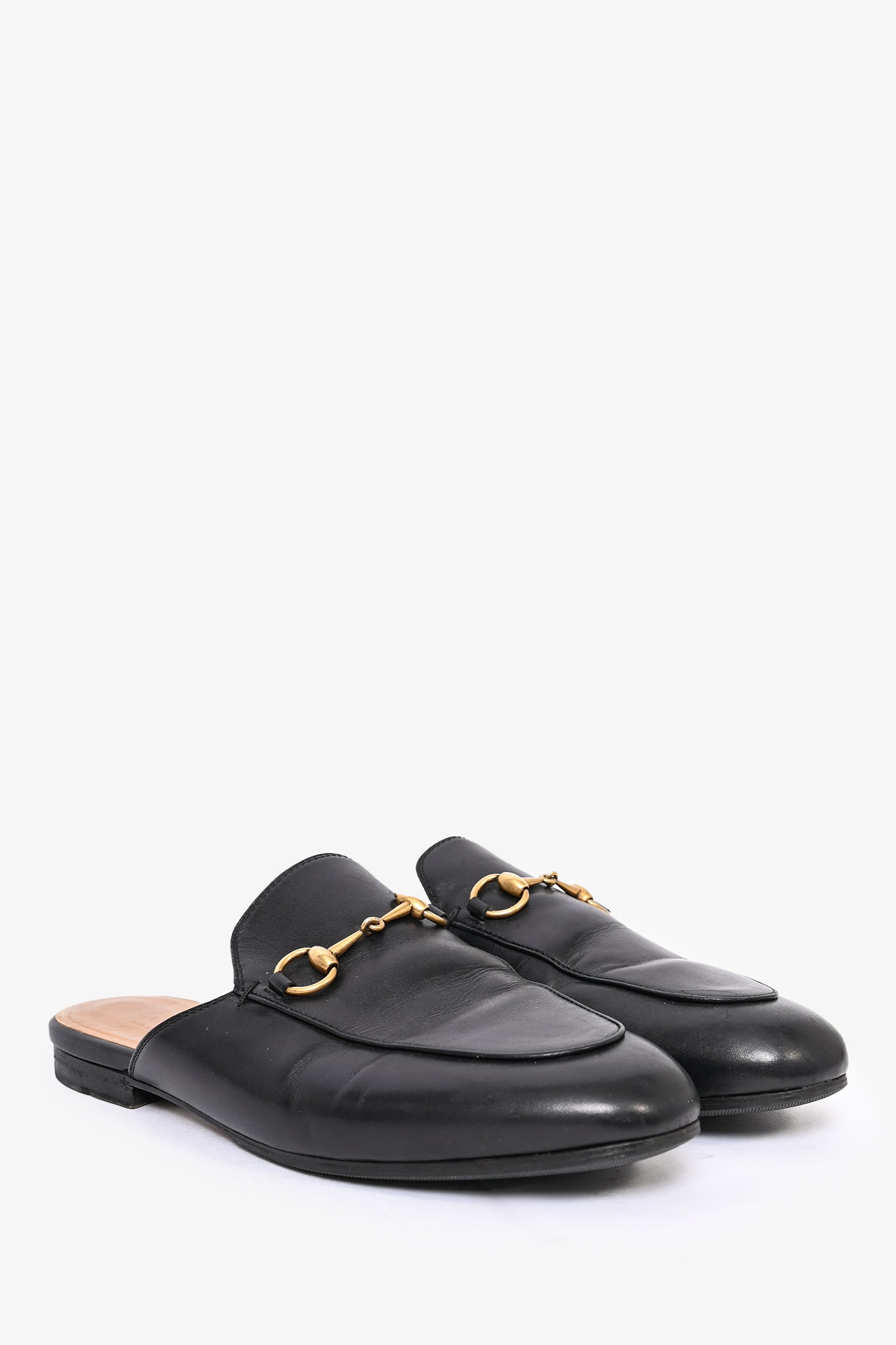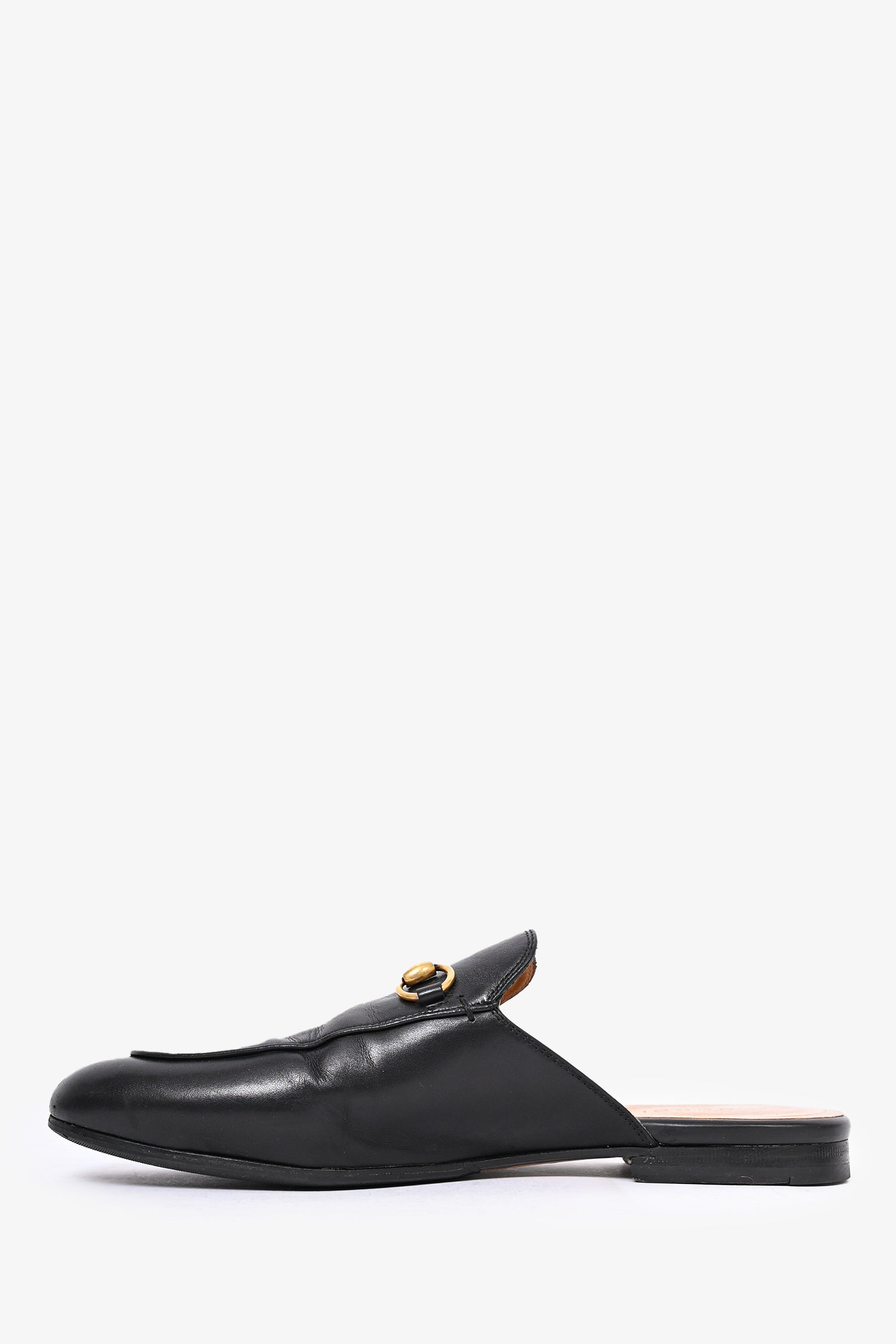 Gucci Black Leather Horsebit Princetown Slides Size 38
