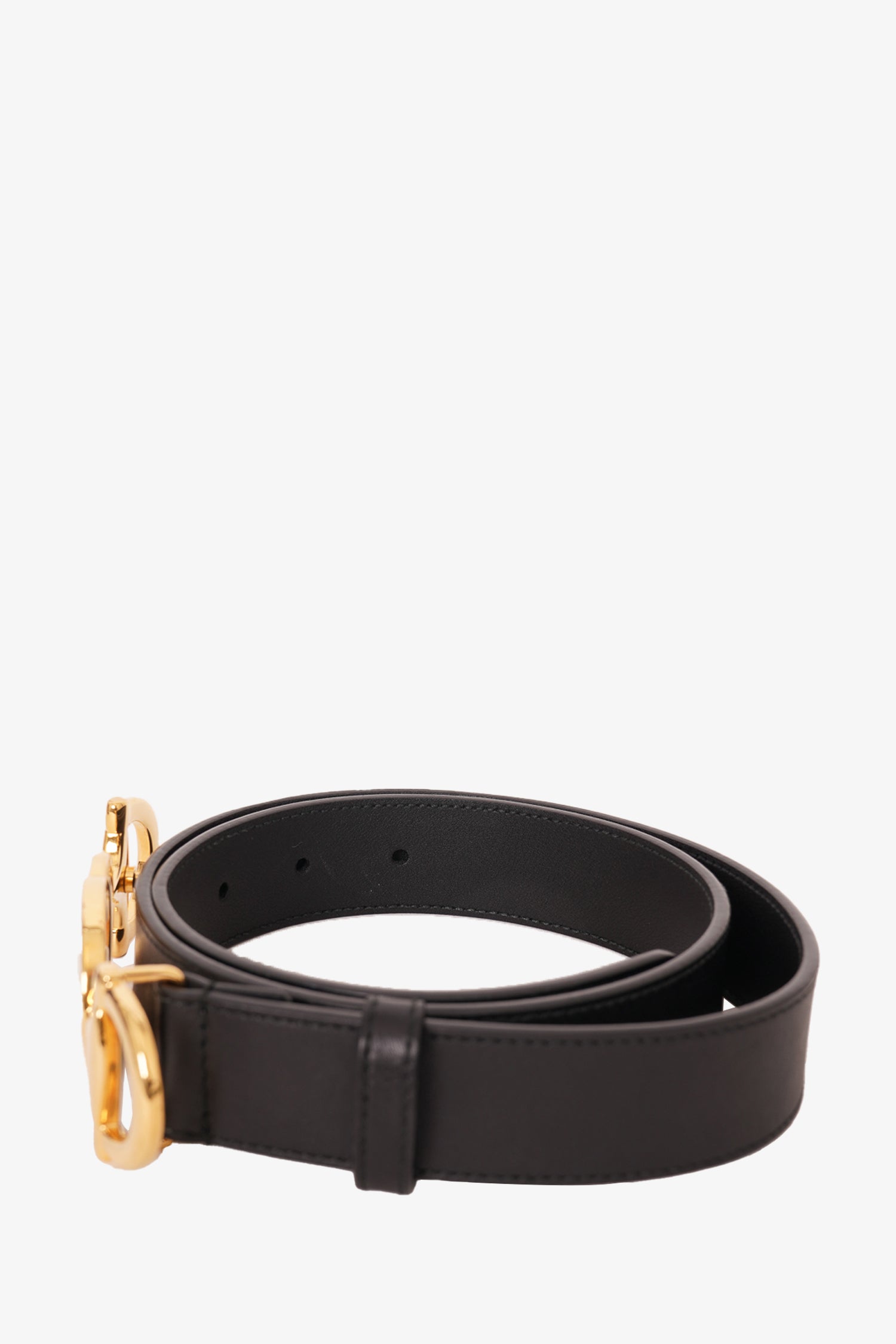 Refresh availabilityGucci Black Leather Interlocking G Horse Bit Belt. Gold-toned hardware. Tonal stitching.